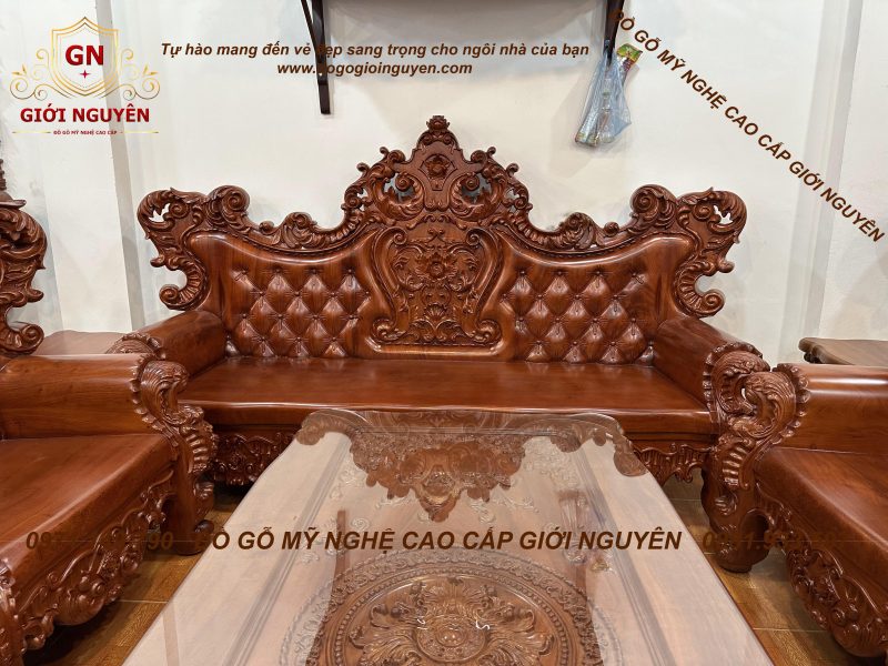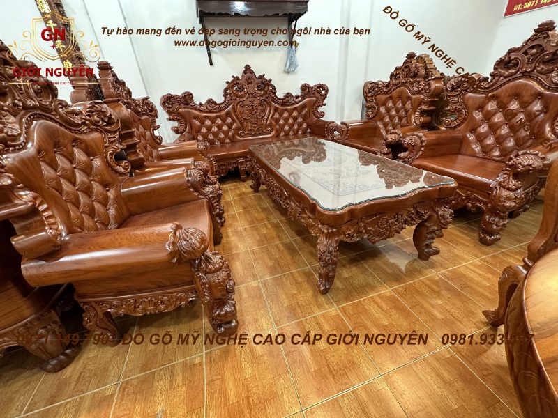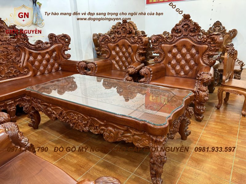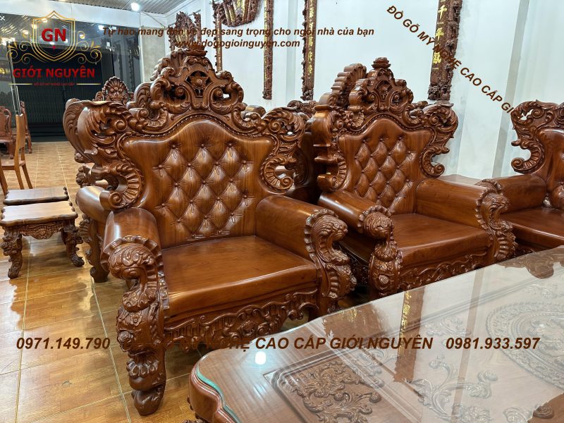 Bộ bàn ghế Hoàng gia tân cổ điển – quả trám – gỗ hương đá 2023