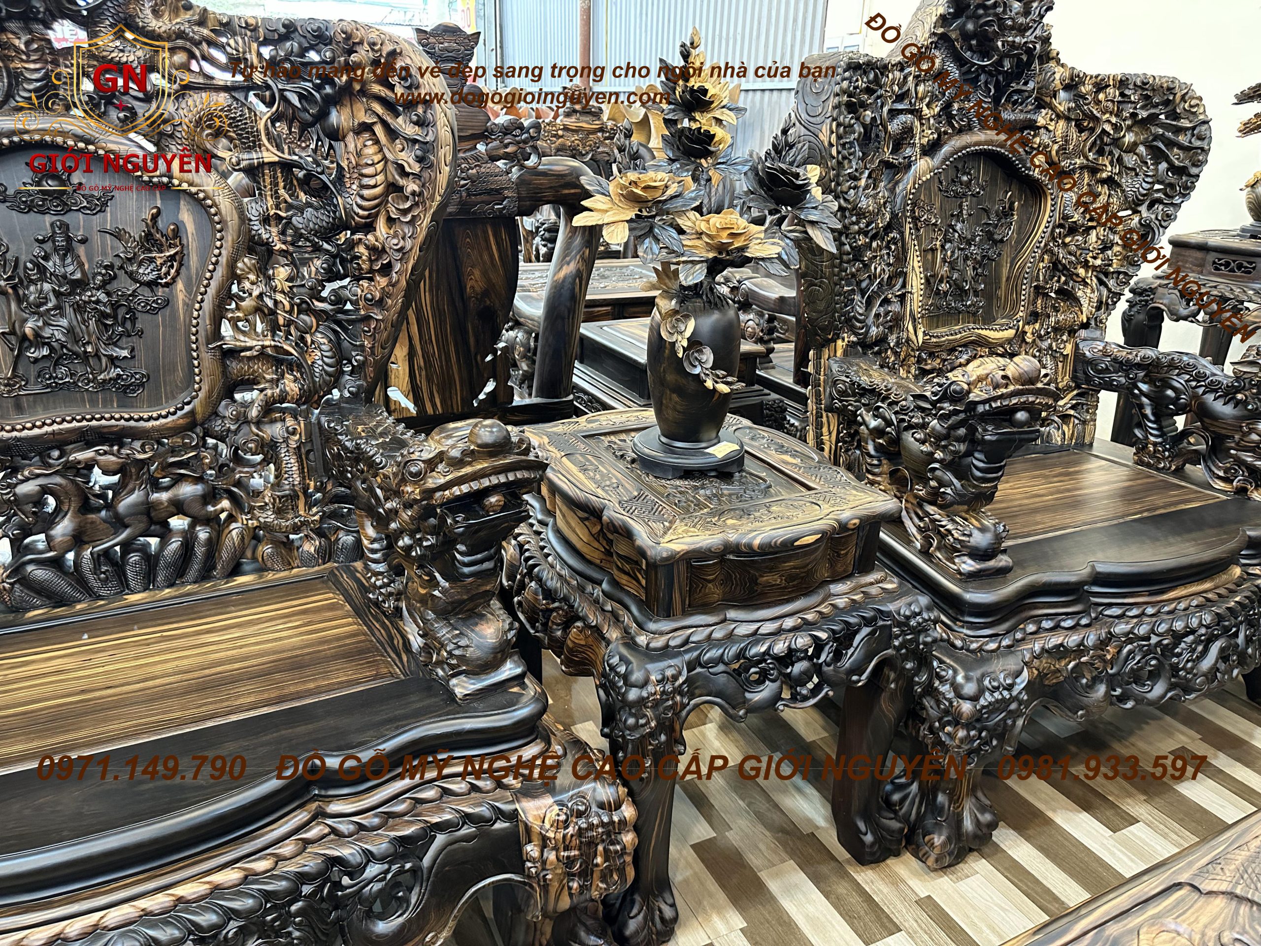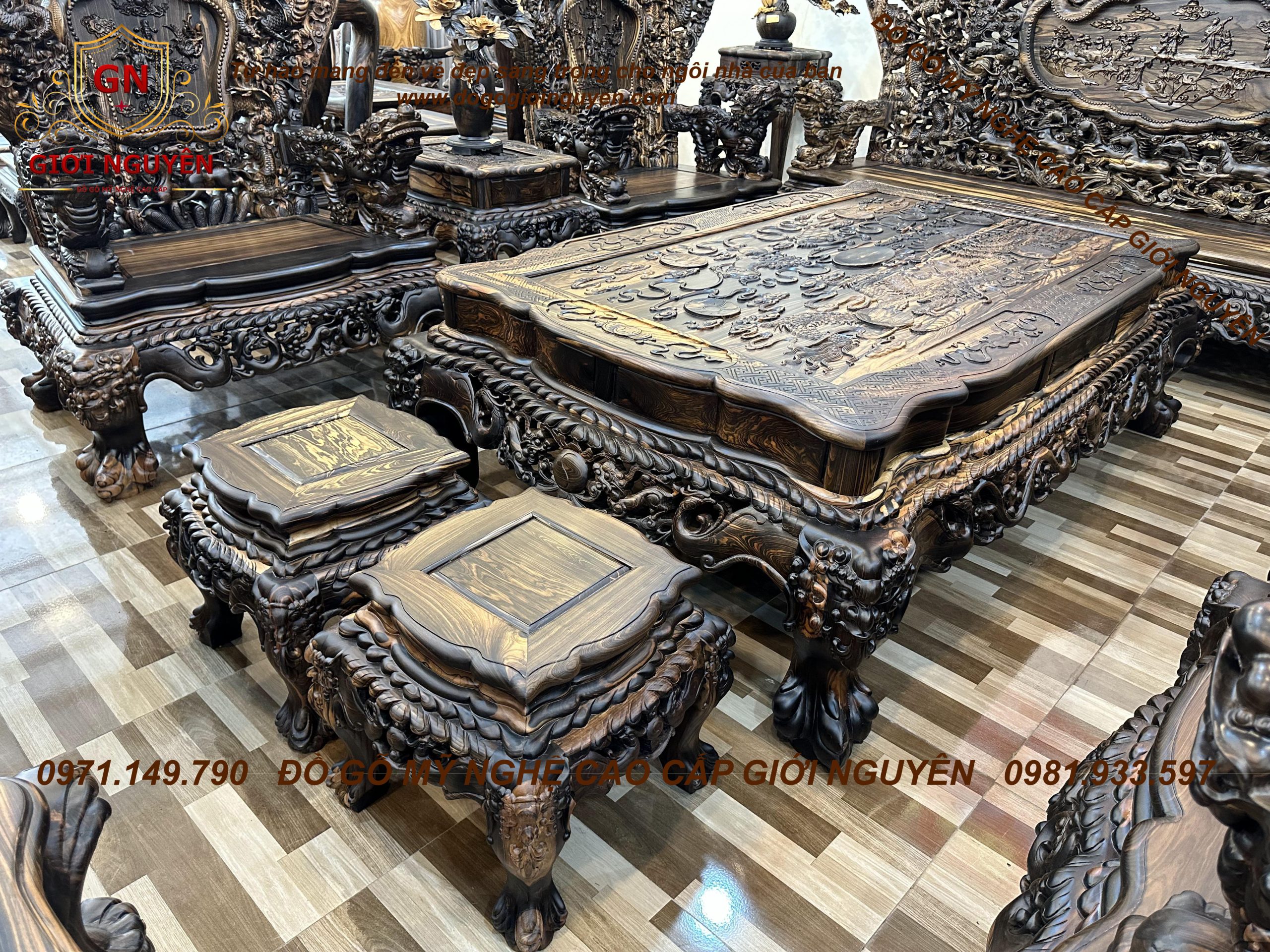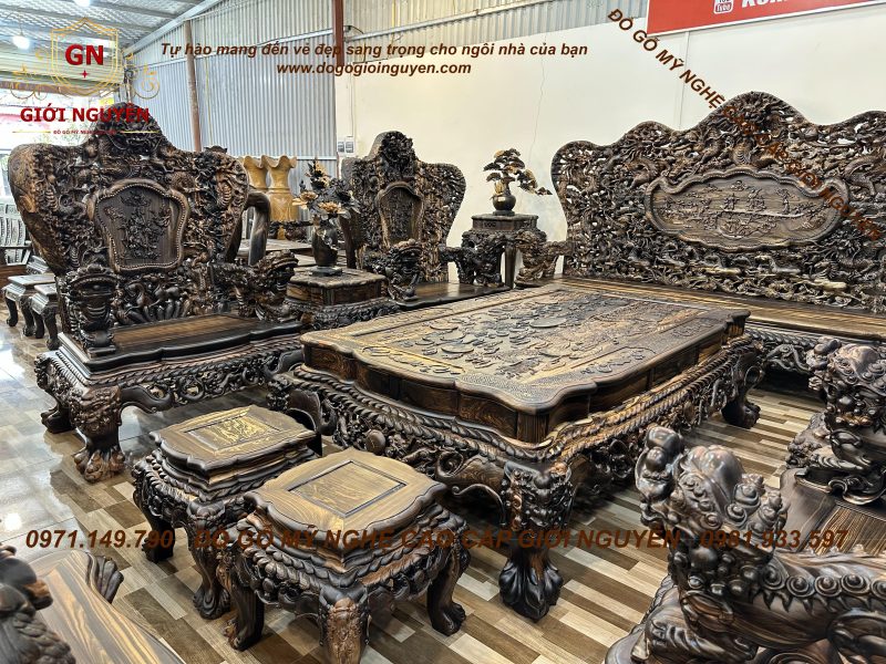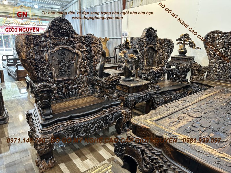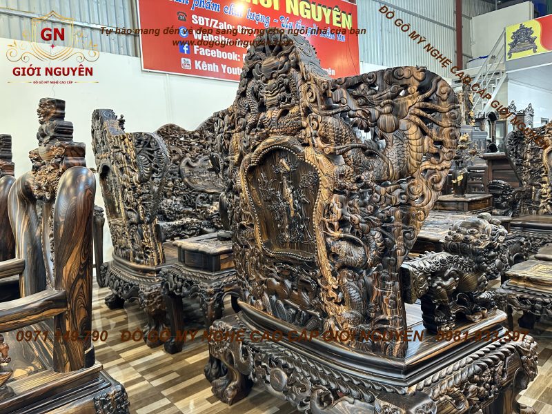 Bộ bàn ghế cửu long bát mã gỗ mun hoa KHỦNG NHẤT VIỆT NAM