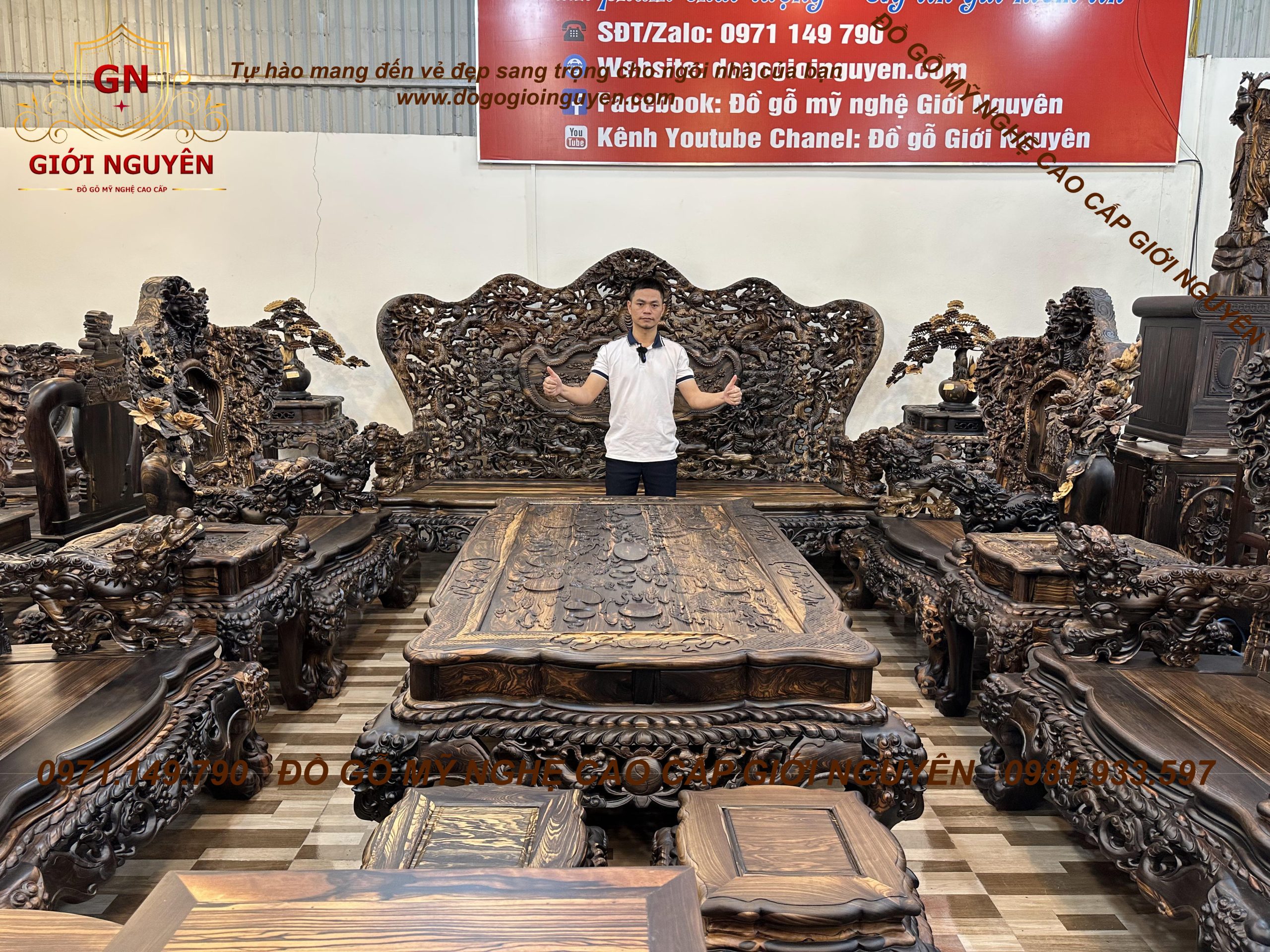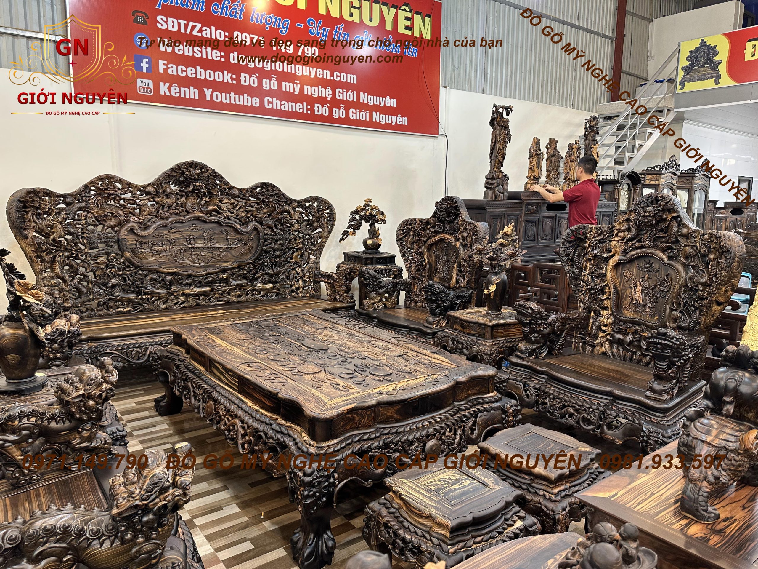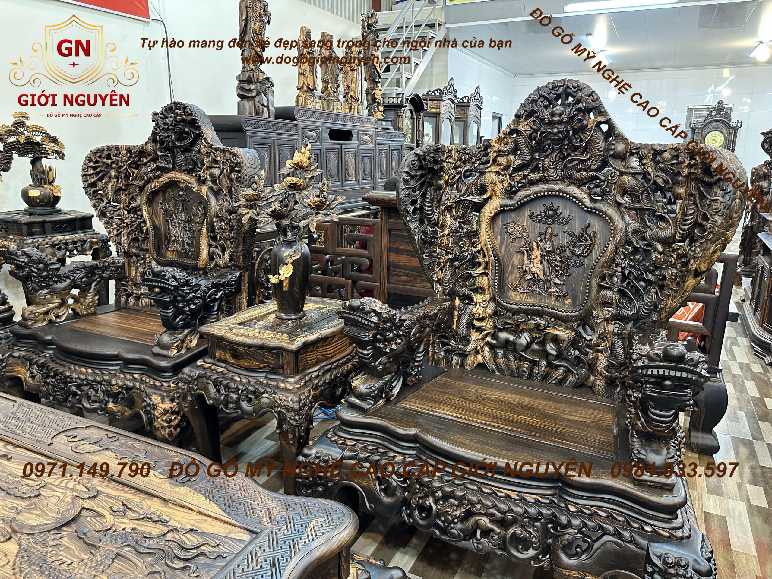 Bộ bàn ghế cửu long bát mã gỗ mun hoa KHỦNG NHẤT VIỆT NAM