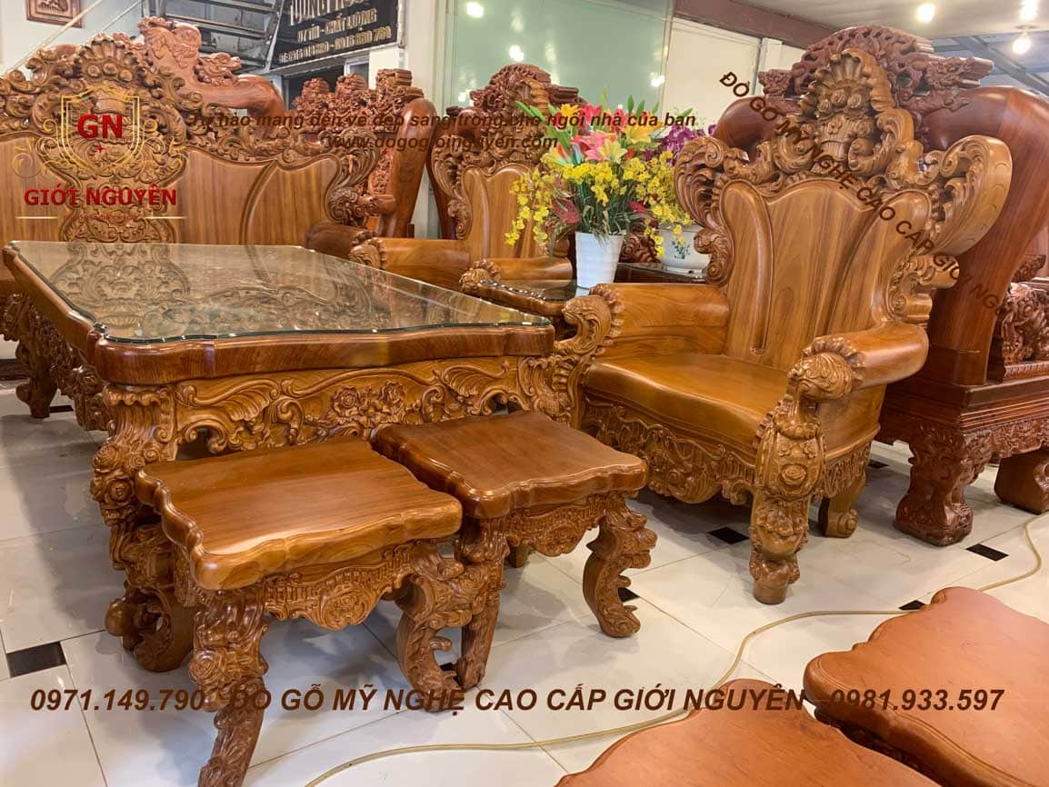 Bộ bàn ghế Hoàng gia Tân cổ điển – gỗ Gõ đỏ – 10 món