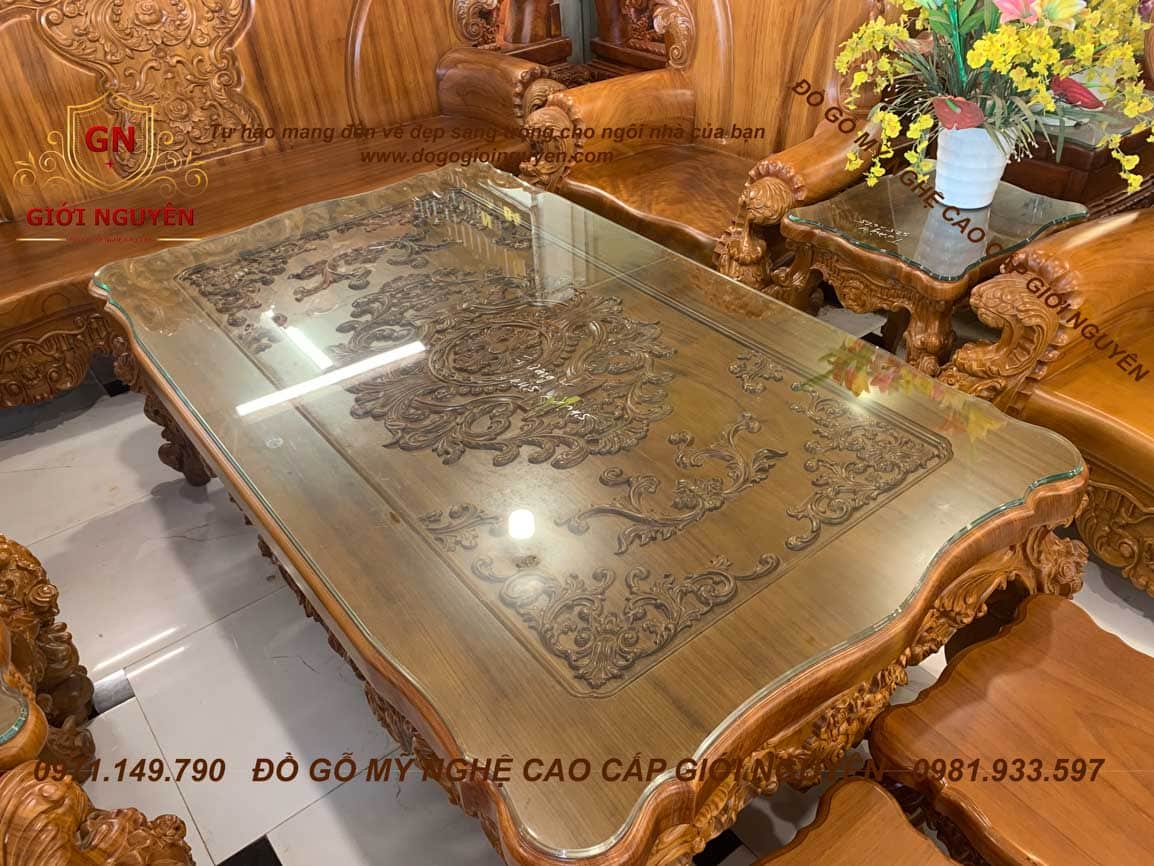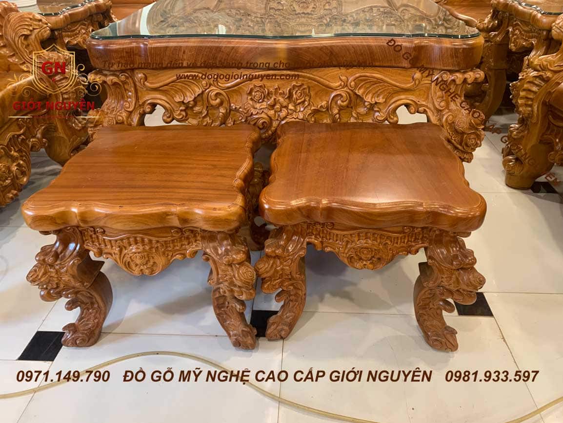 Bộ bàn ghế Hoàng gia Tân cổ điển gỗ Gõ đỏ 10 món