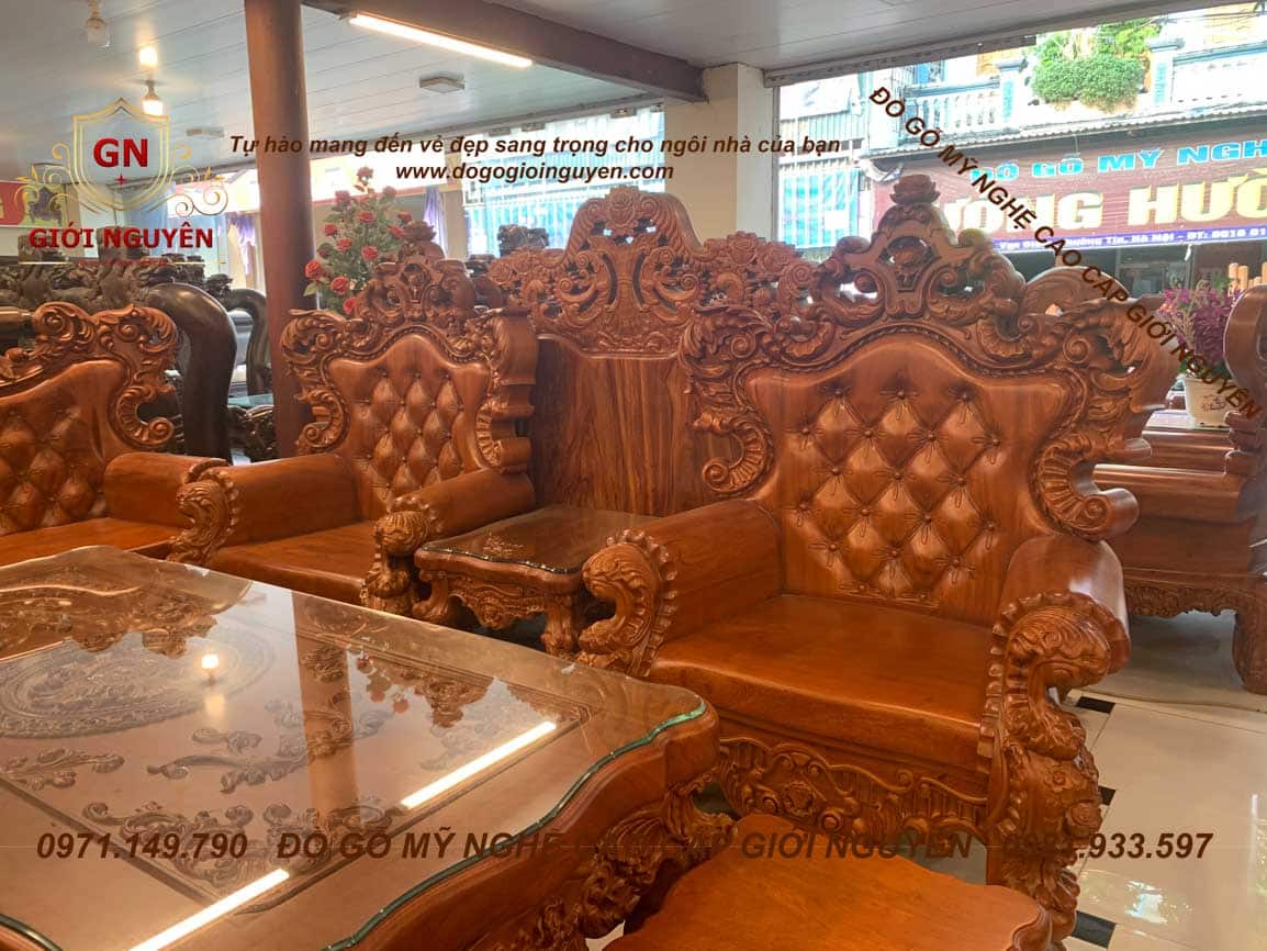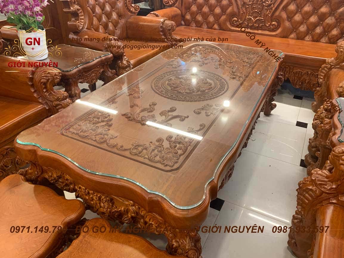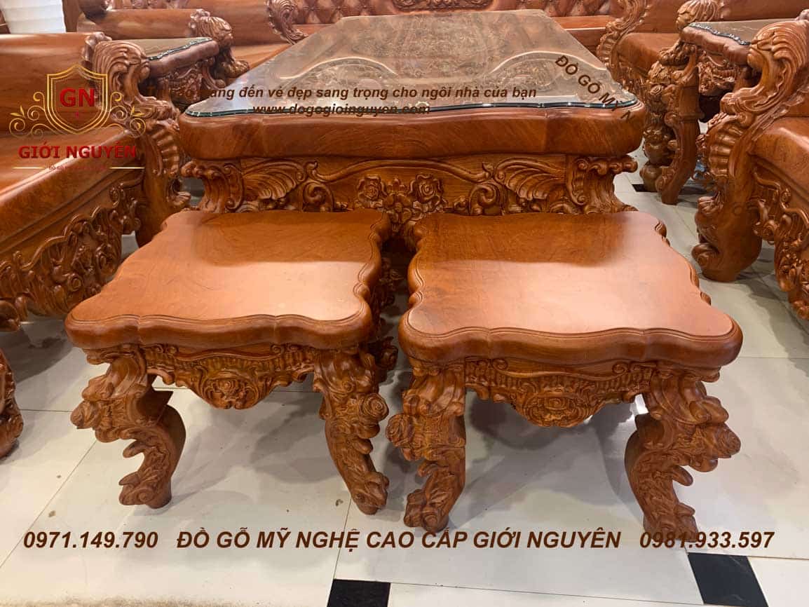 Bộ bàn ghế Hoàng gia tân cổ điển – gỗ Hương đá – 10 món