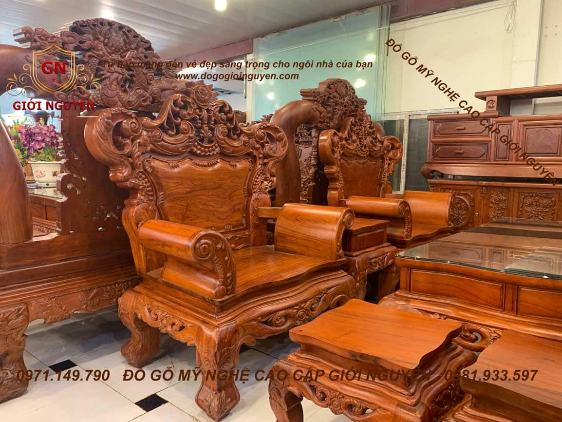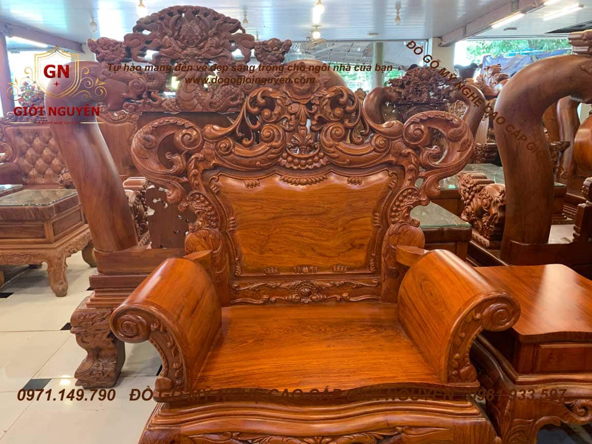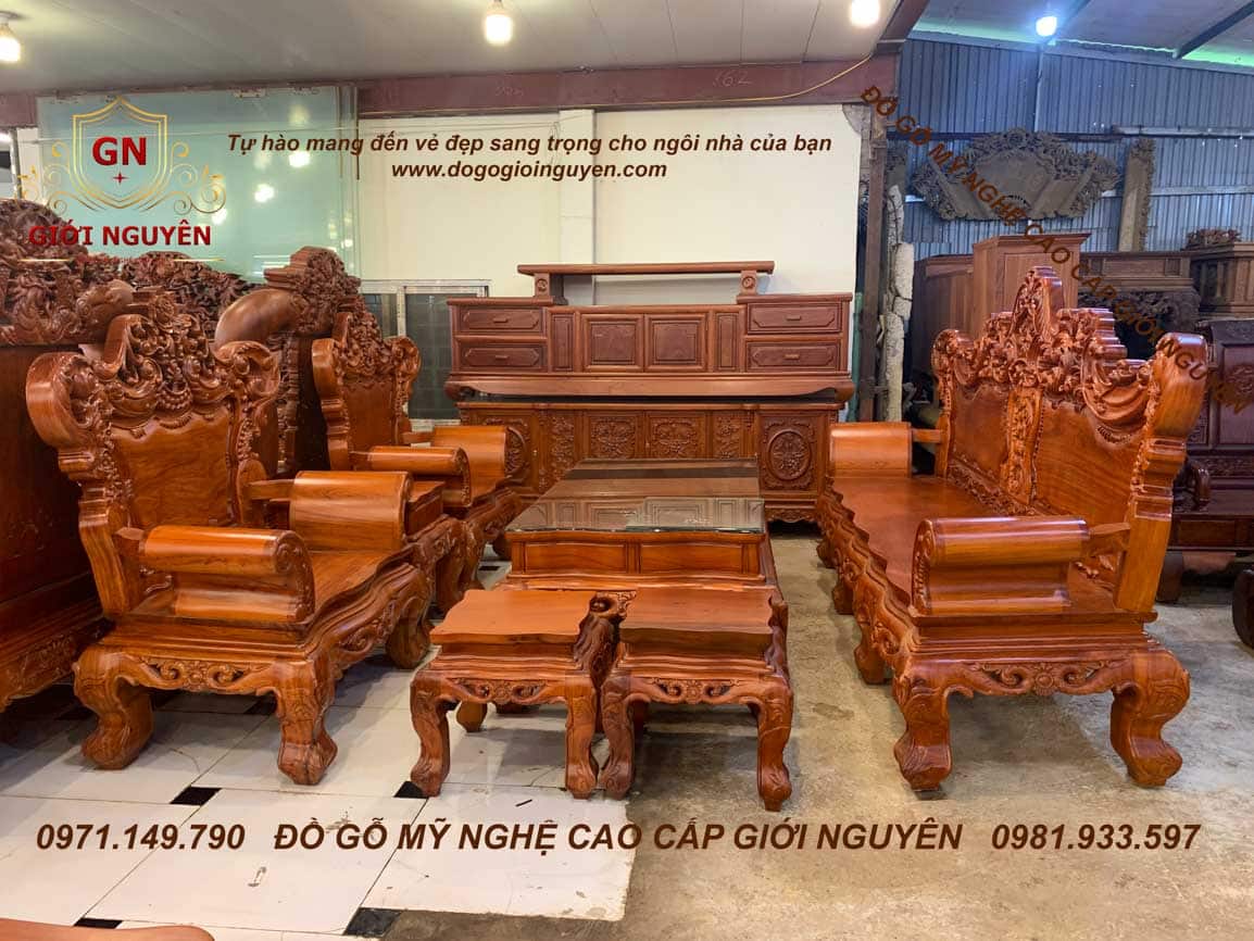 Bộ bàn ghế Hoàng gia Tân cổ điển – gỗ Hương đá – 6 món