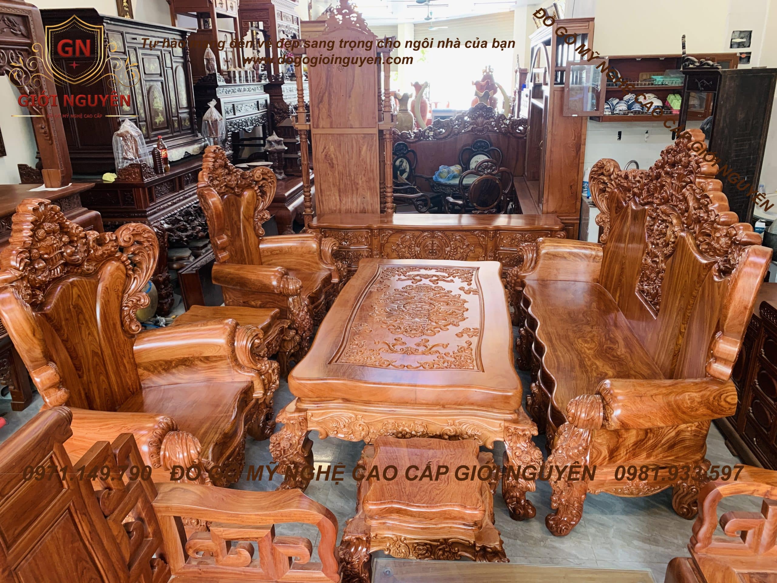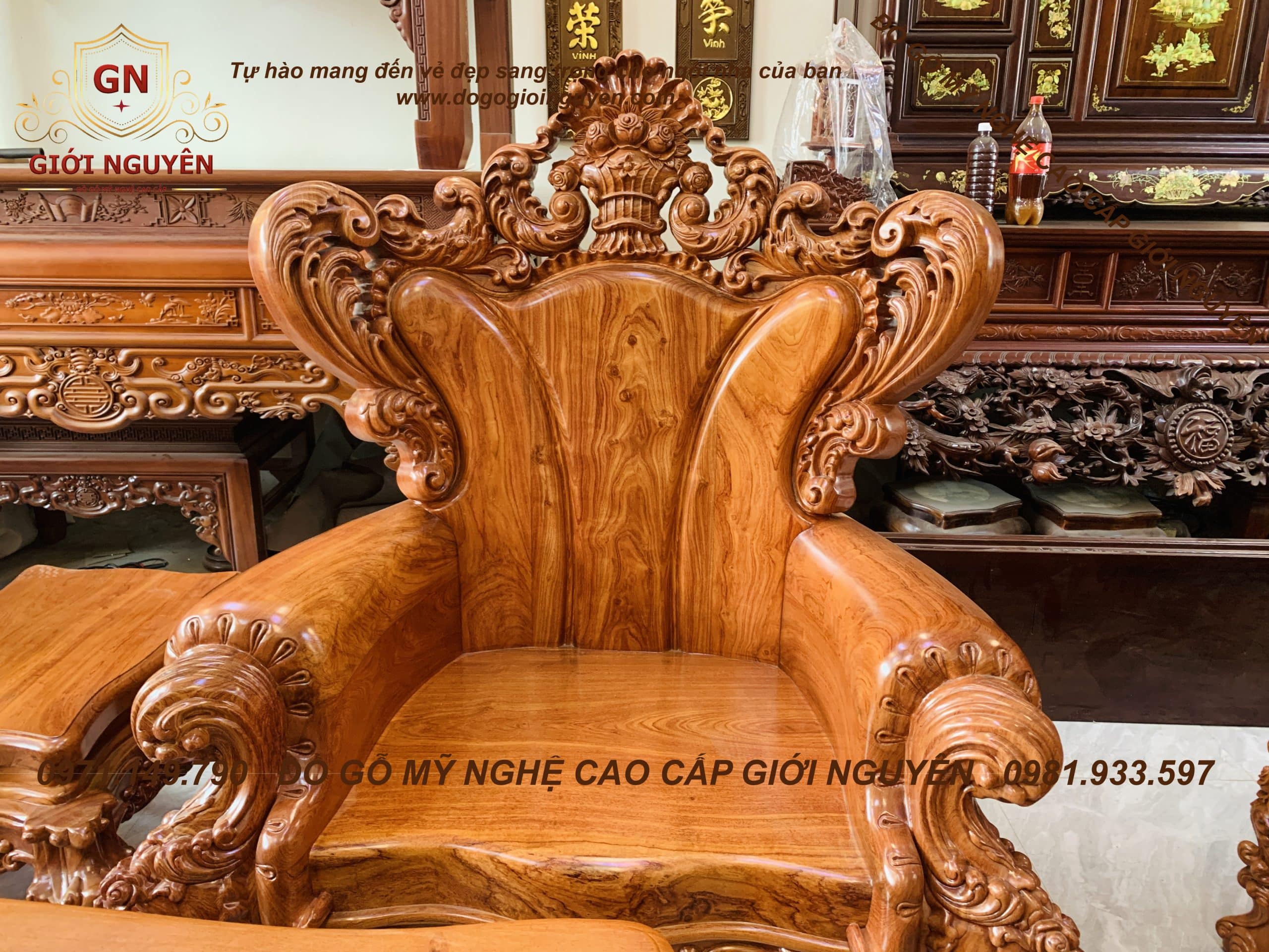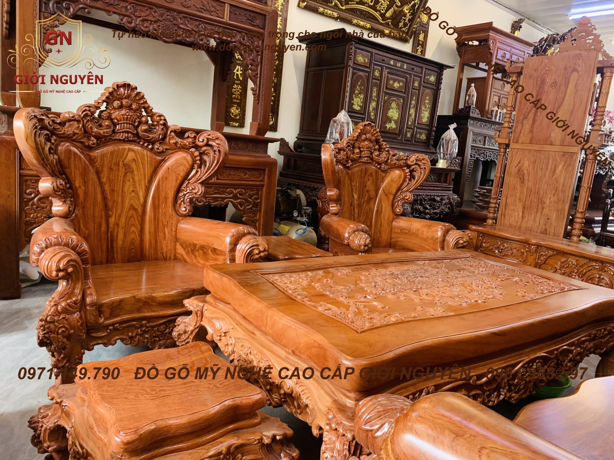Bộ bàn ghế Hoàng gia tân cổ điển nguyên khối gỗ Hương đá