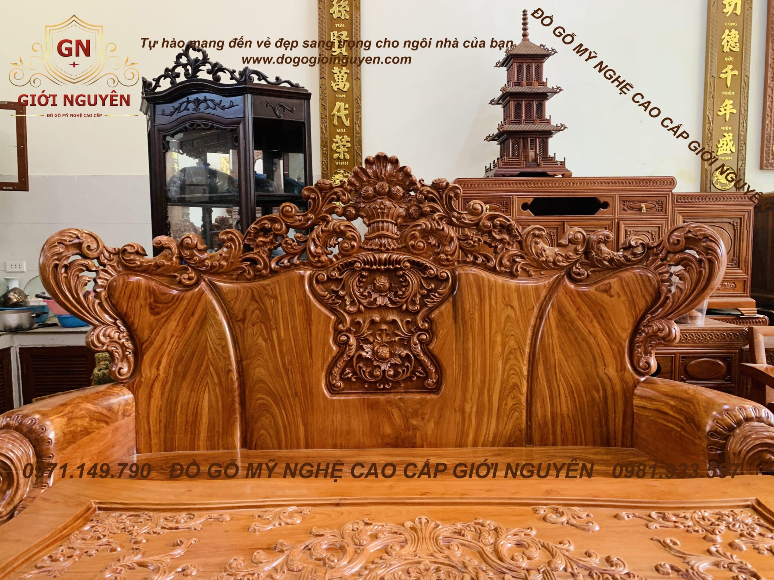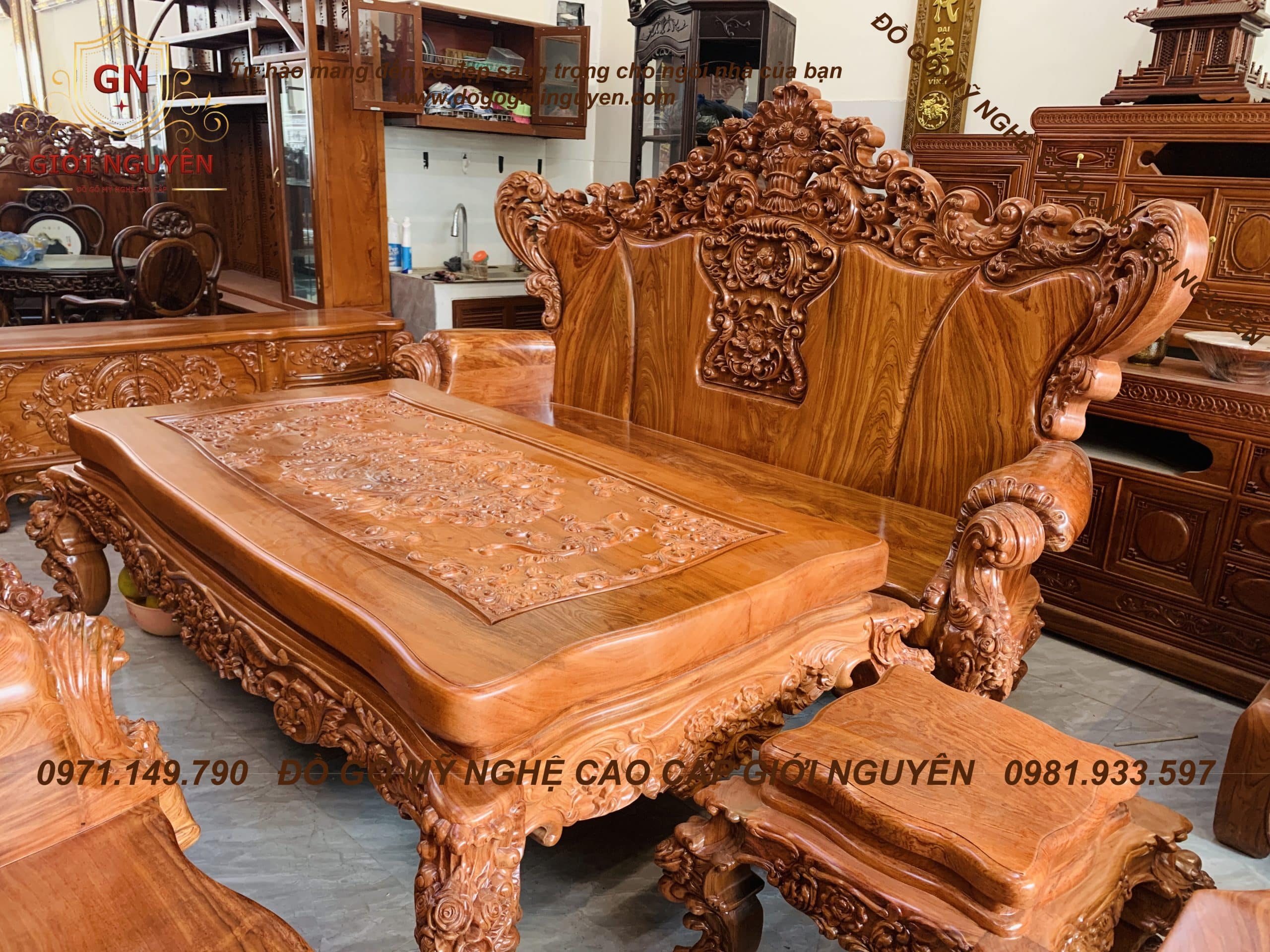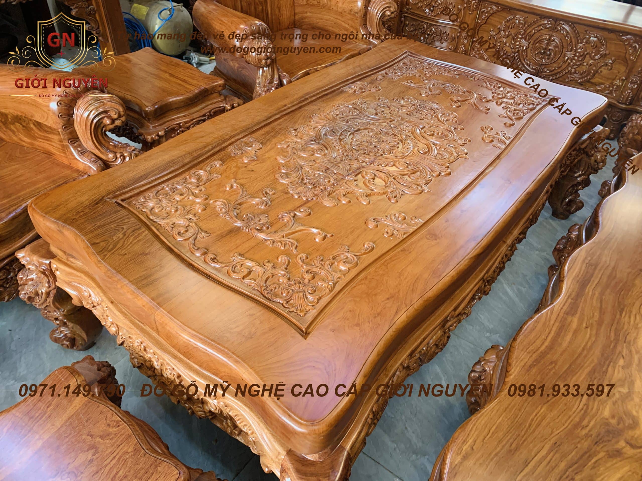 Bộ bàn ghế Hoàng gia tân cổ điển nguyên khối gỗ Hương đá