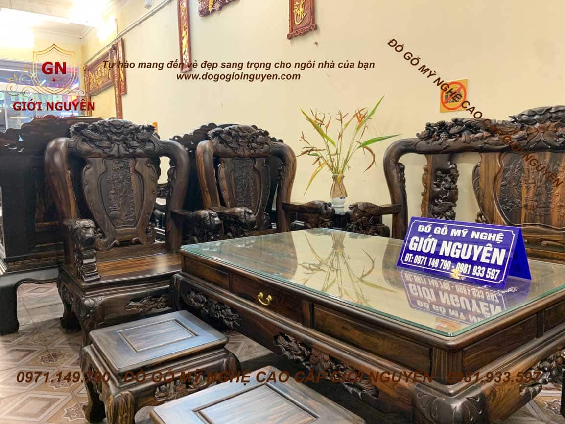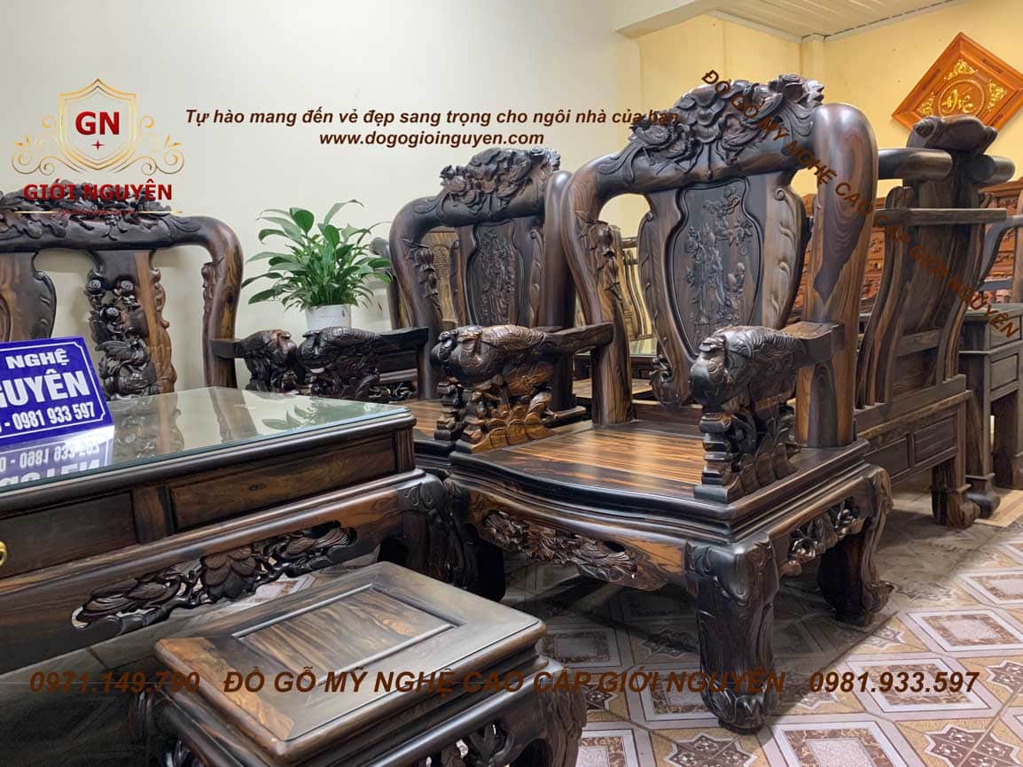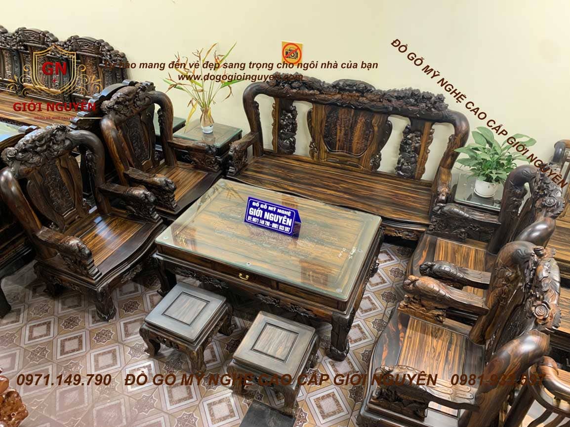 Bộ bàn ghế Hồng Công gỗ Mun hoa
