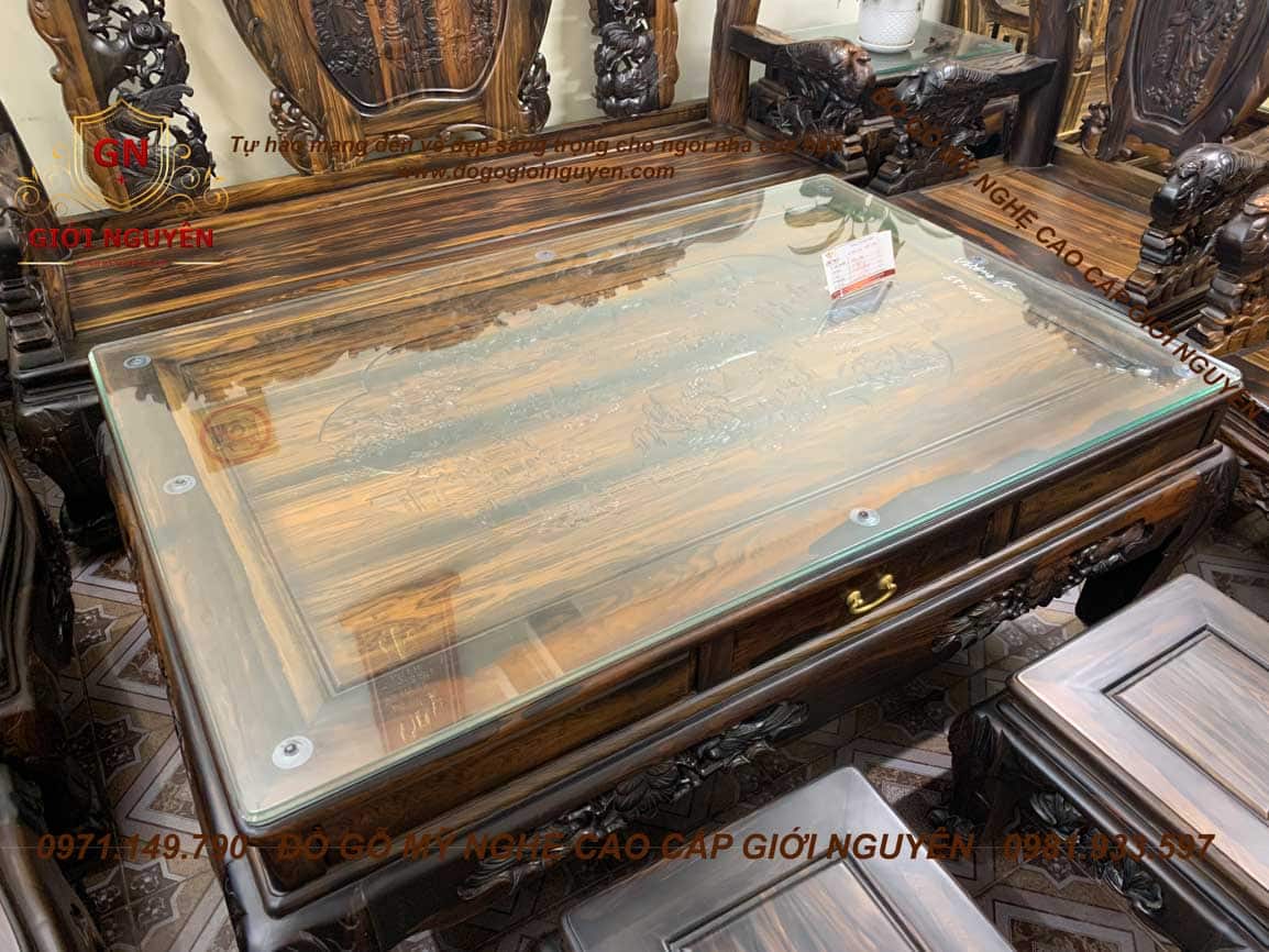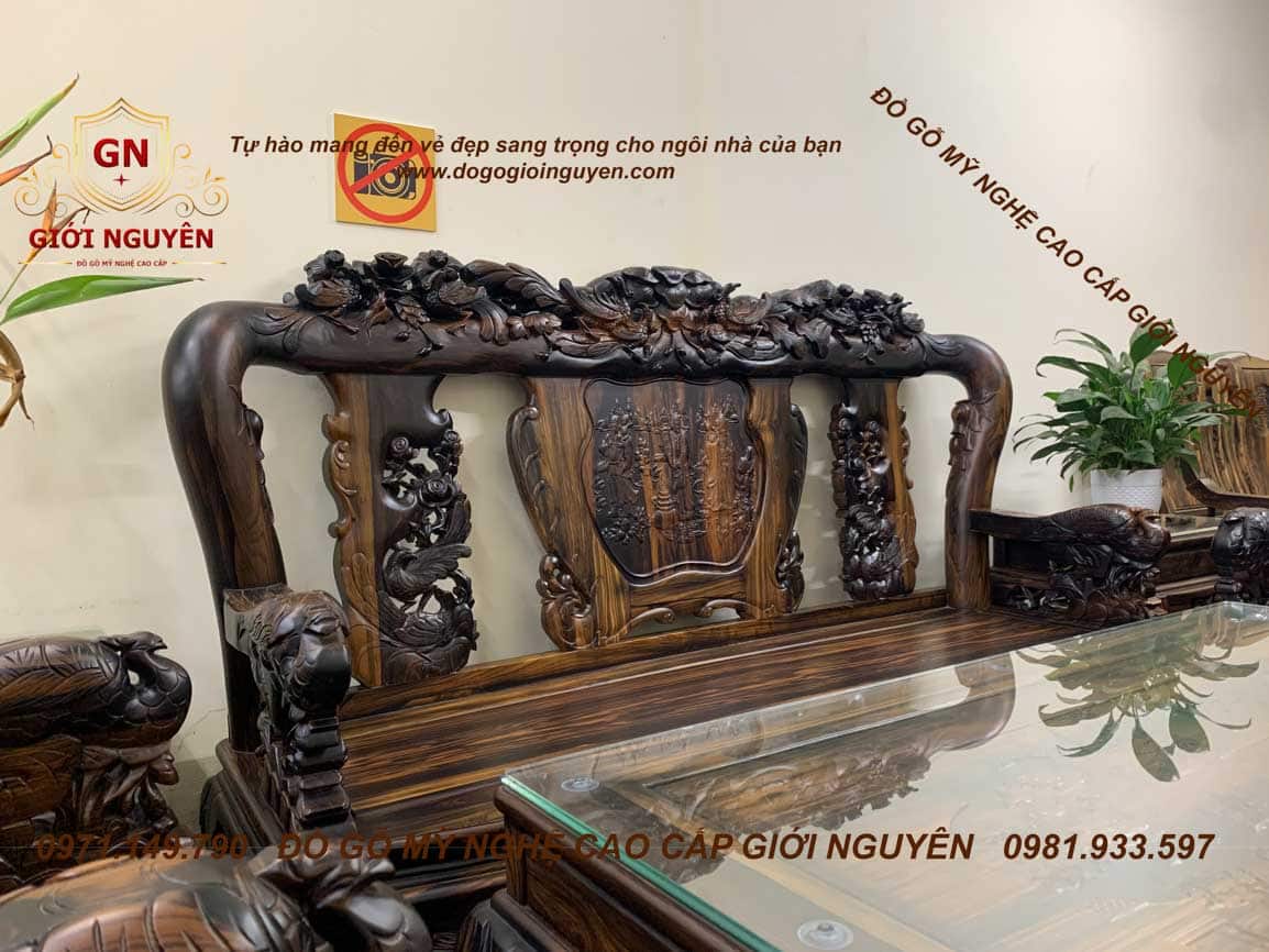 Bộ bàn ghế Hồng Công gỗ Mun hoa – 10 món – Cột 12