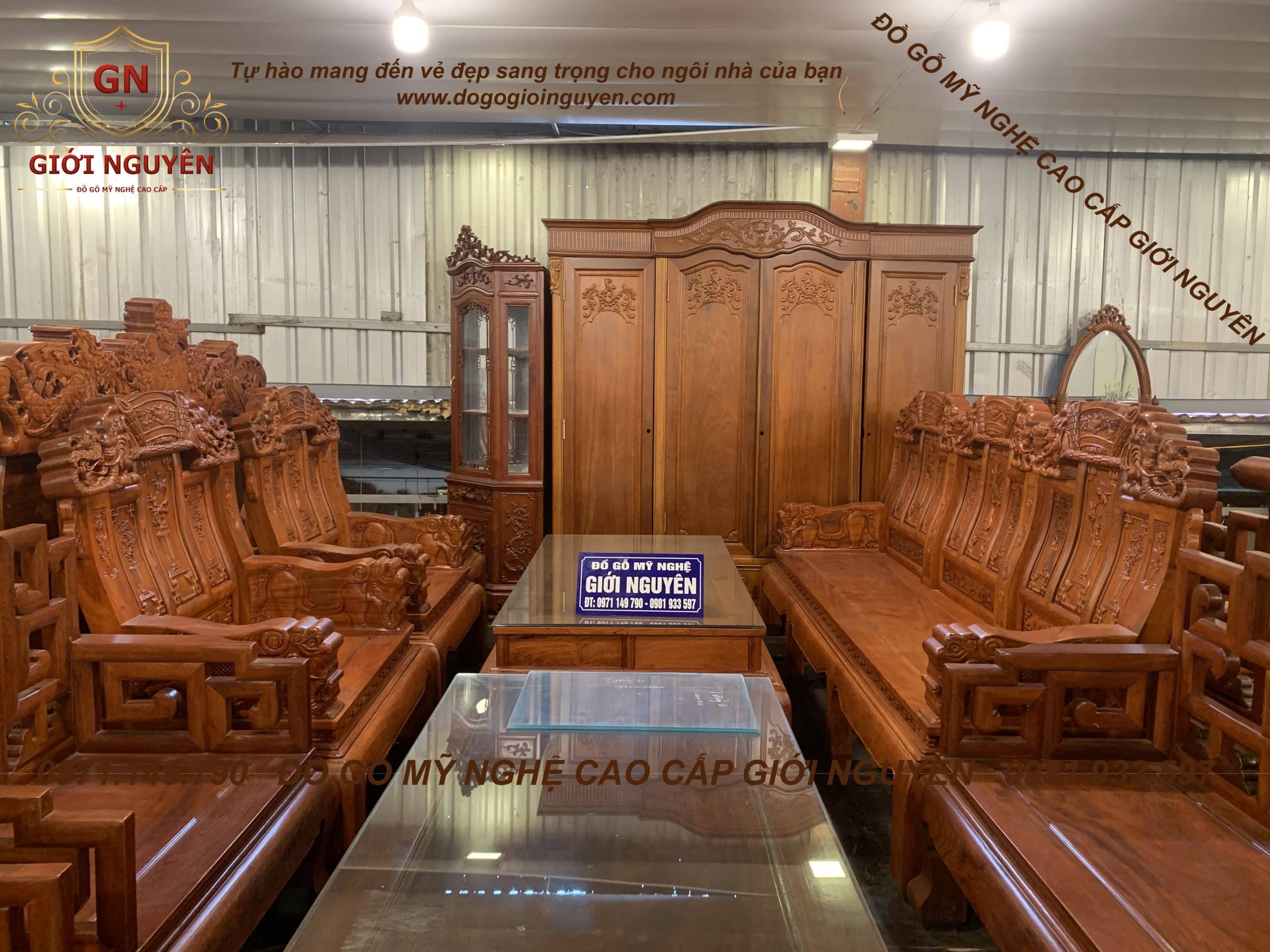 Bộ bàn ghế Khánh Voi gỗ Hương đá mẫu mới nhất 2022