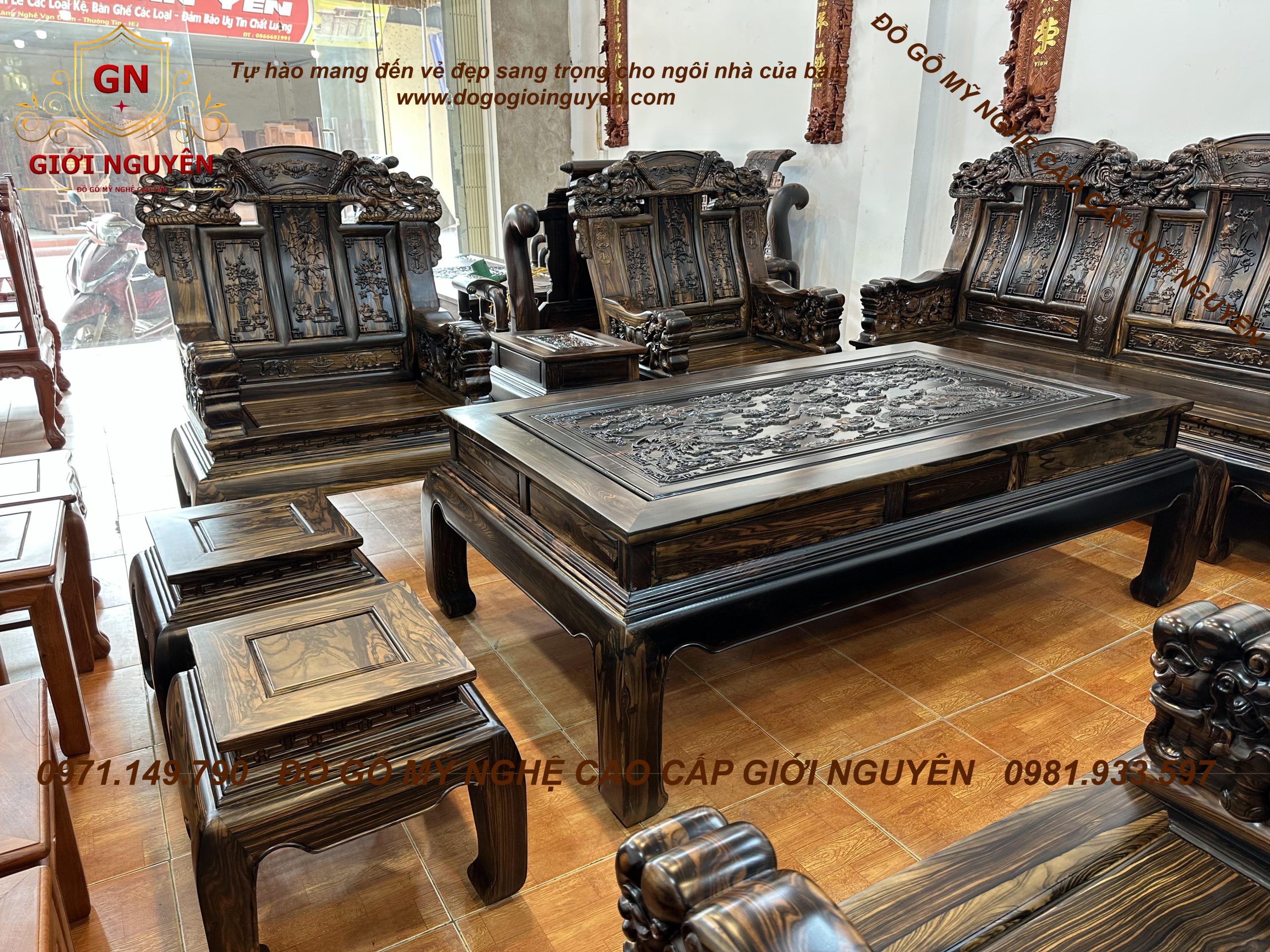 Bộ bàn ghế khánh voi gỗ mun hoa mới nhất 2023