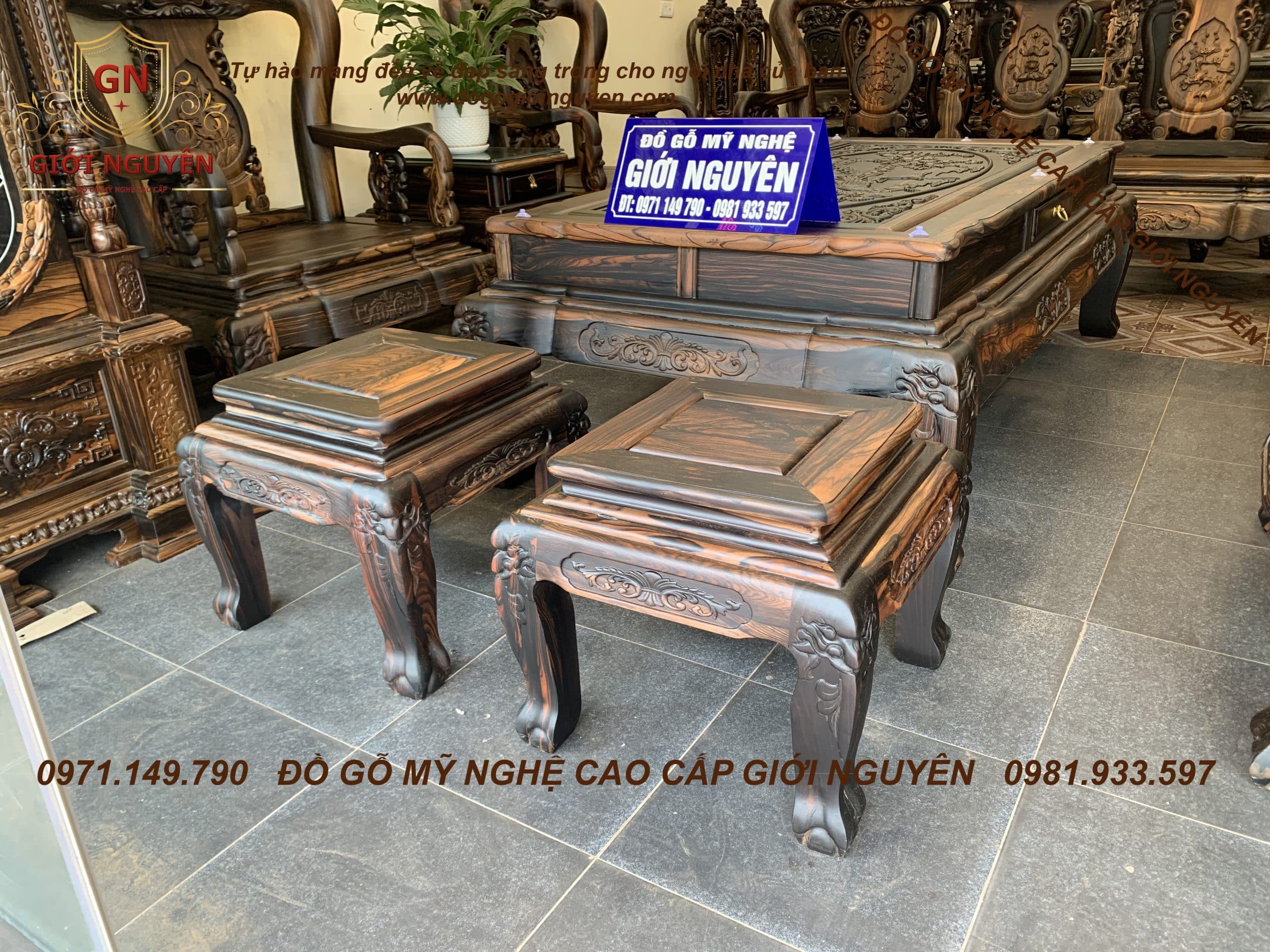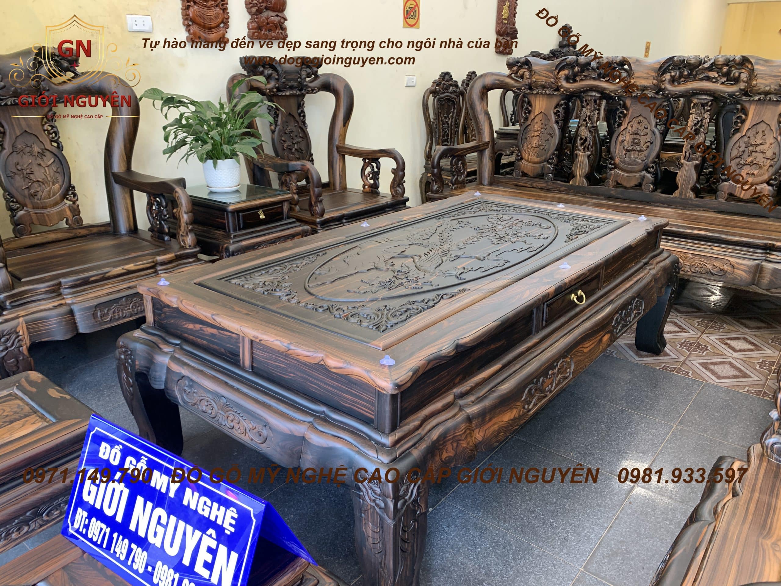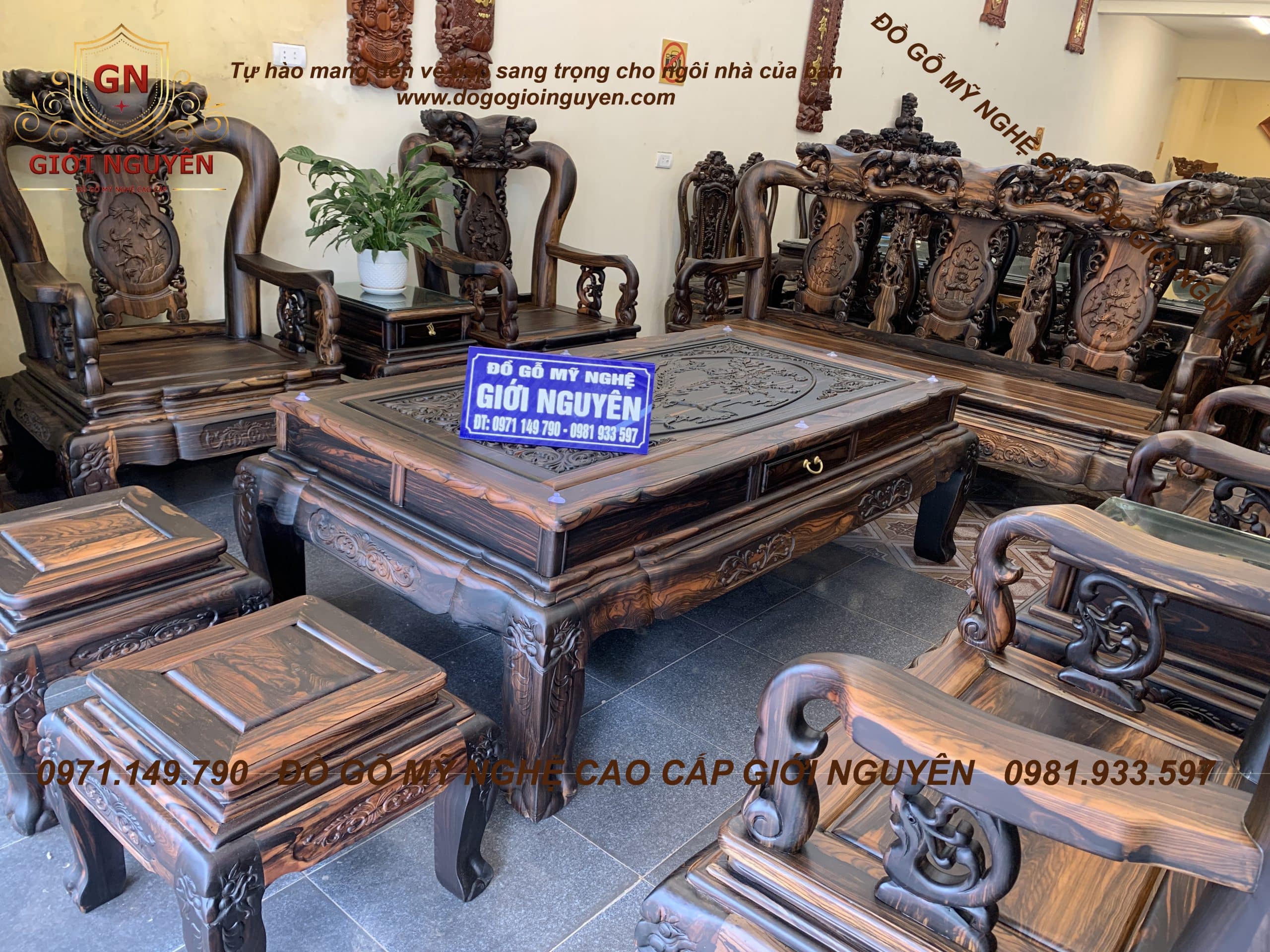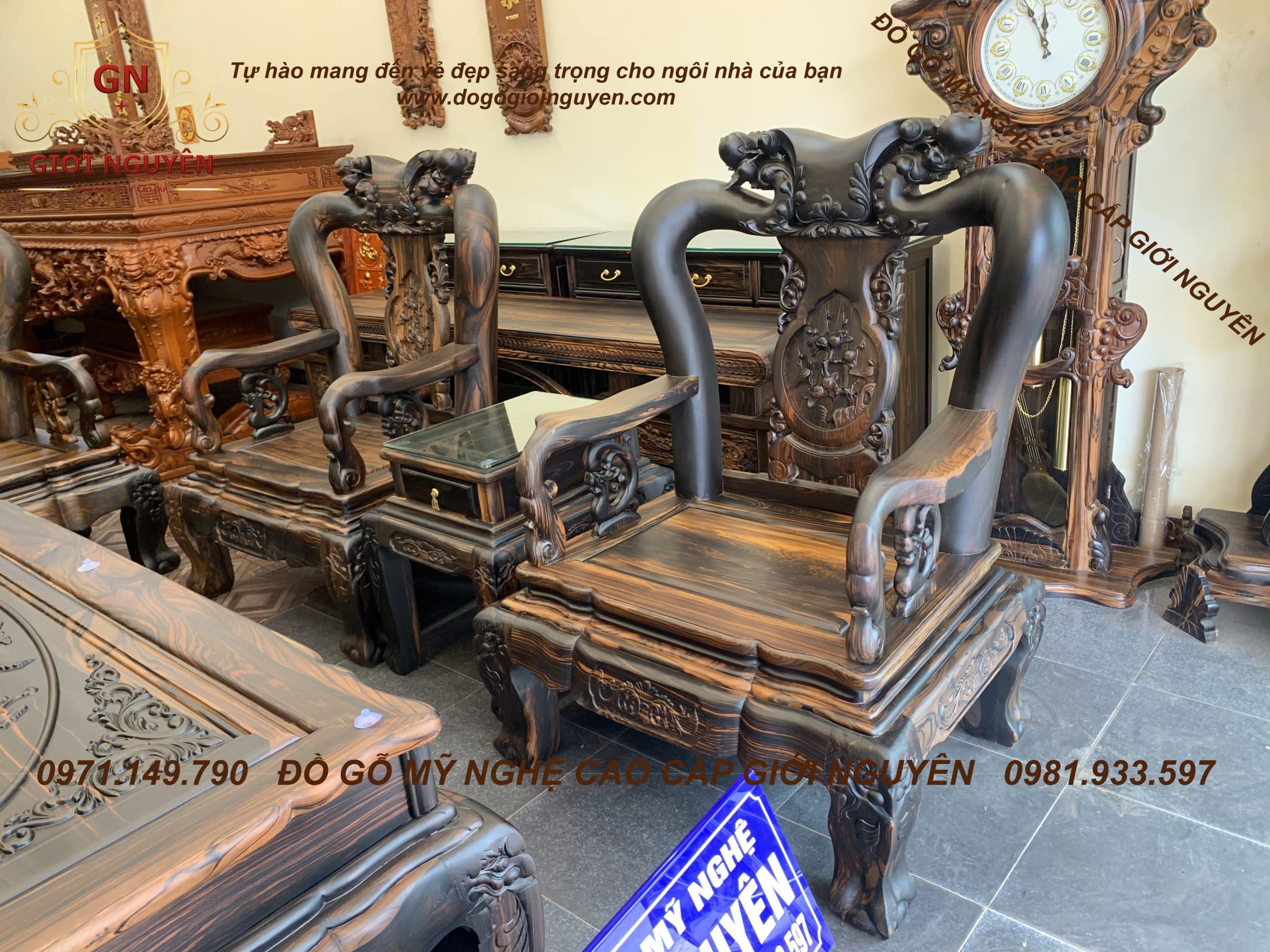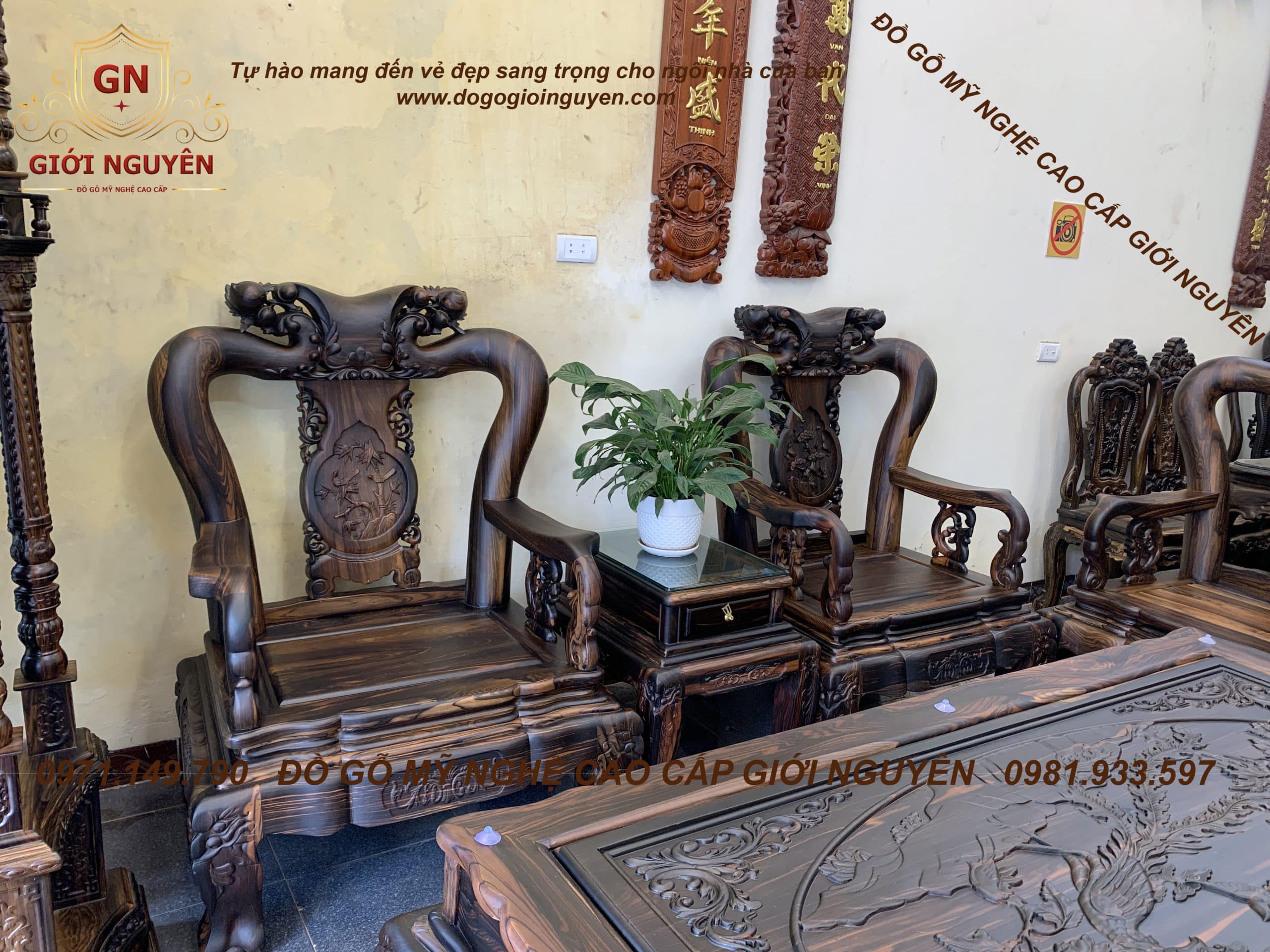 Bộ bàn ghế Minh Quốc Đào tay 12 gỗ Mun hoa