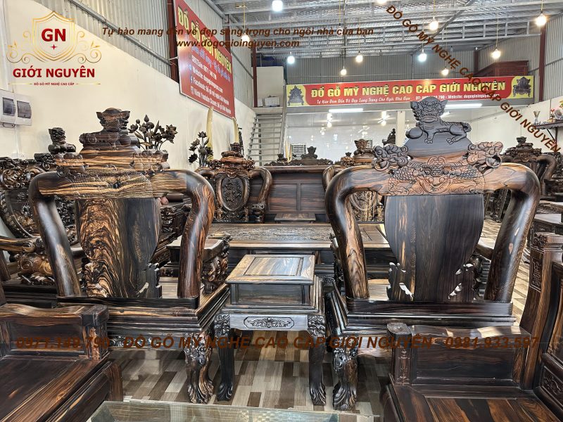 Bộ bàn ghế nghê bảo đỉnh tay 12 gỗ mun hoa
