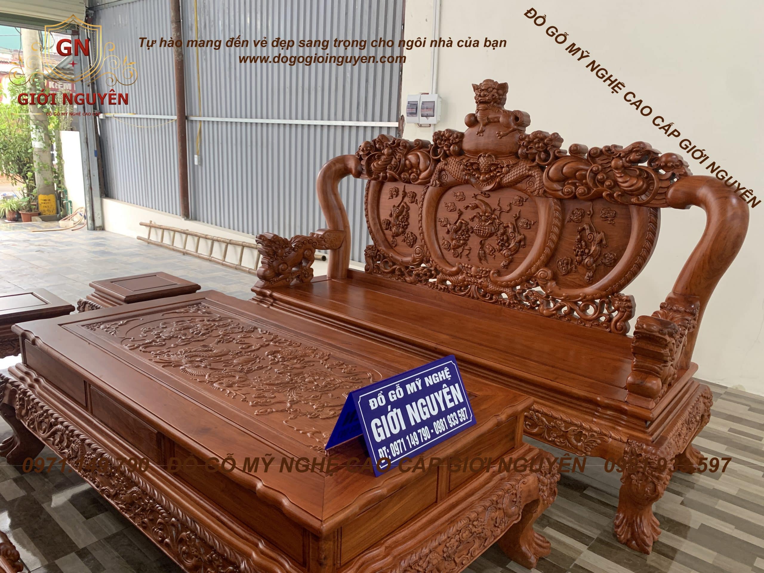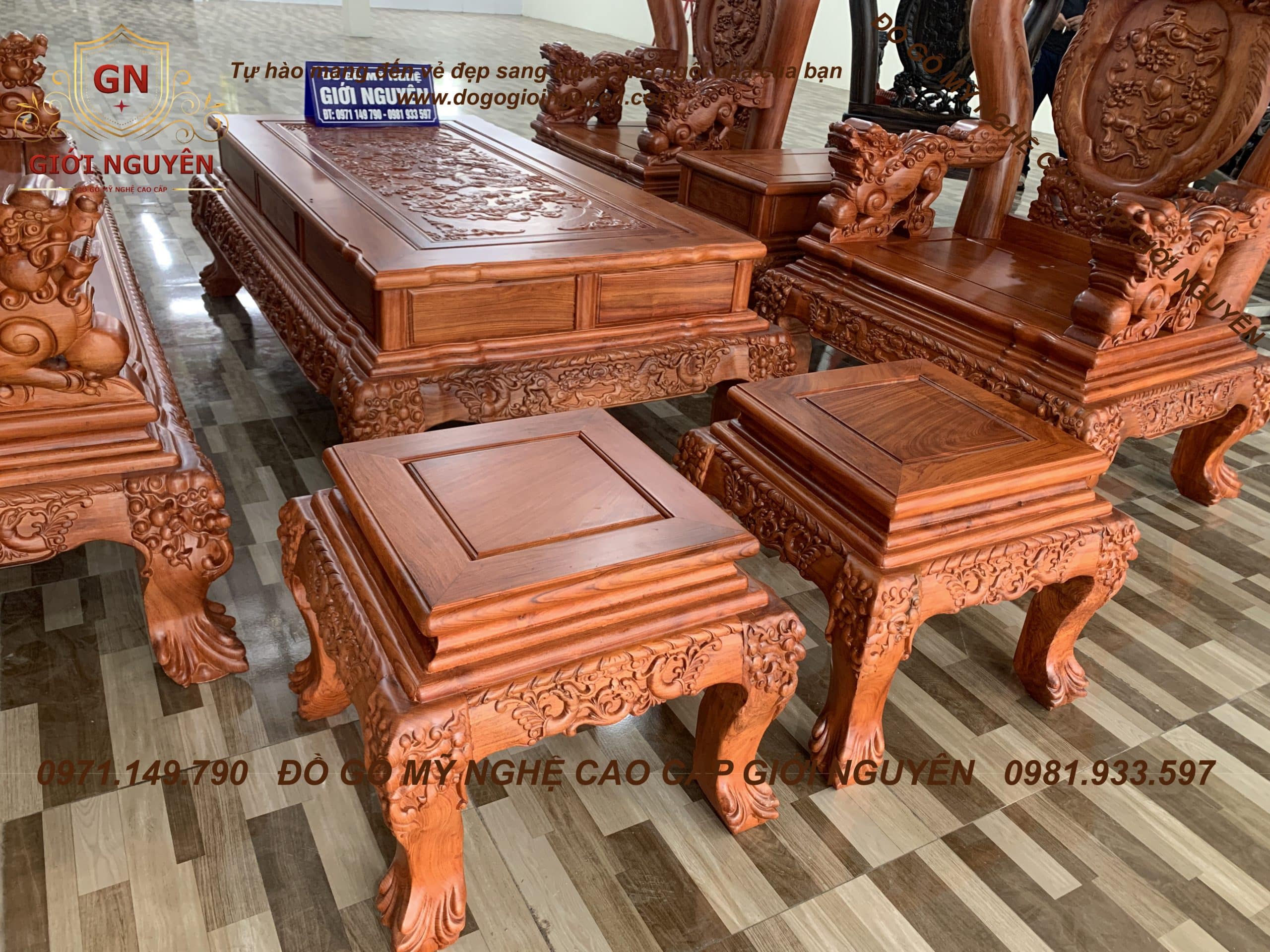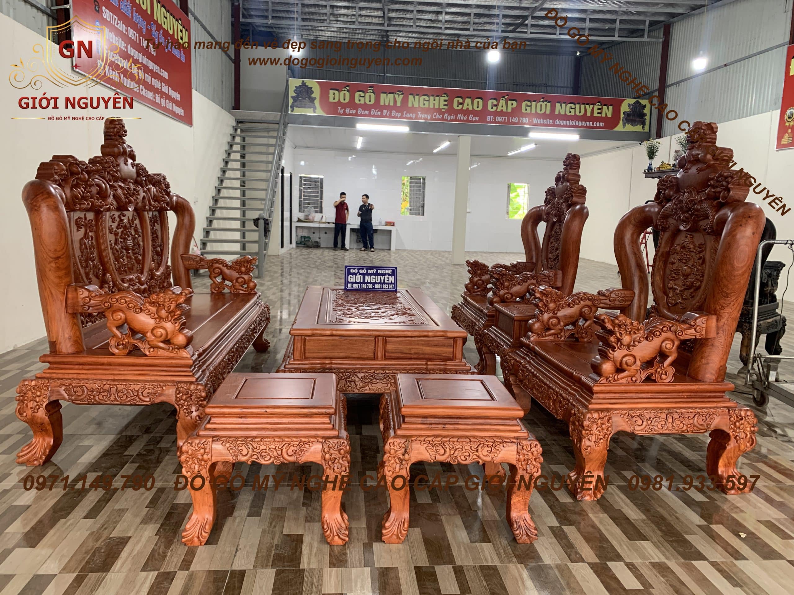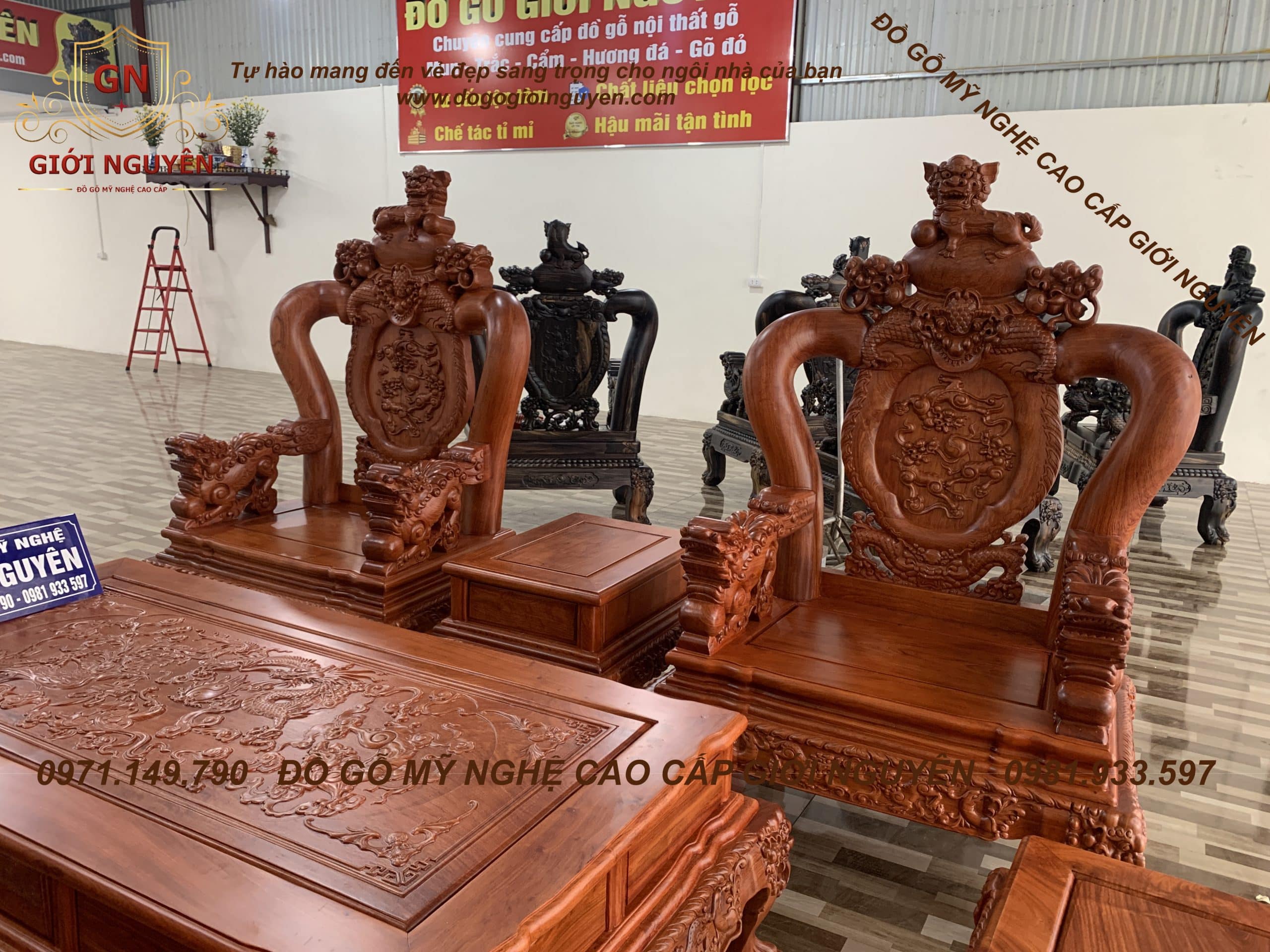 Bộ bàn ghế Nghê Bảo Đỉnh tay 14 gỗ Hương đá