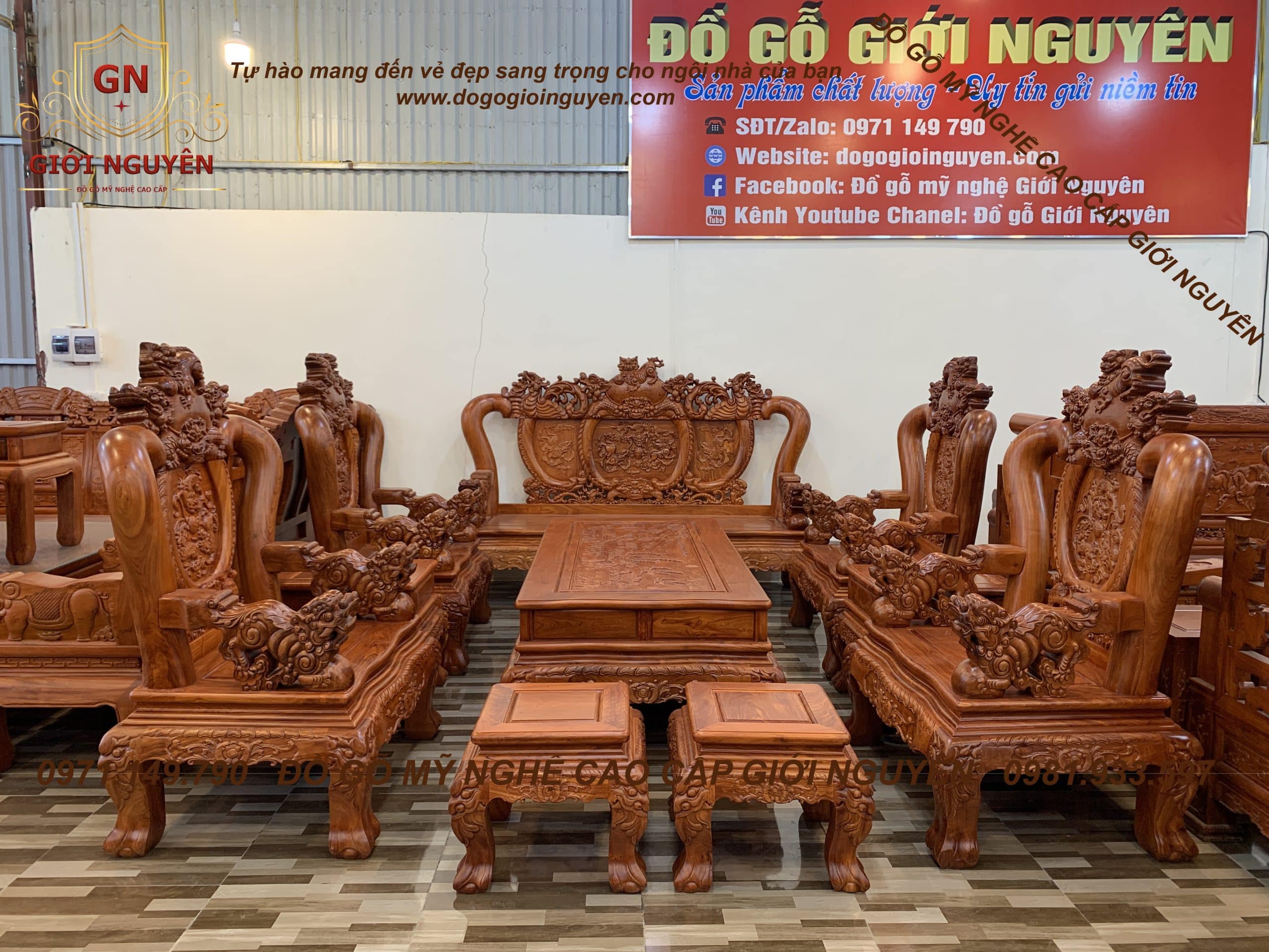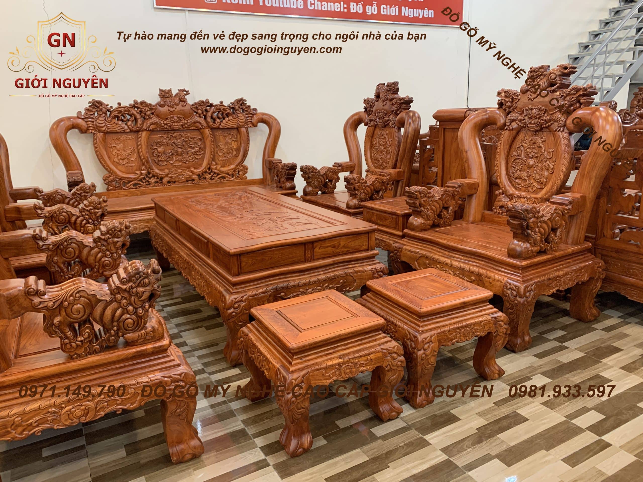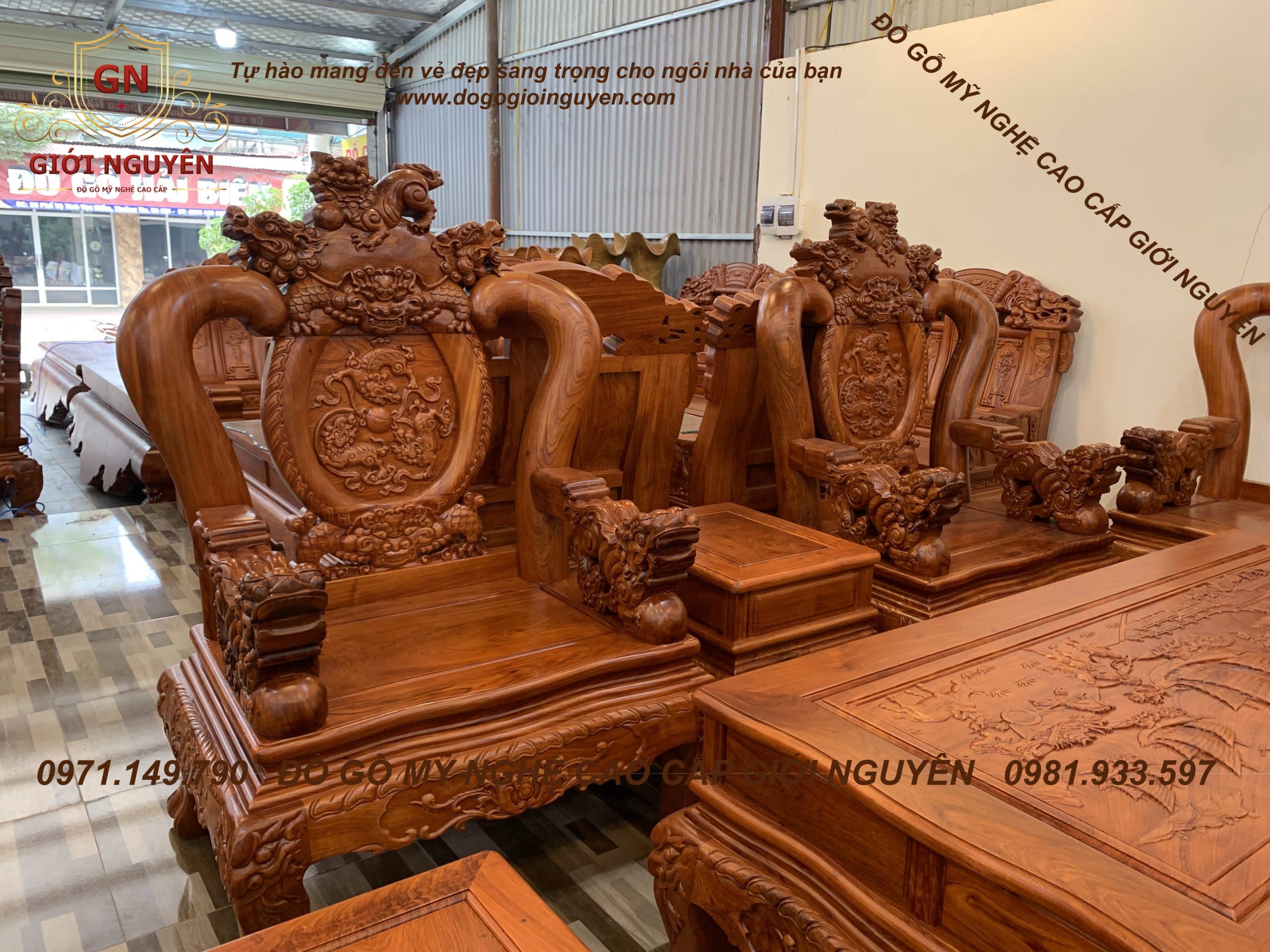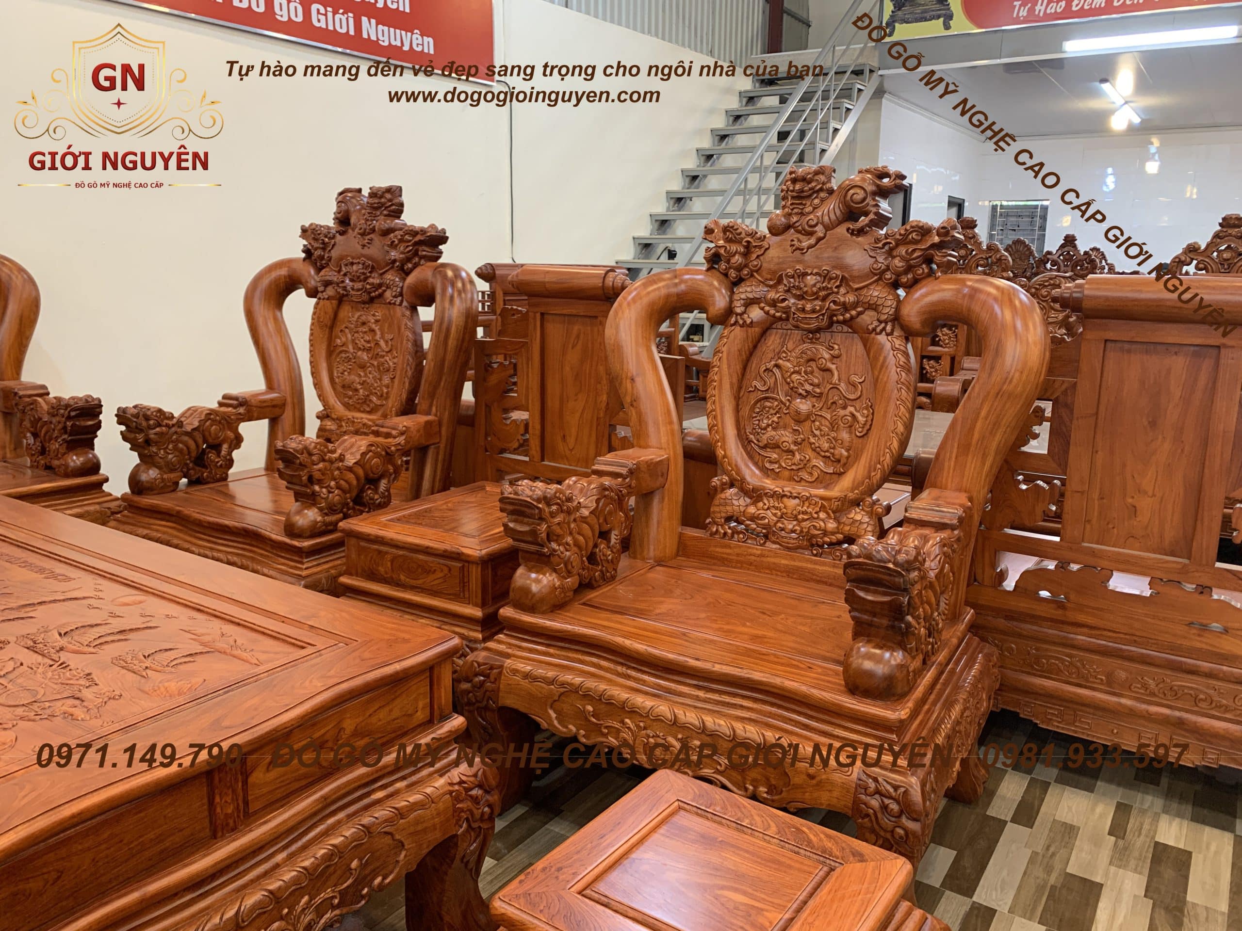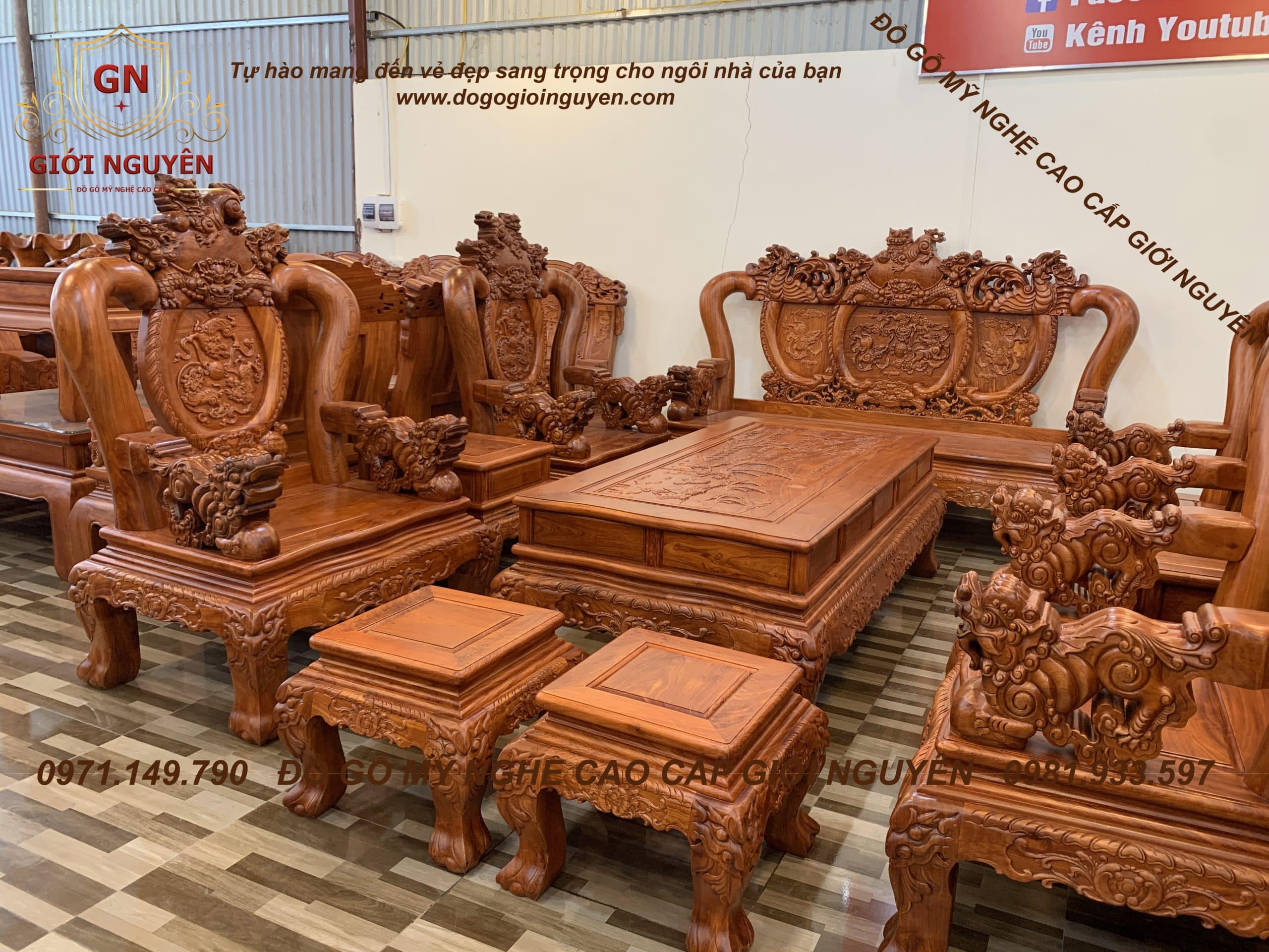 Bộ bàn ghế Nghê bảo Đỉnh tay 14 gỗ Hương đá