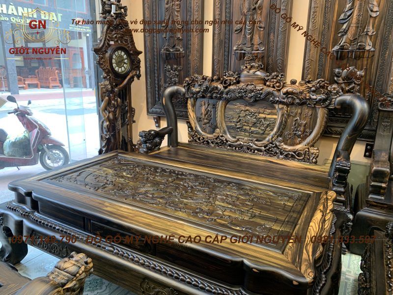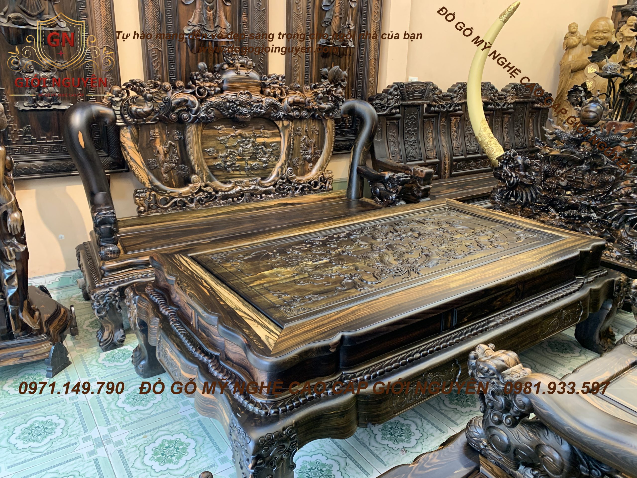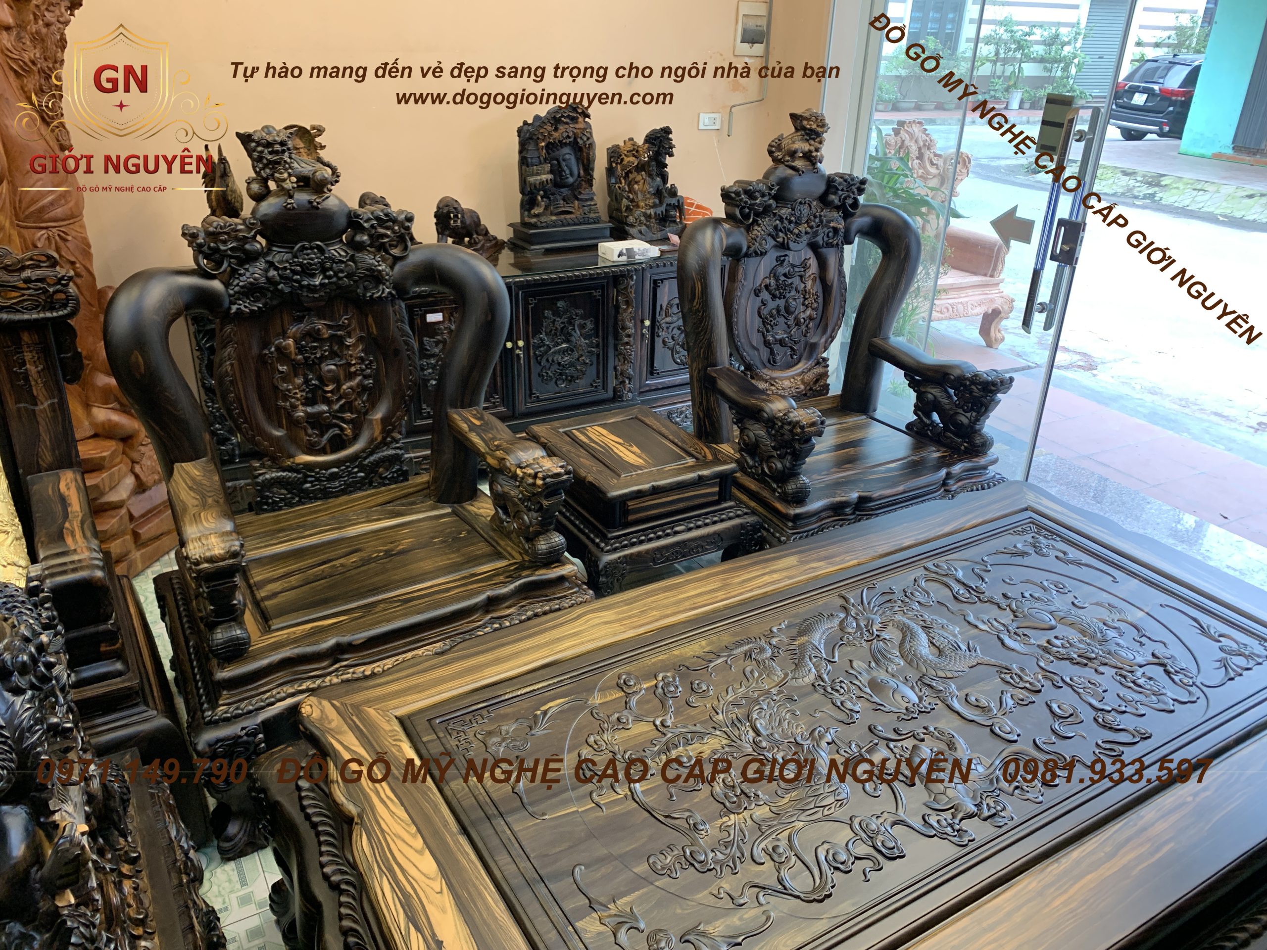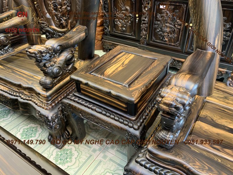 Bộ bàn ghế Nghê bảo đỉnh tay 14 gỗ mun hoa