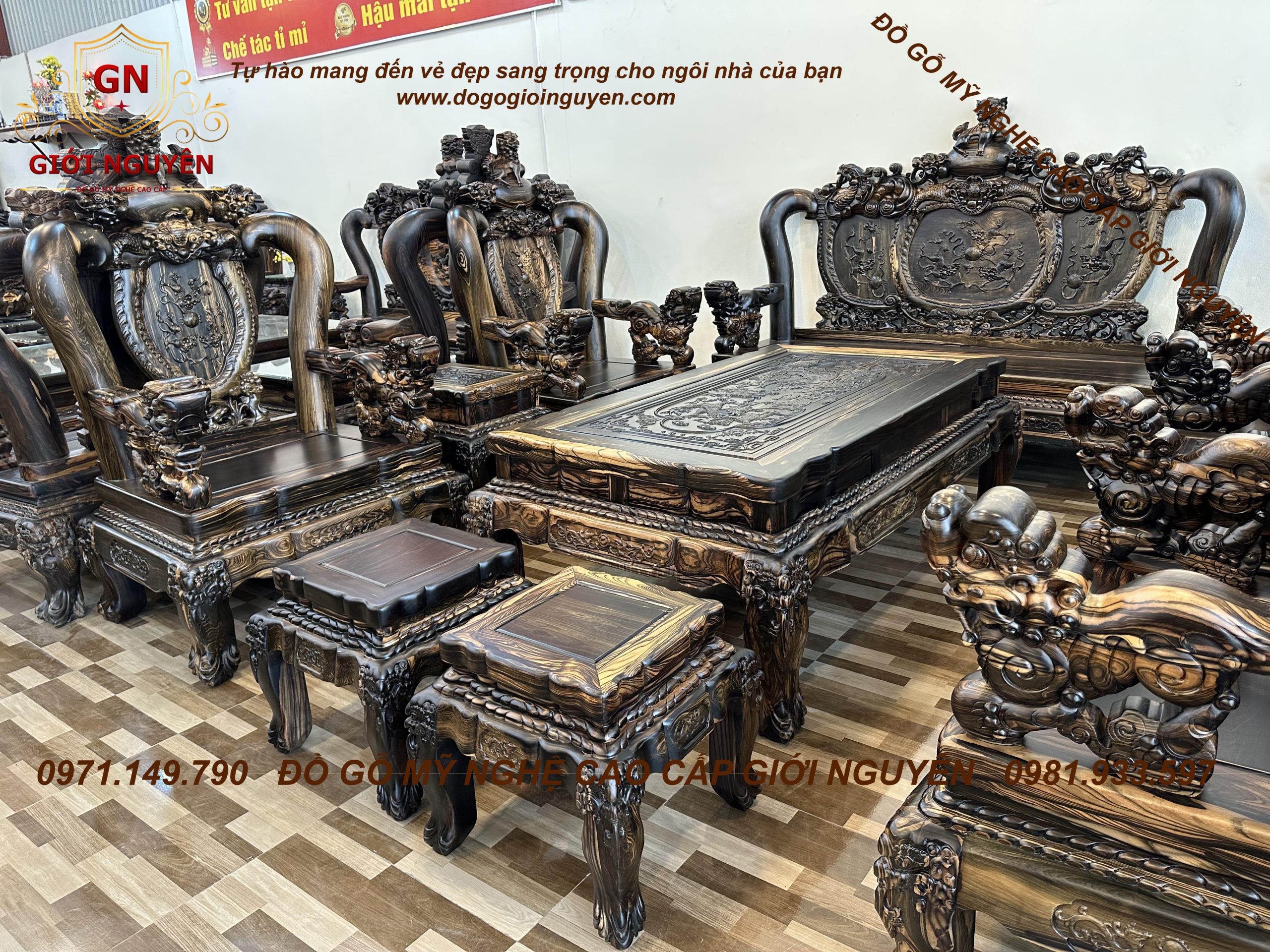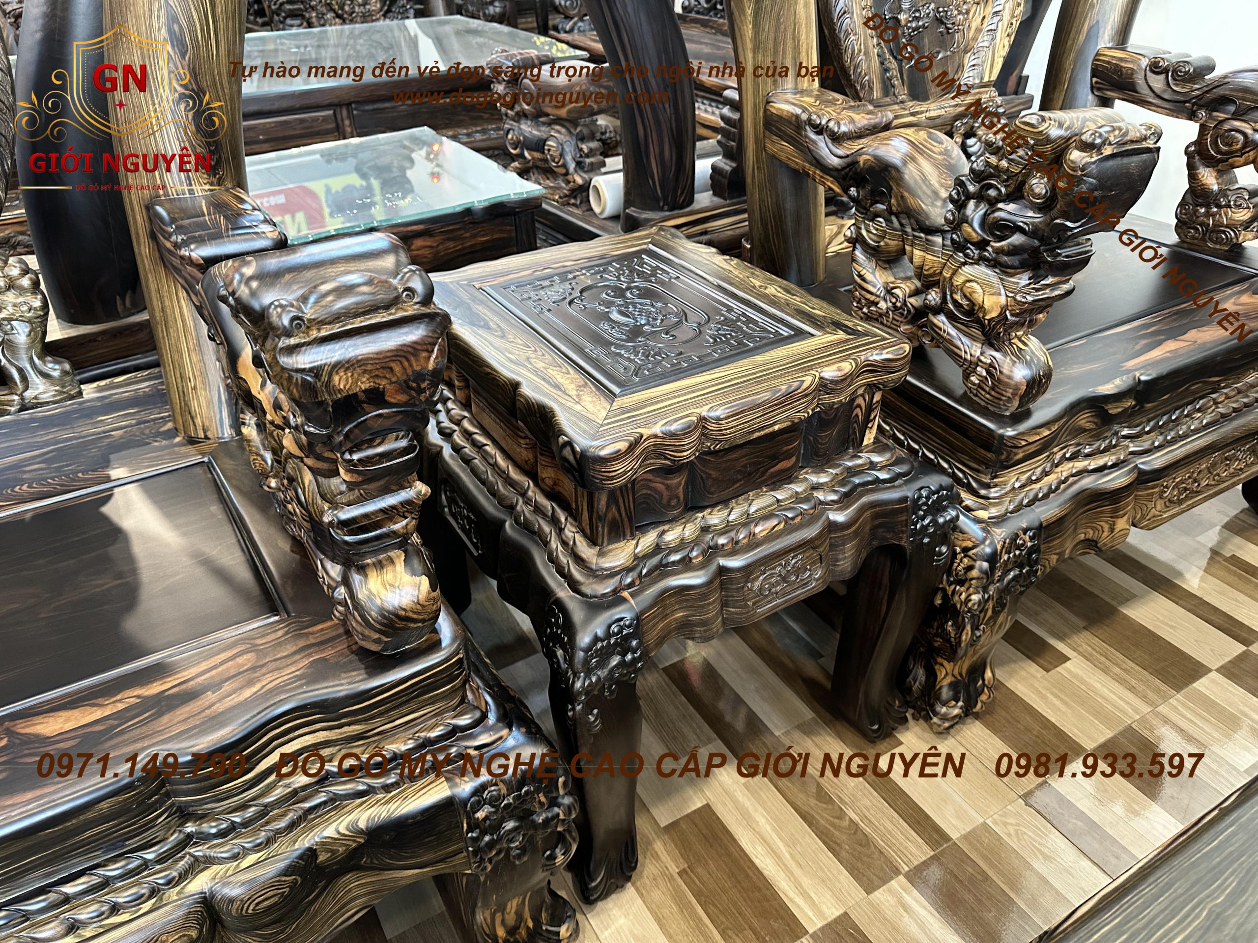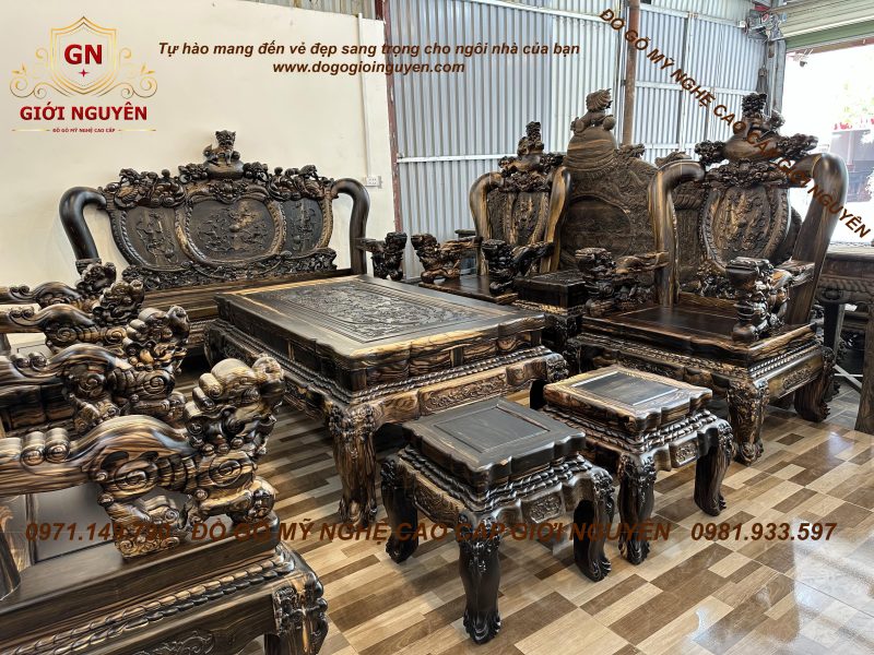 Bộ bàn ghế nghê bảo đỉnh tay 14 gỗ mun hoa