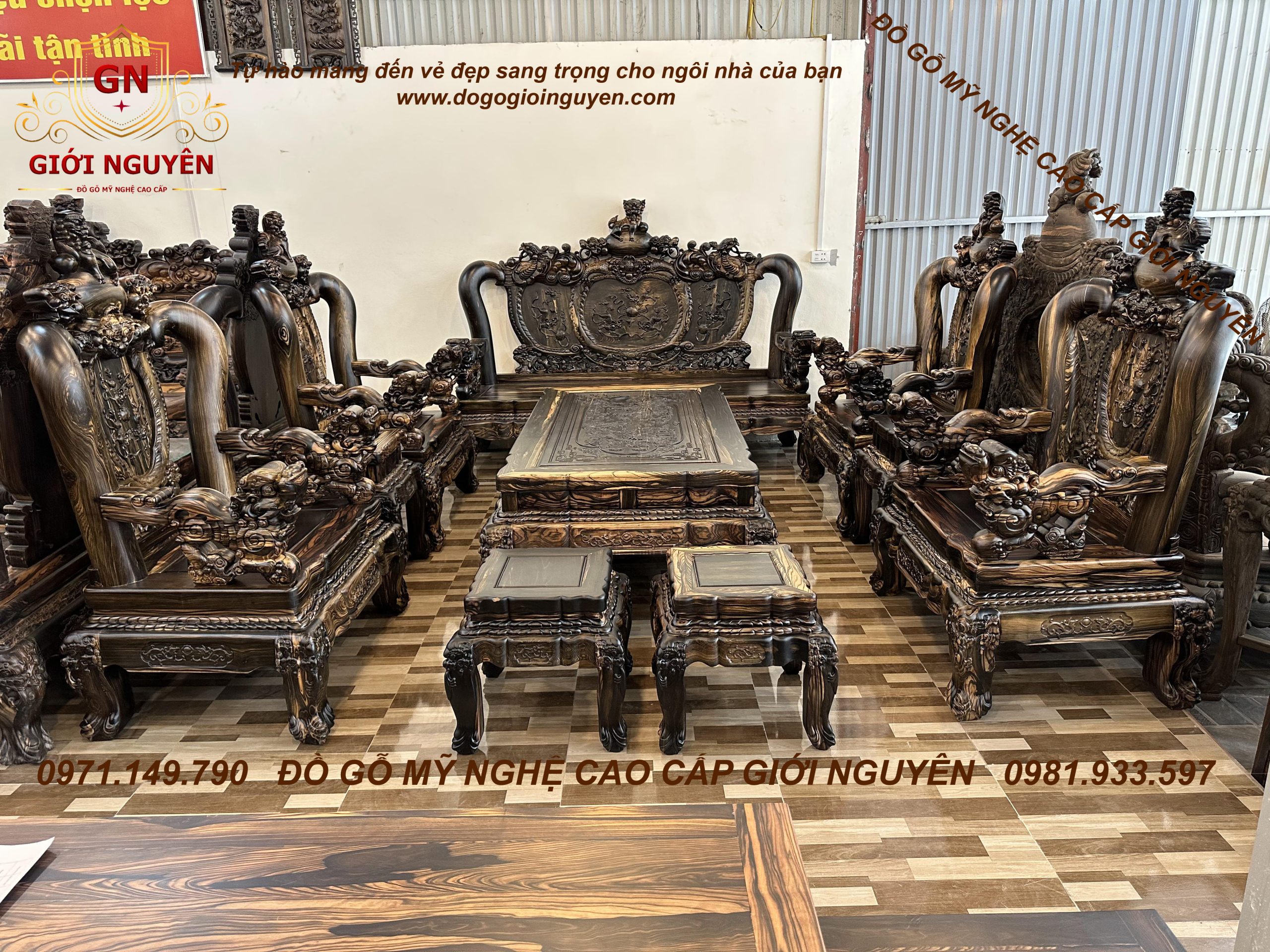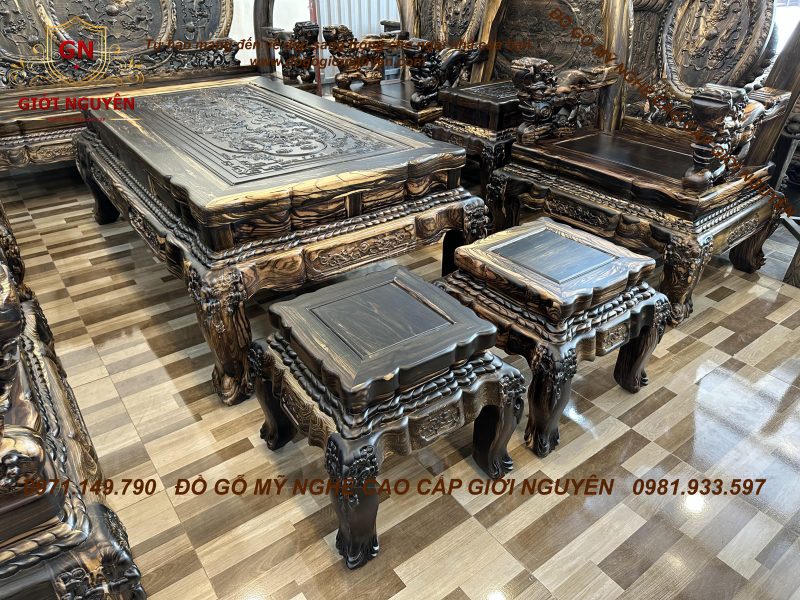 Bộ bàn ghế nghê bảo đỉnh tay 14 gỗ mun hoa mới nhất 2023