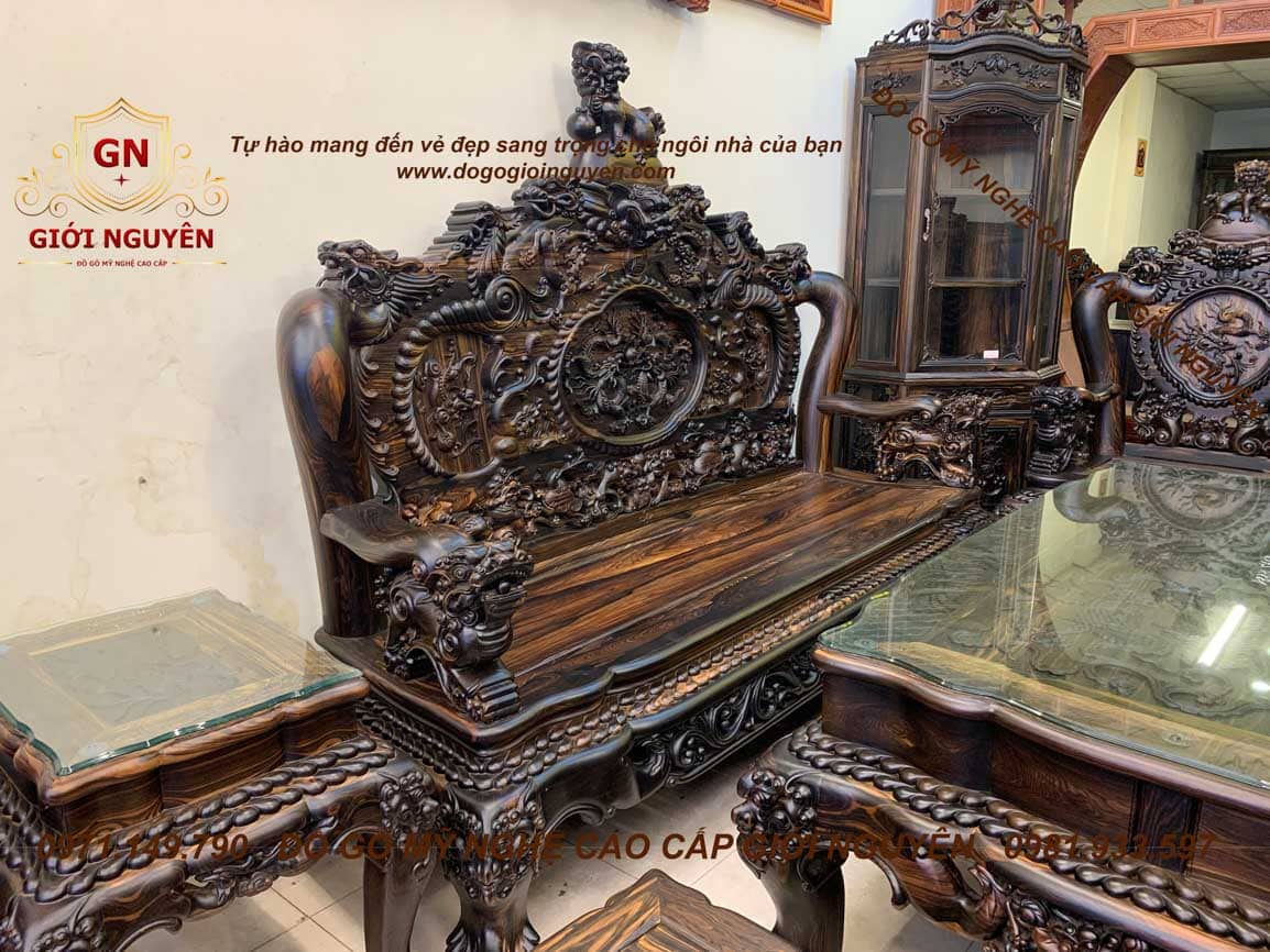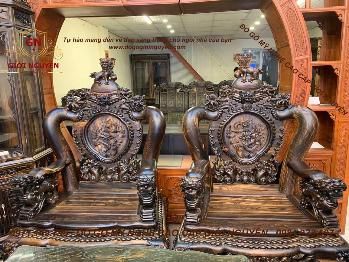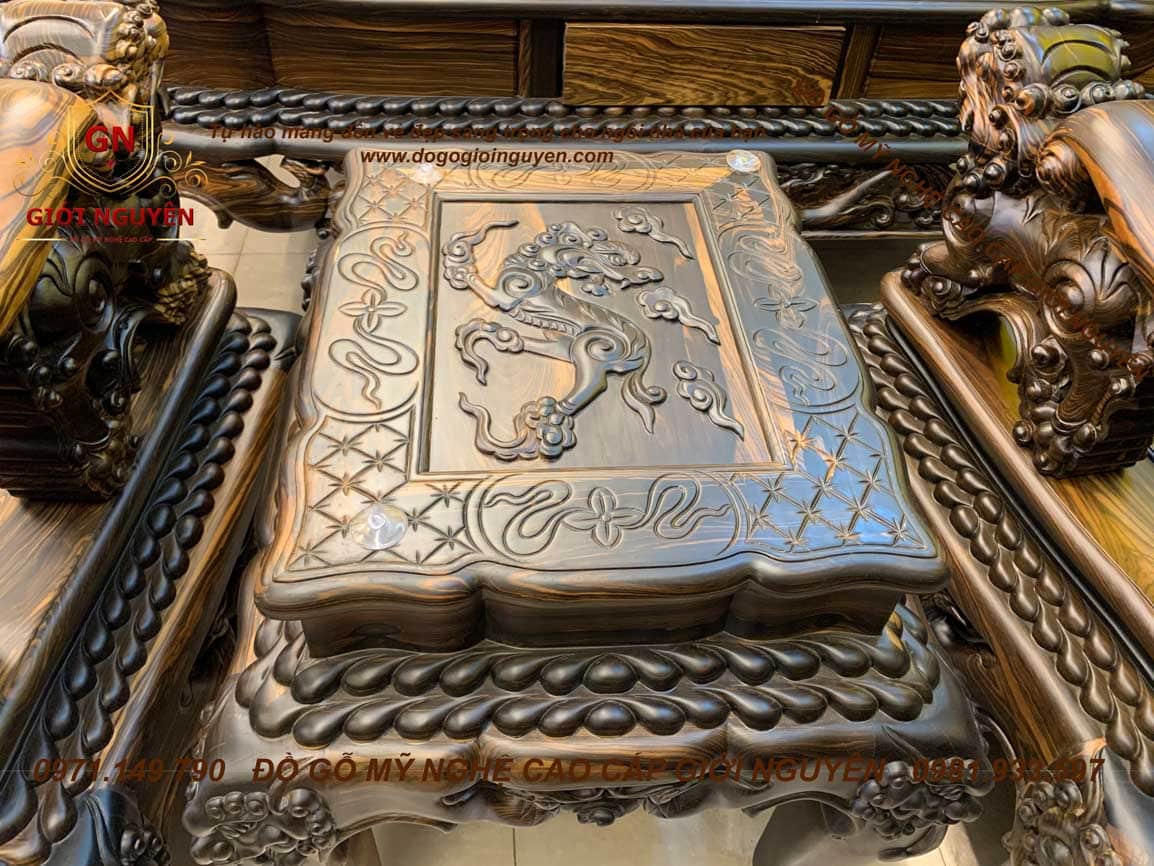 Bộ bàn ghế Quốc Rồng Đỉnh gỗ Mun hoa trụ 14