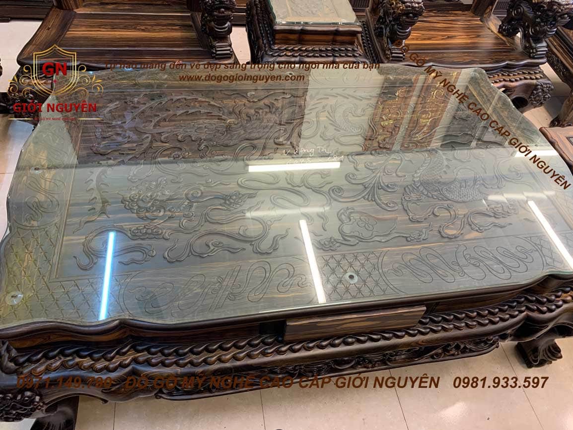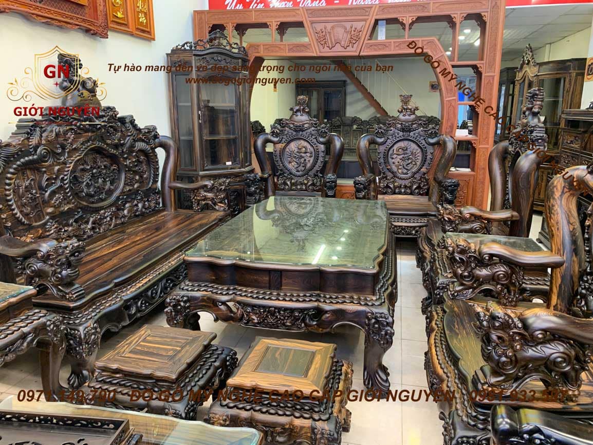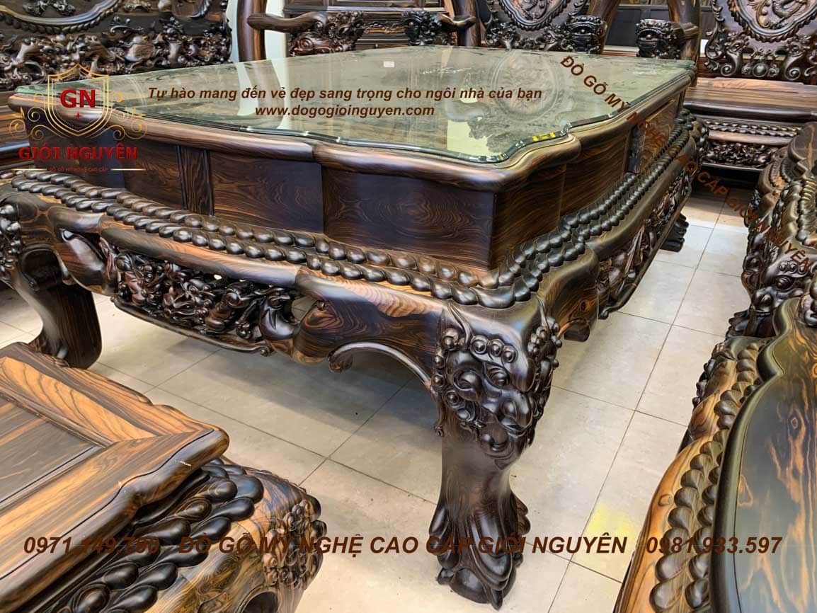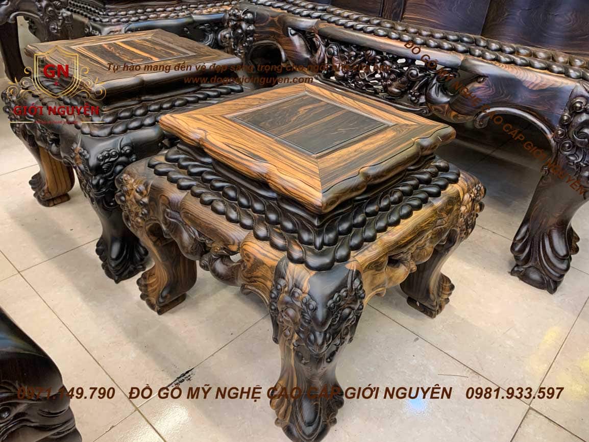 Bộ bàn ghế Quốc Rồng Đỉnh gỗ Mun hoa trụ 14
