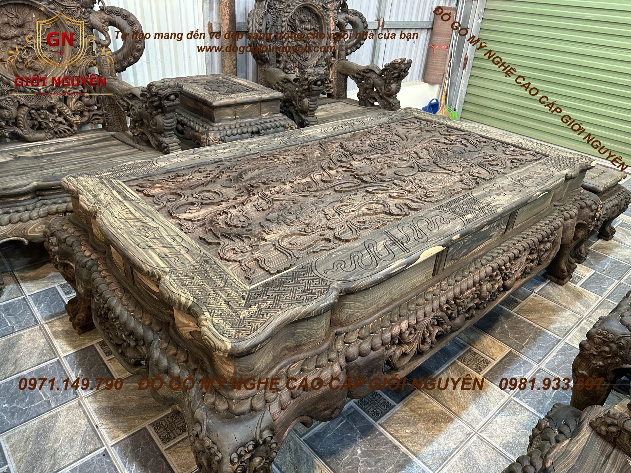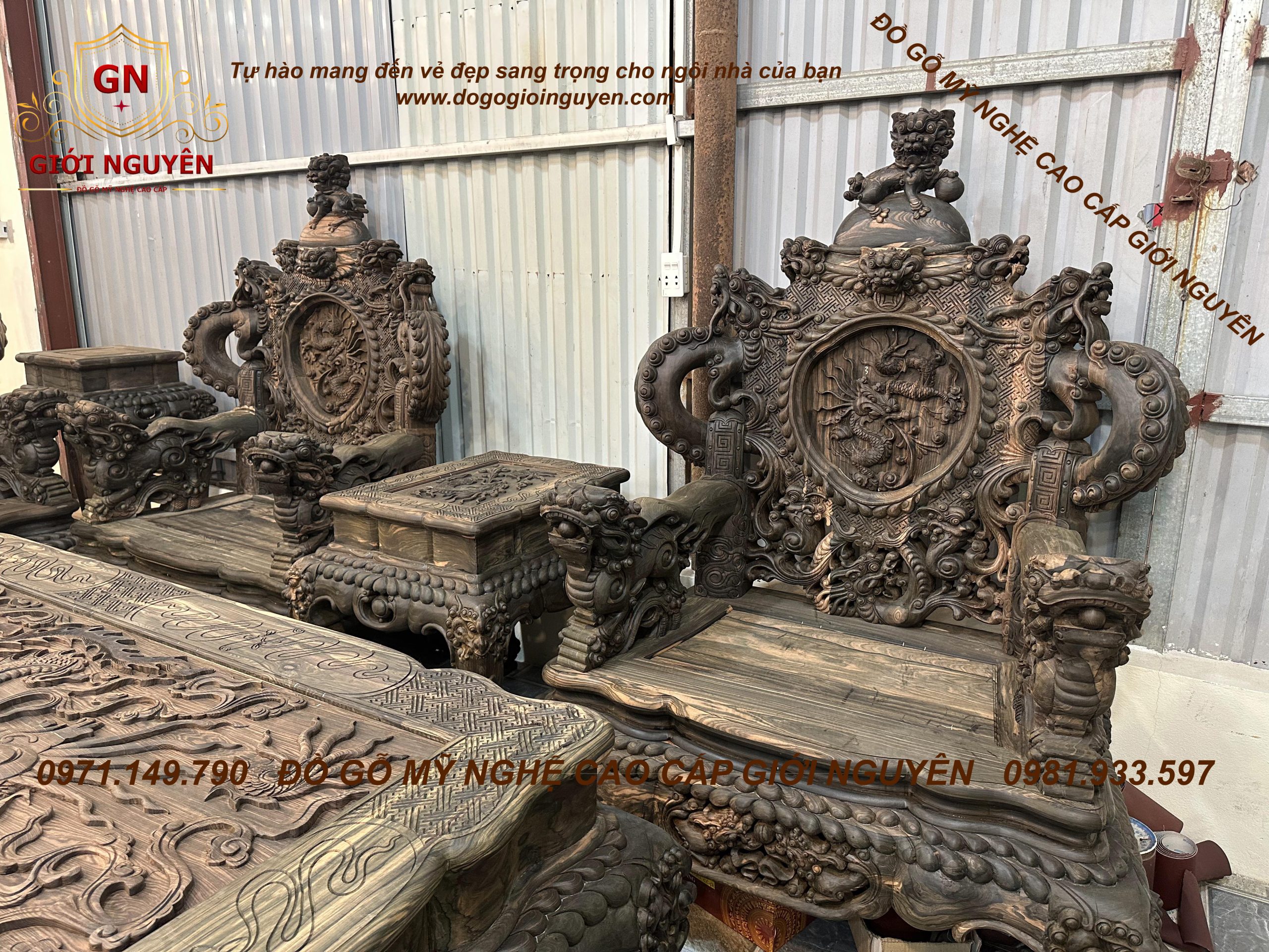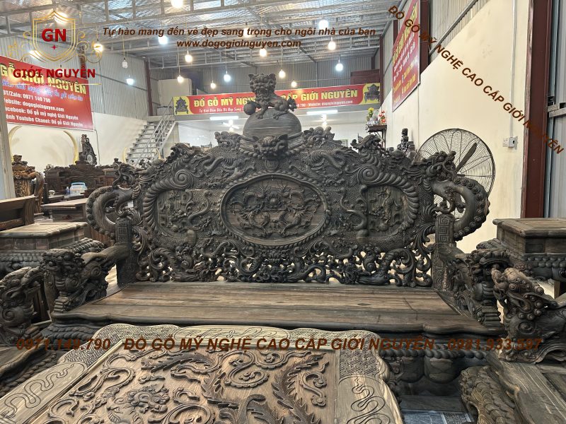 Bộ bàn ghế rồng đỉnh gỗ mun hoa