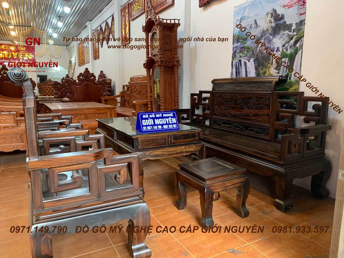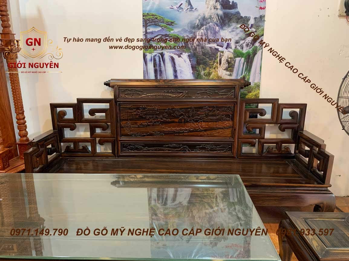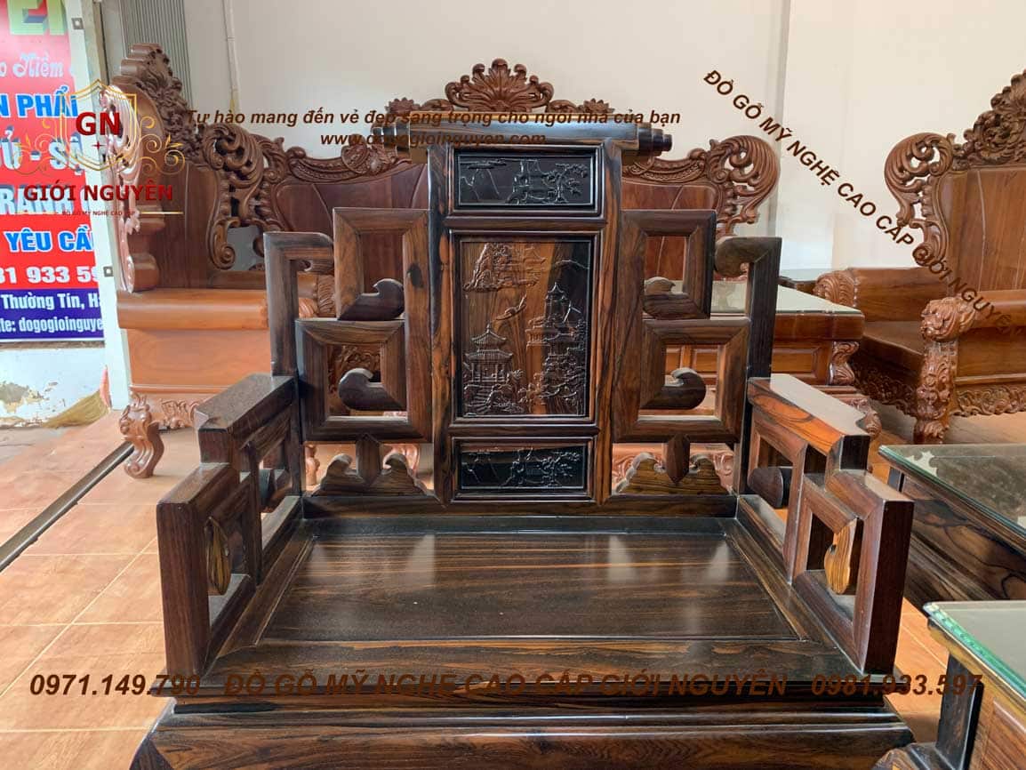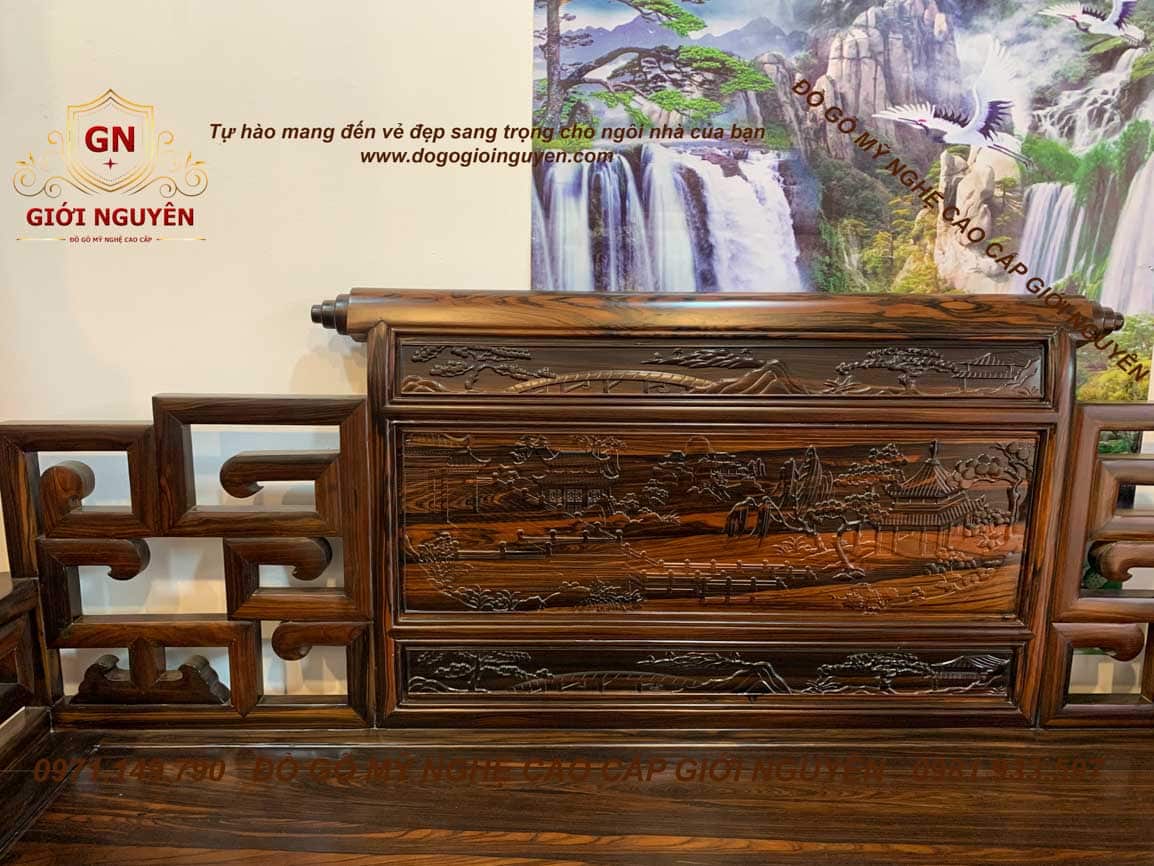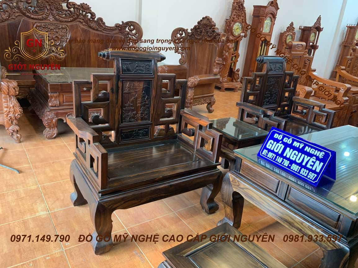 Bộ bàn ghế Sơn Thủy gỗ Mun hoa