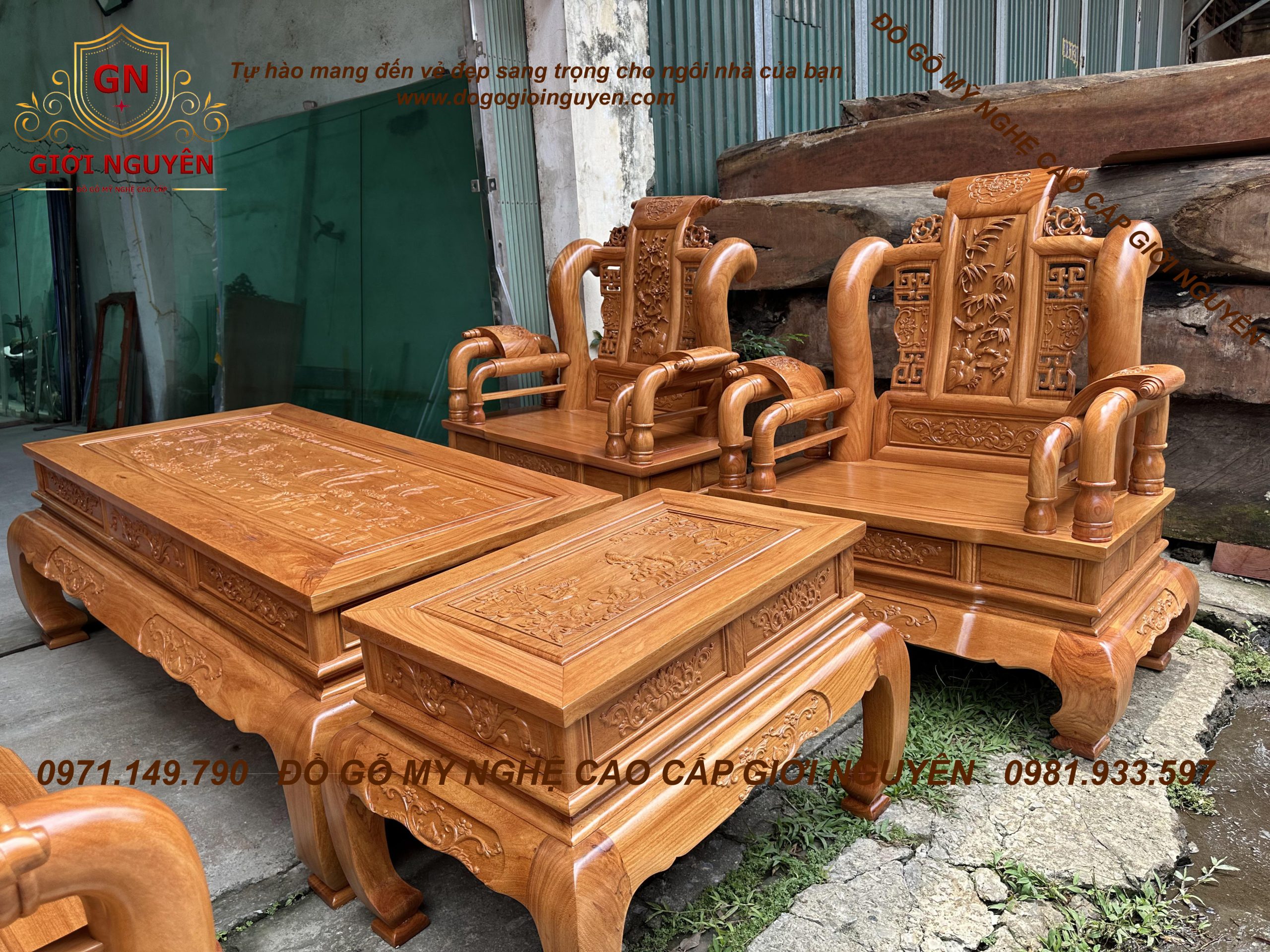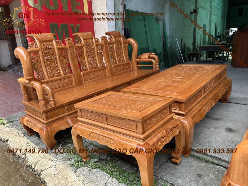 Bộ bàn ghế tần thuỷ hoàng tay 12 chân 14 gỗ gõ đỏ