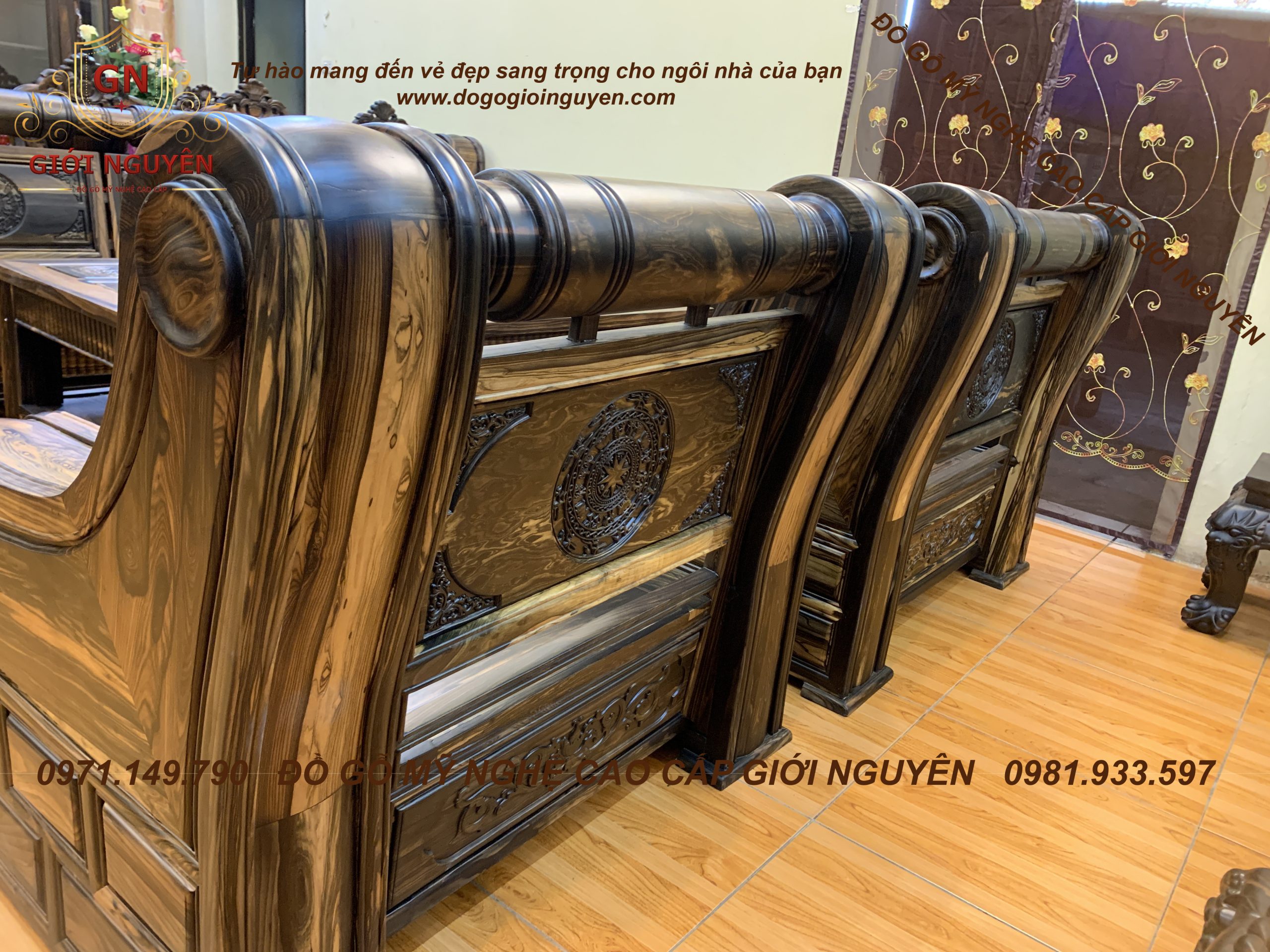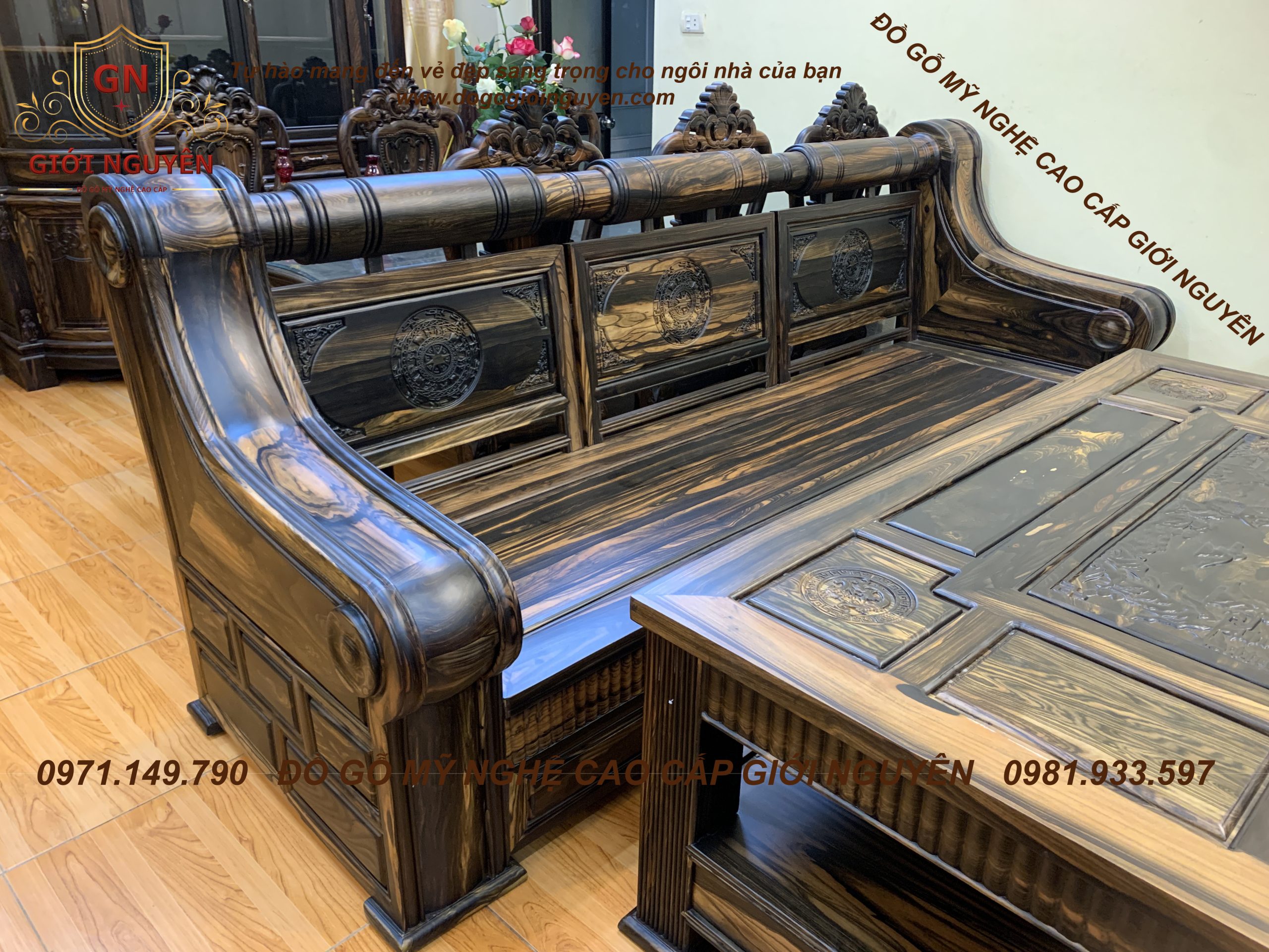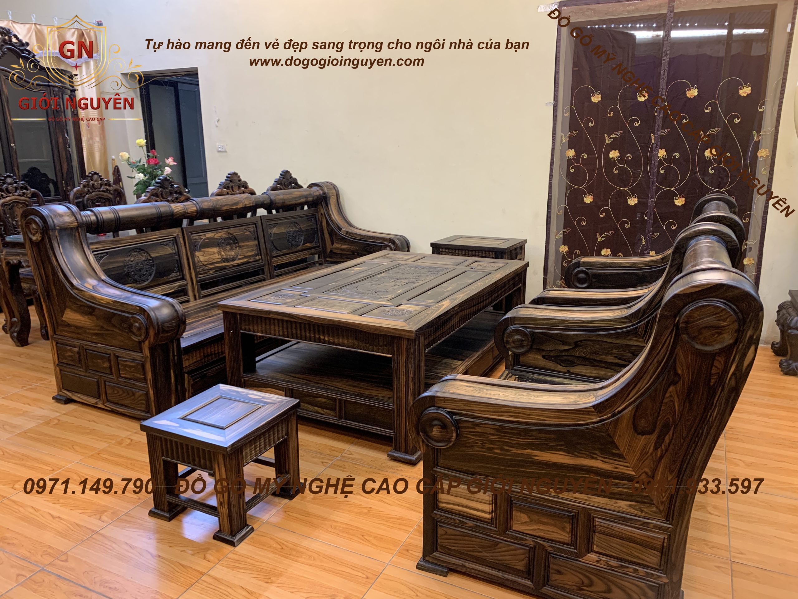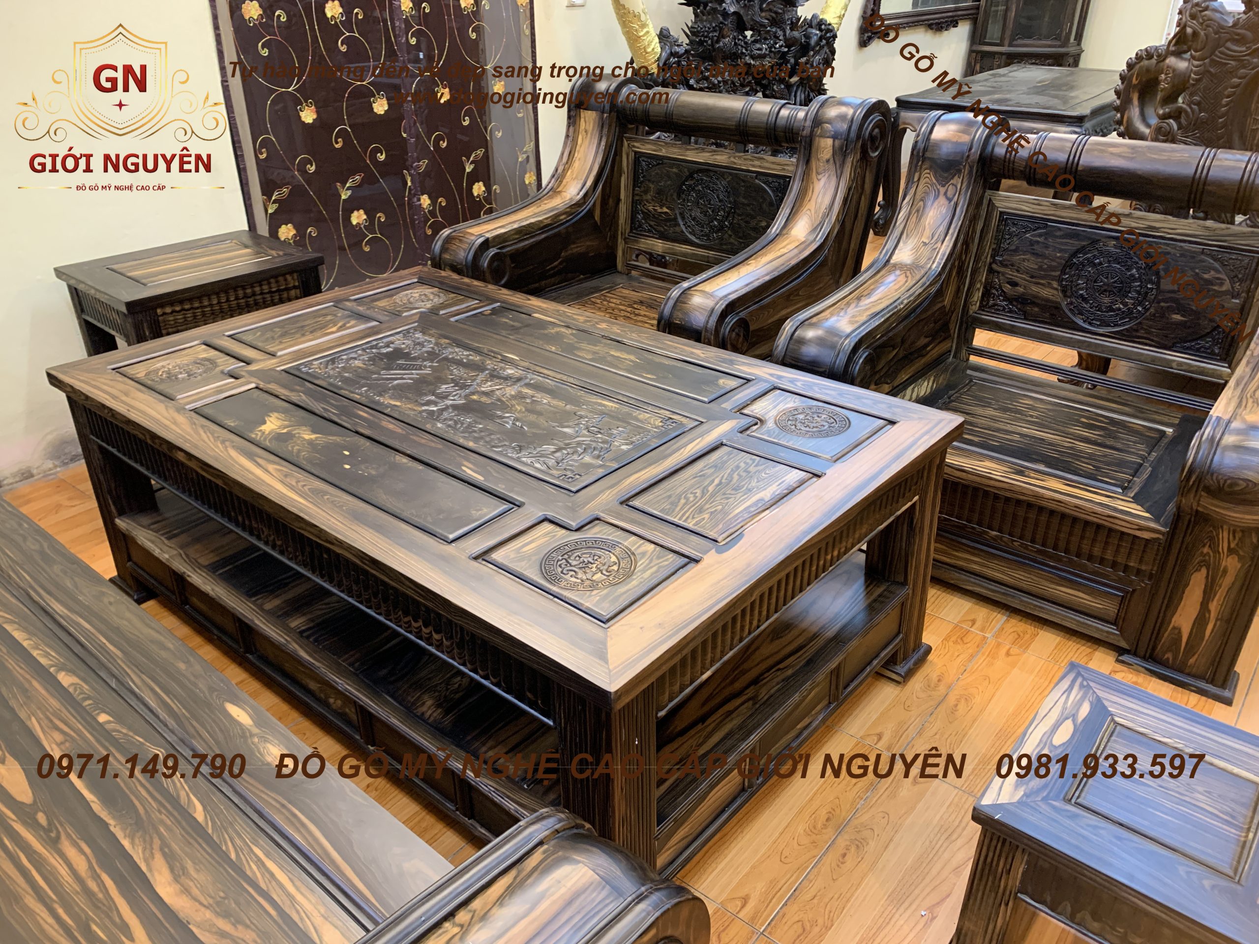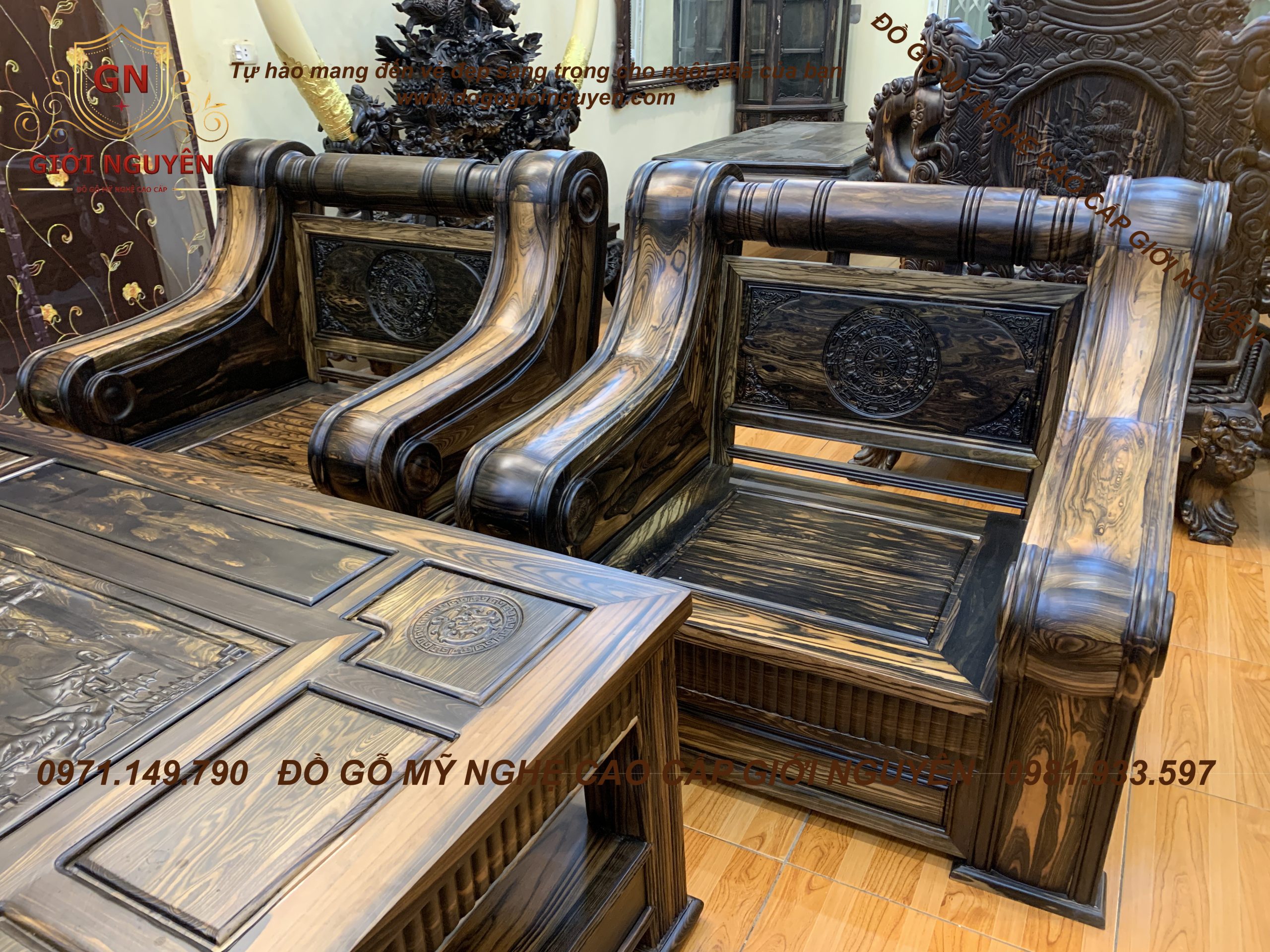 Bộ bàn ghế tời pháo gỗ mun hoa