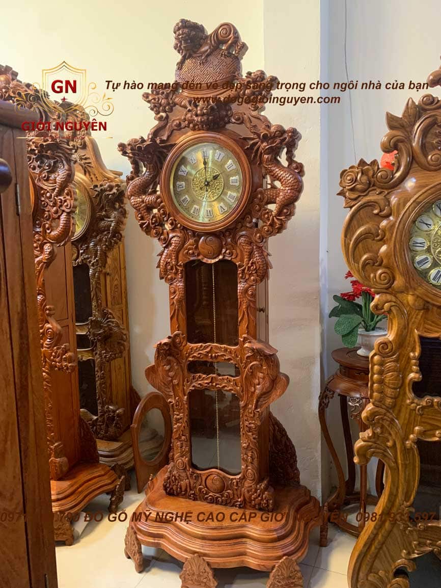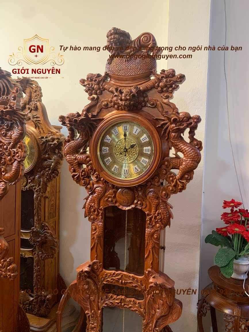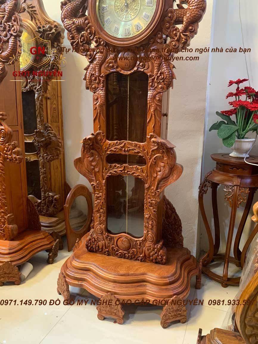 Đồng hồ cây tứ linh gỗ gõ đỏ 2m07
