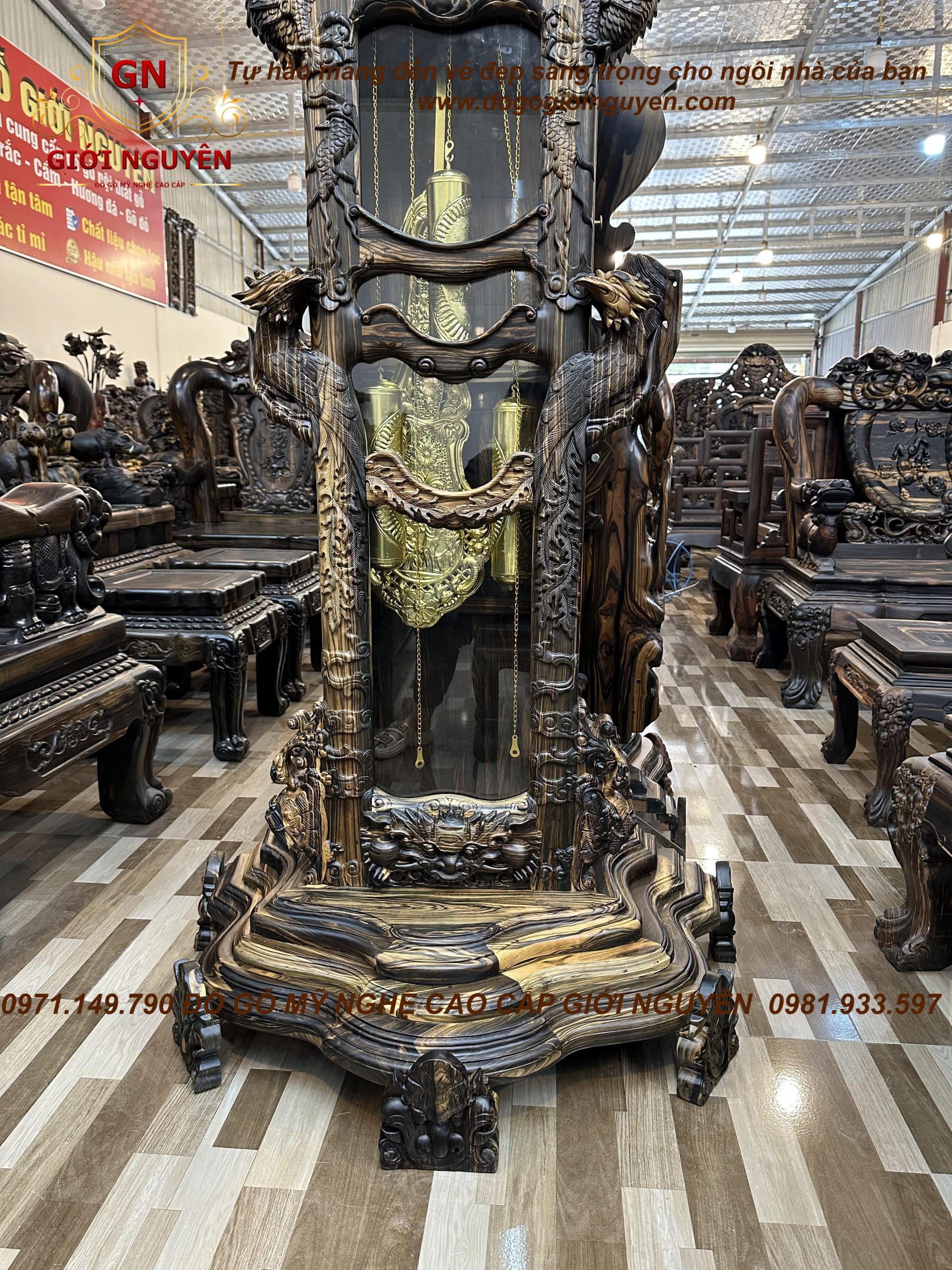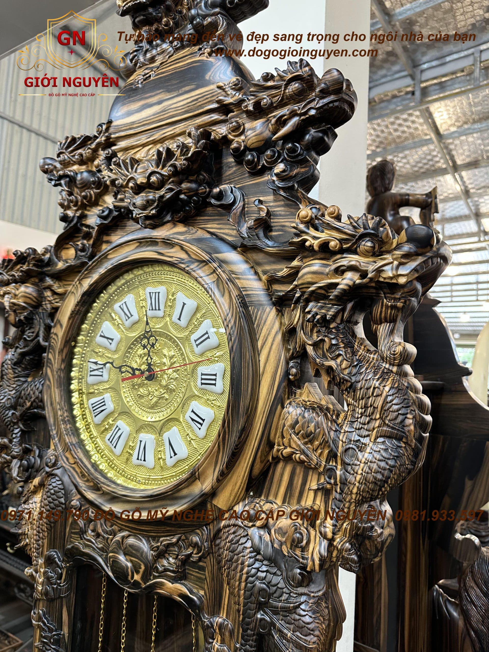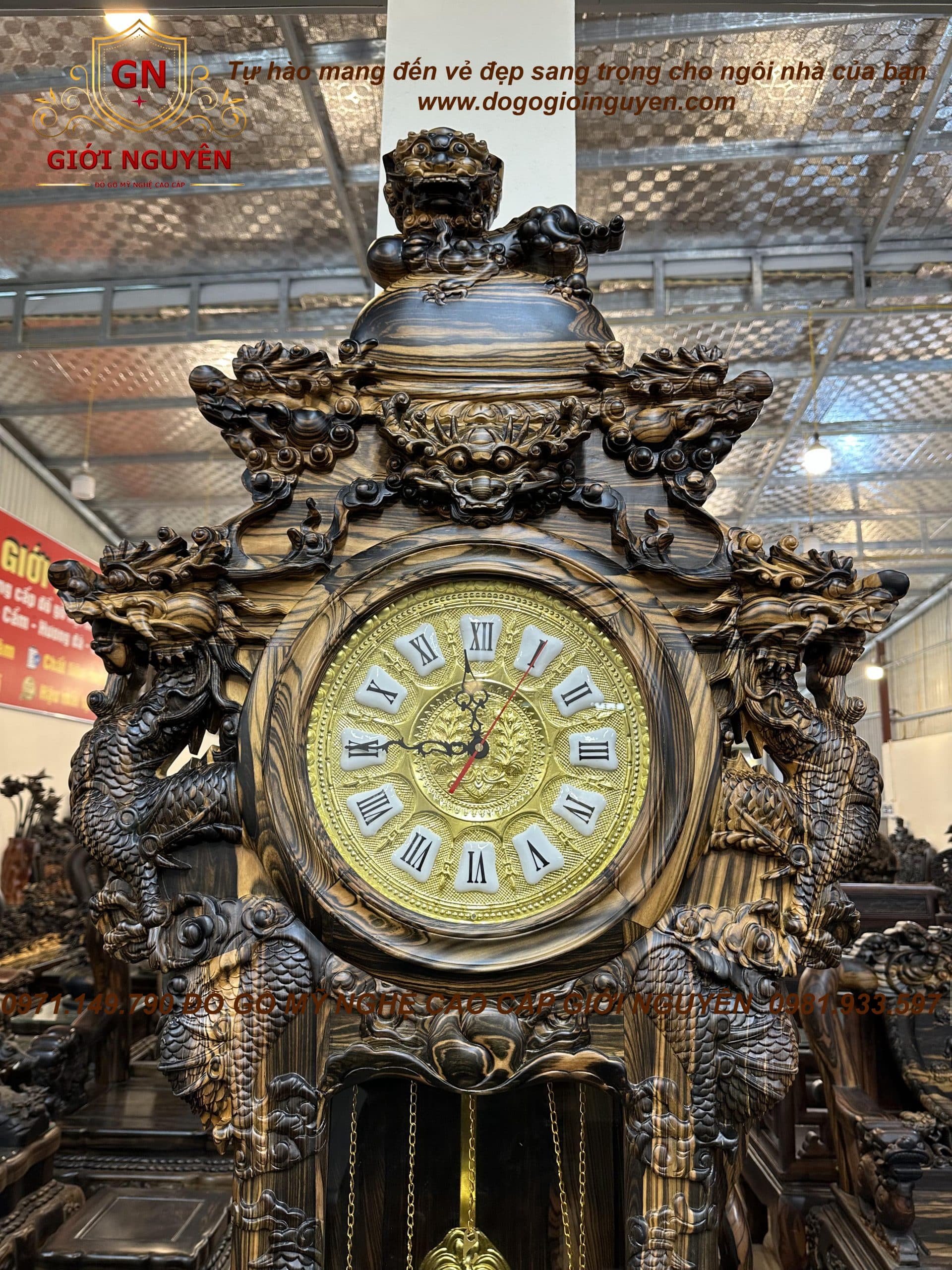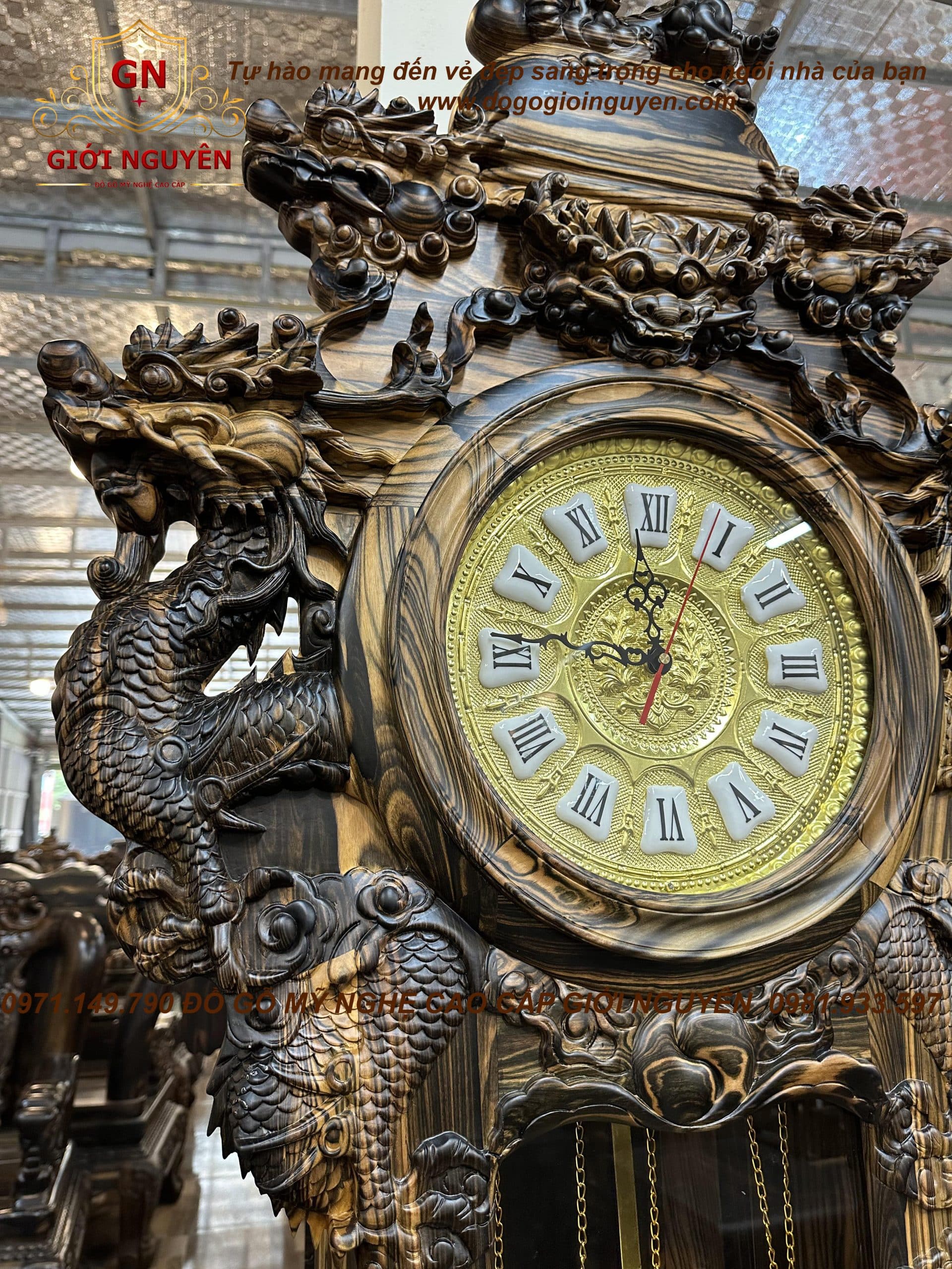 Đồng hồ tứ linh gỗ mun hoa 2m3