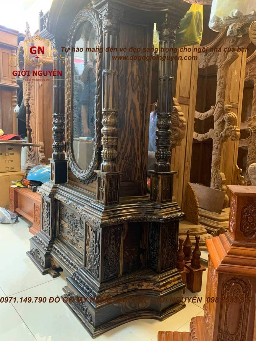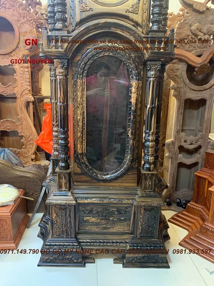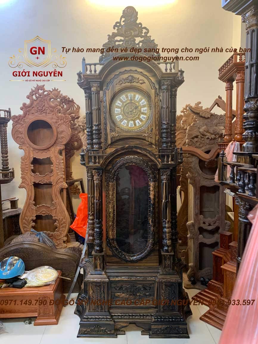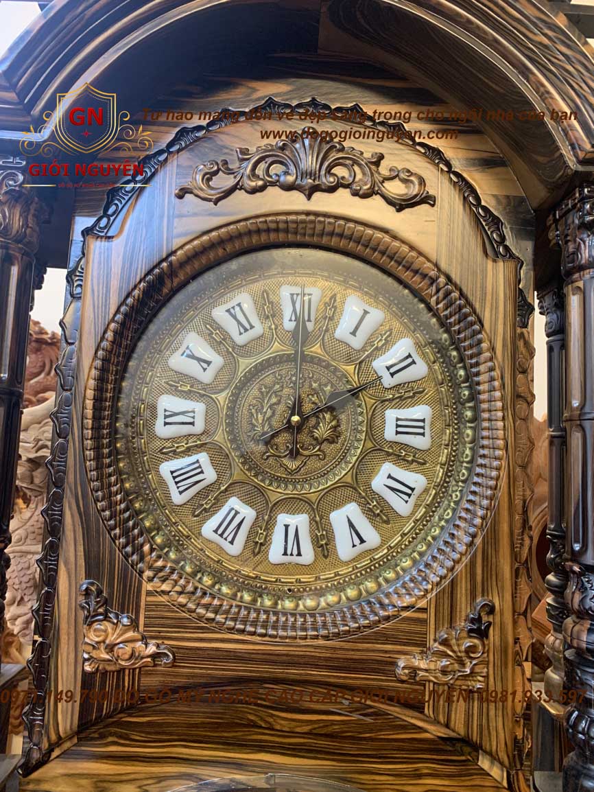 Đồng hồ tứ trụ cao gỗ mun hoa 2m3 mặt đồng giả cổ