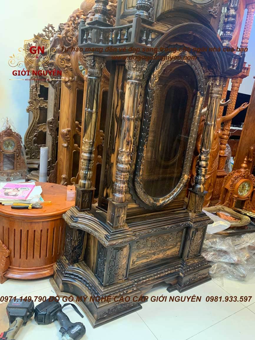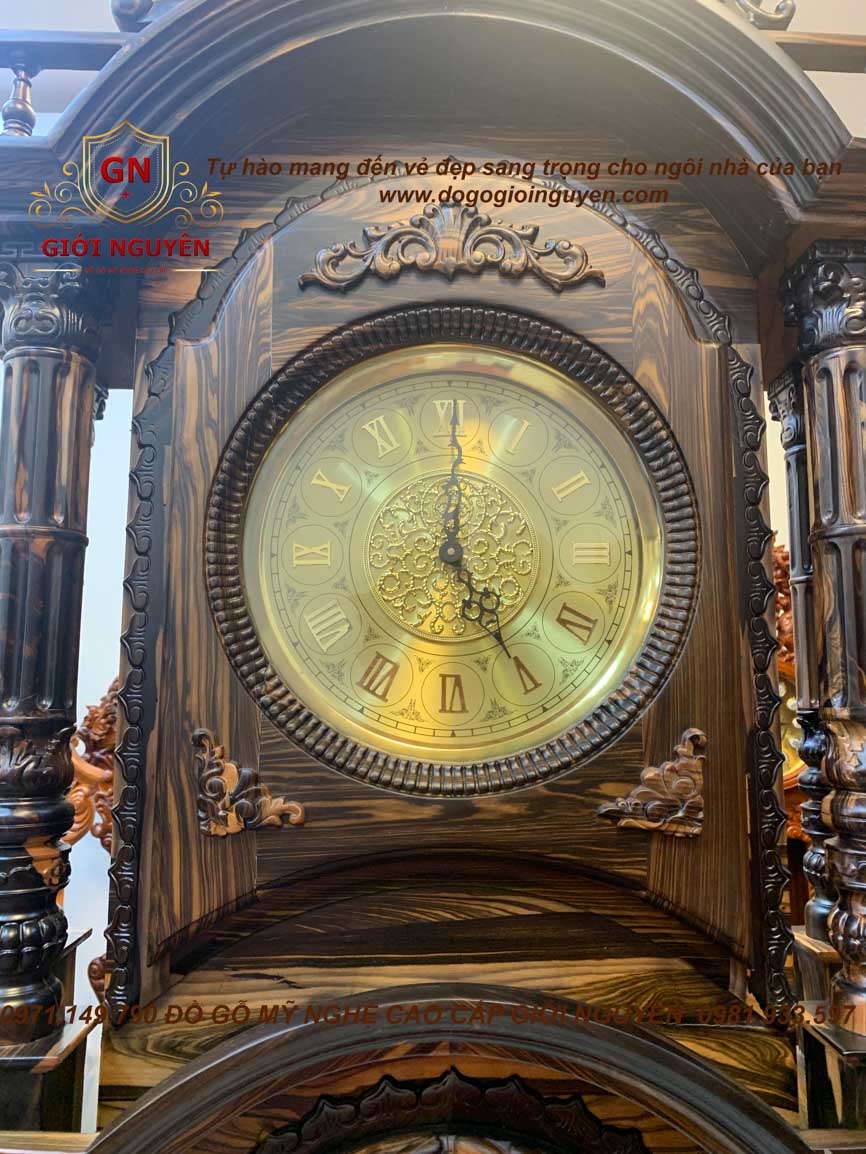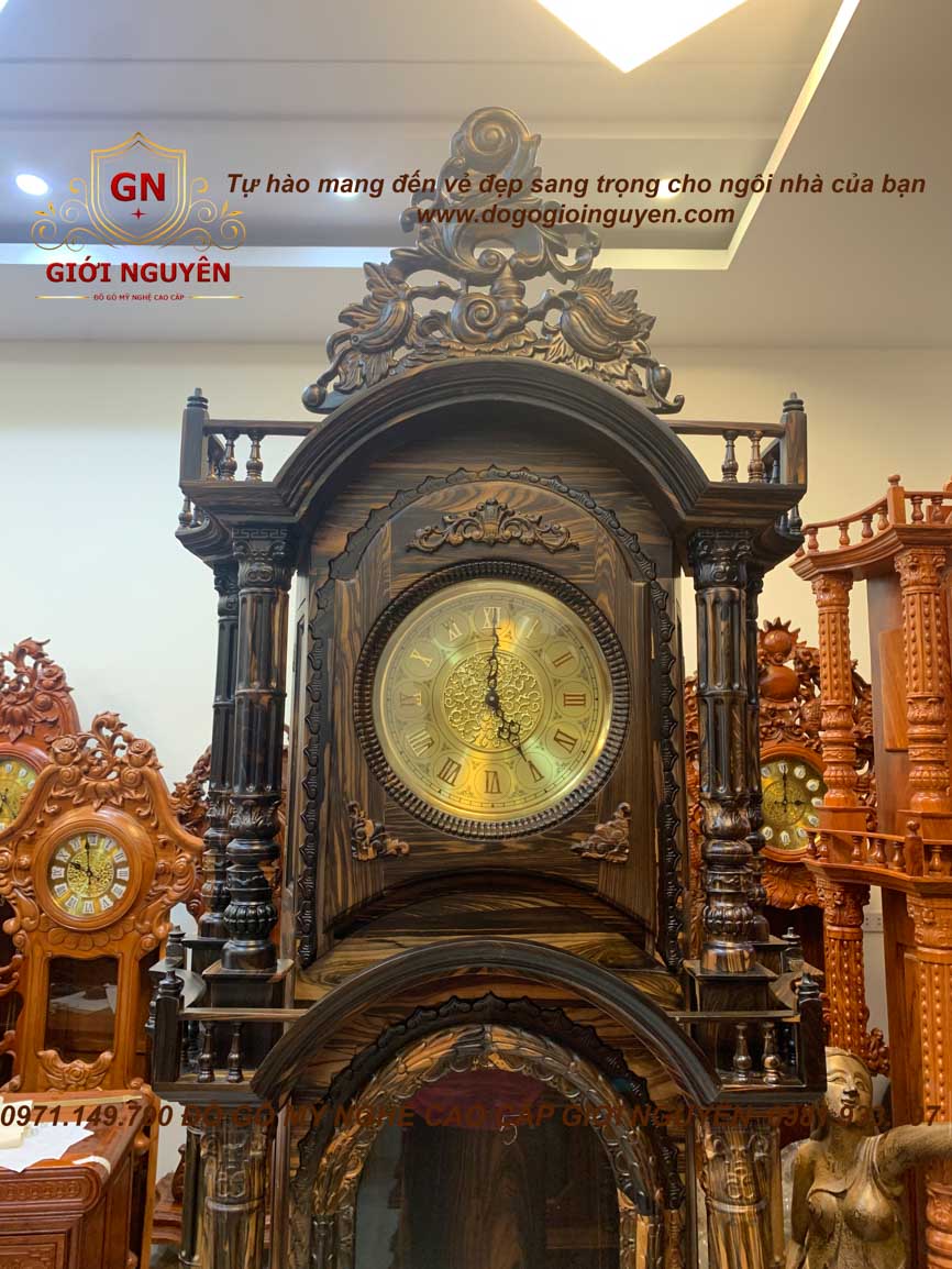 Đồng hồ tứ trụ gỗ mun hoa cao 2m4