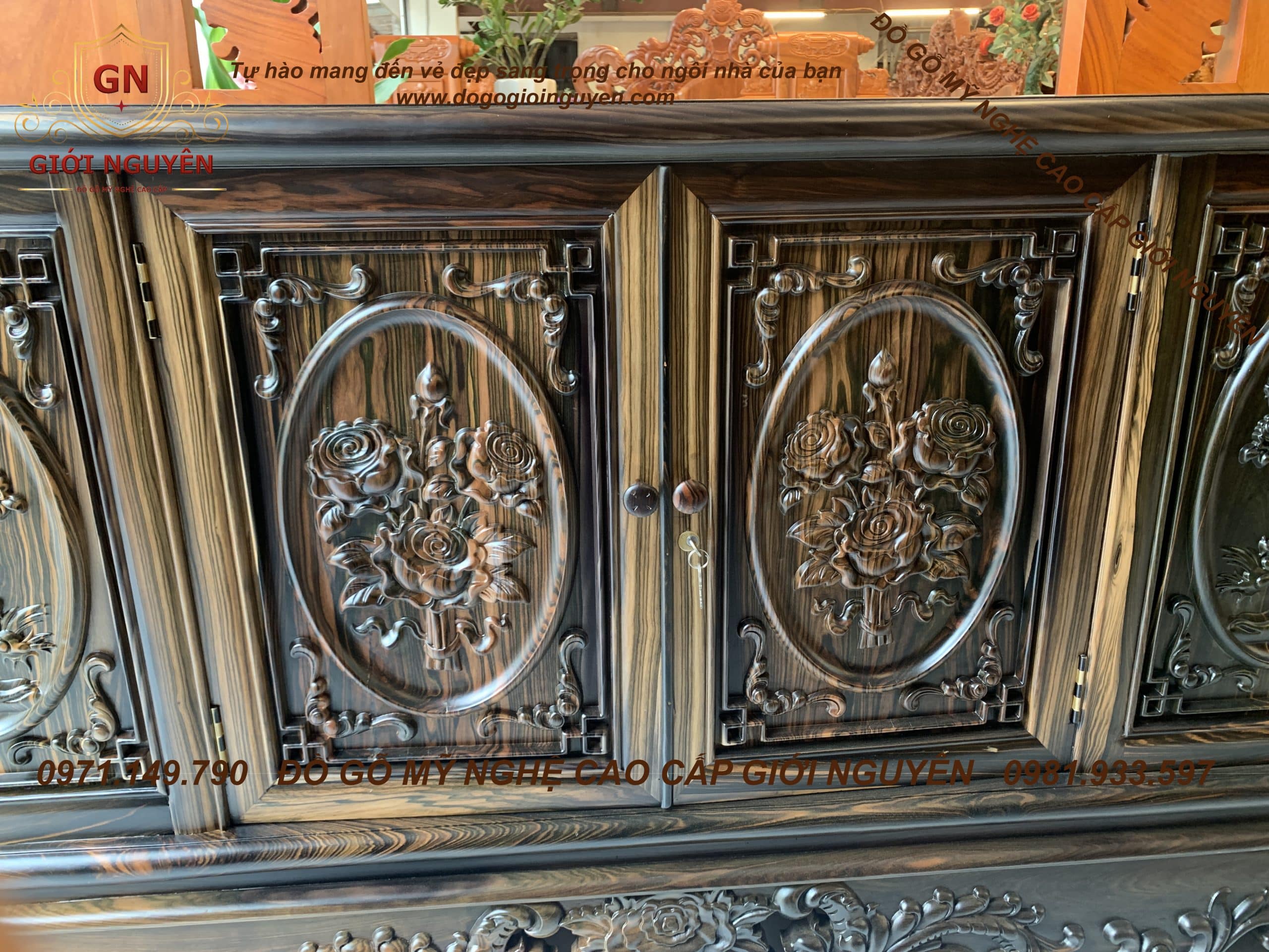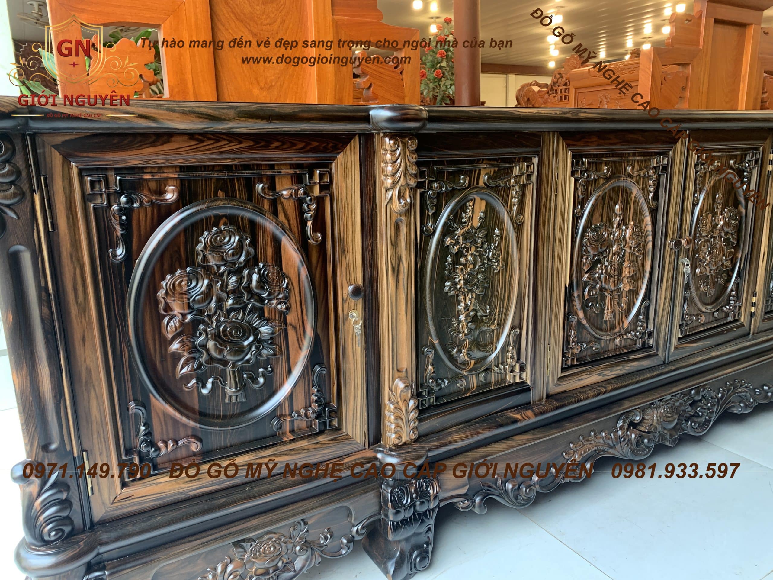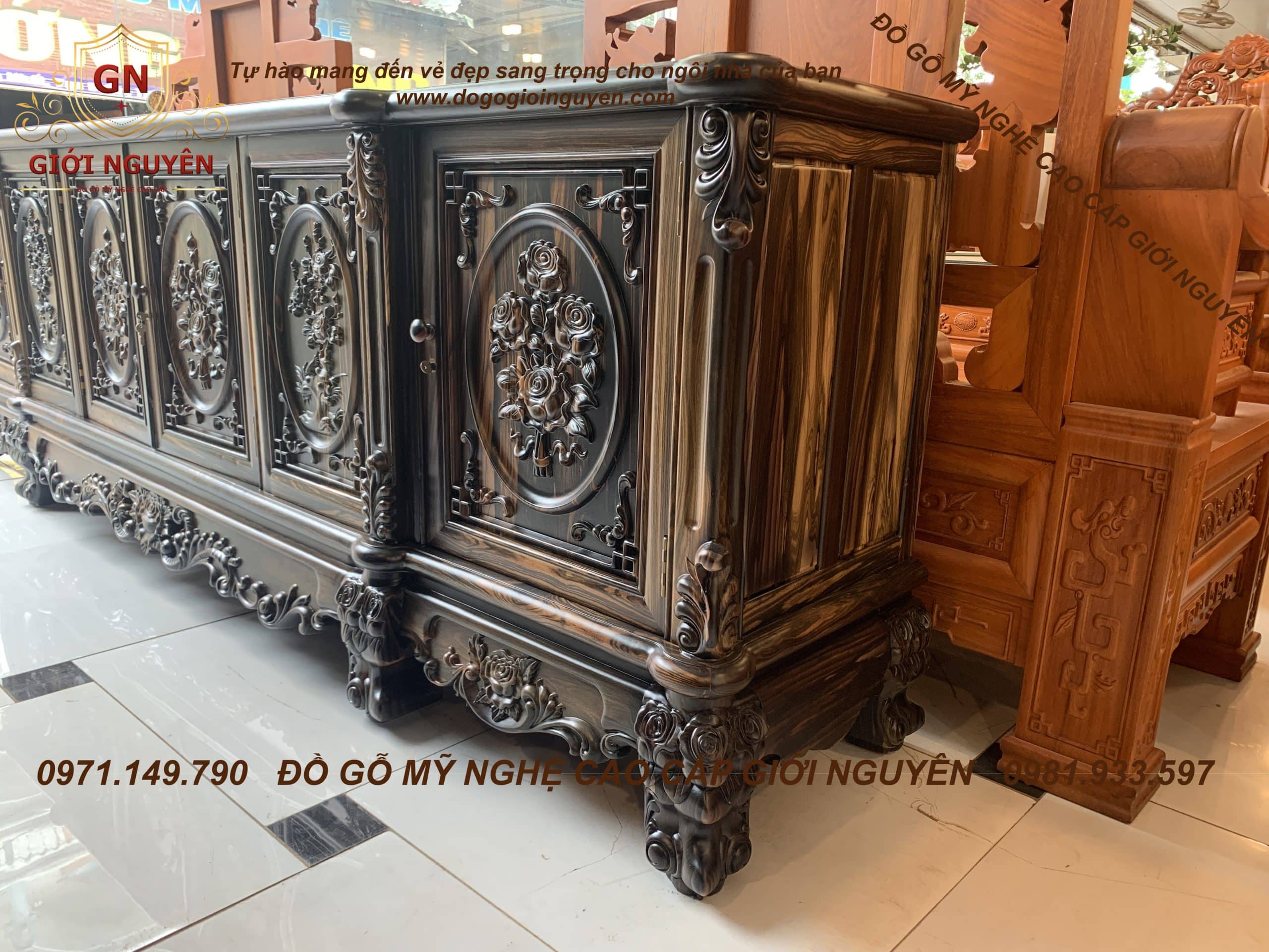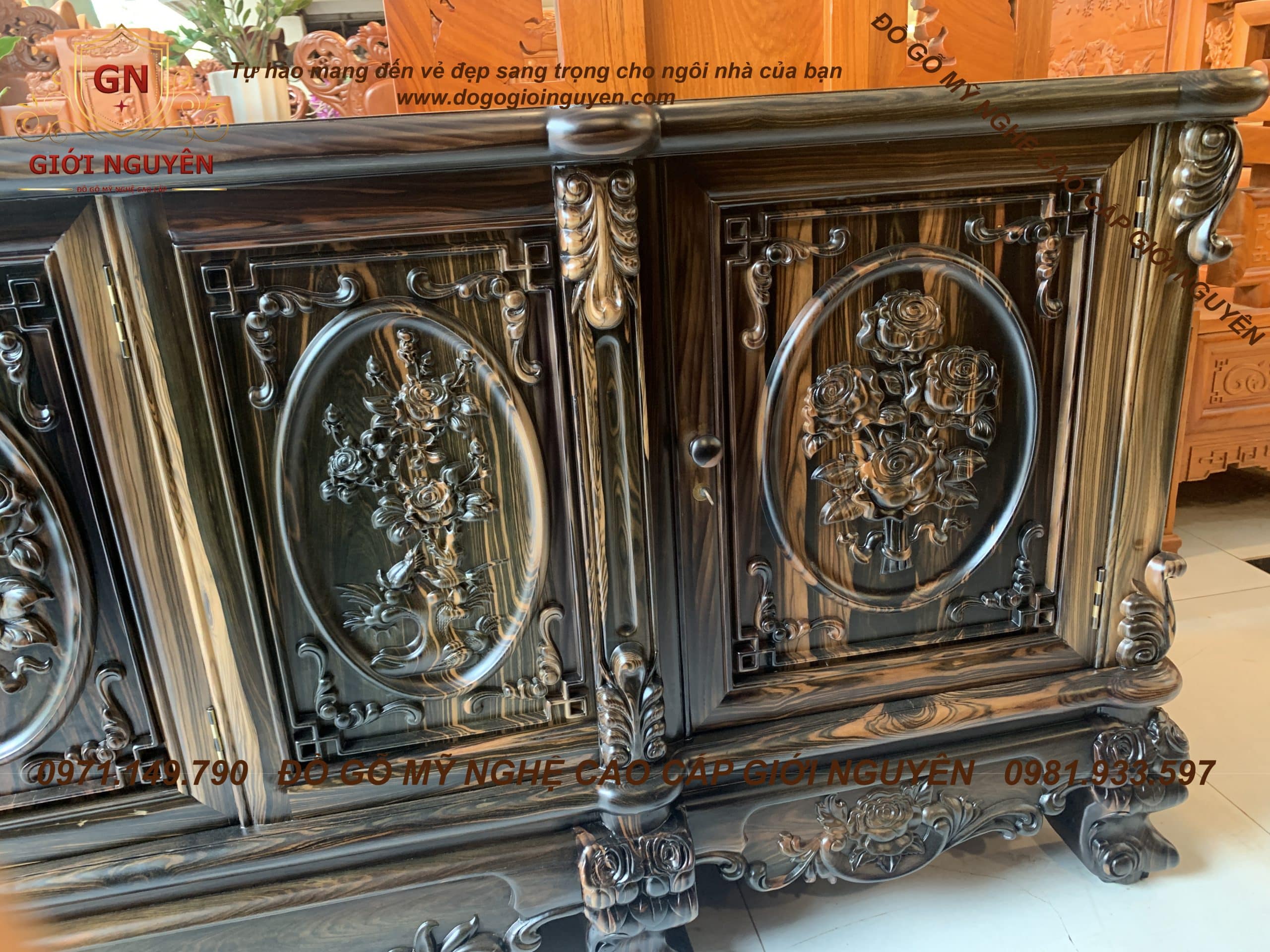 Kệ tivi Hoa hồng gỗ Mun hoa