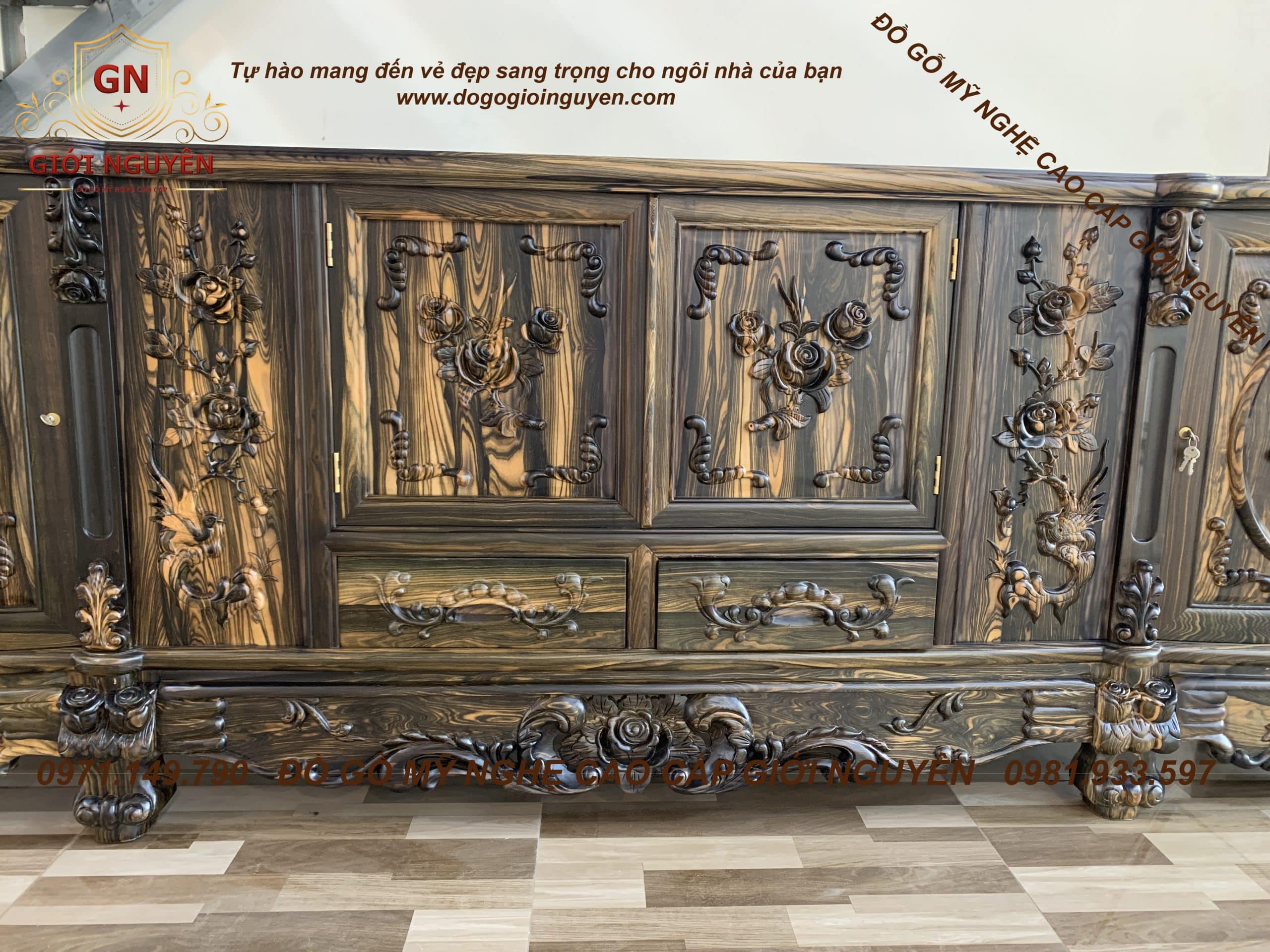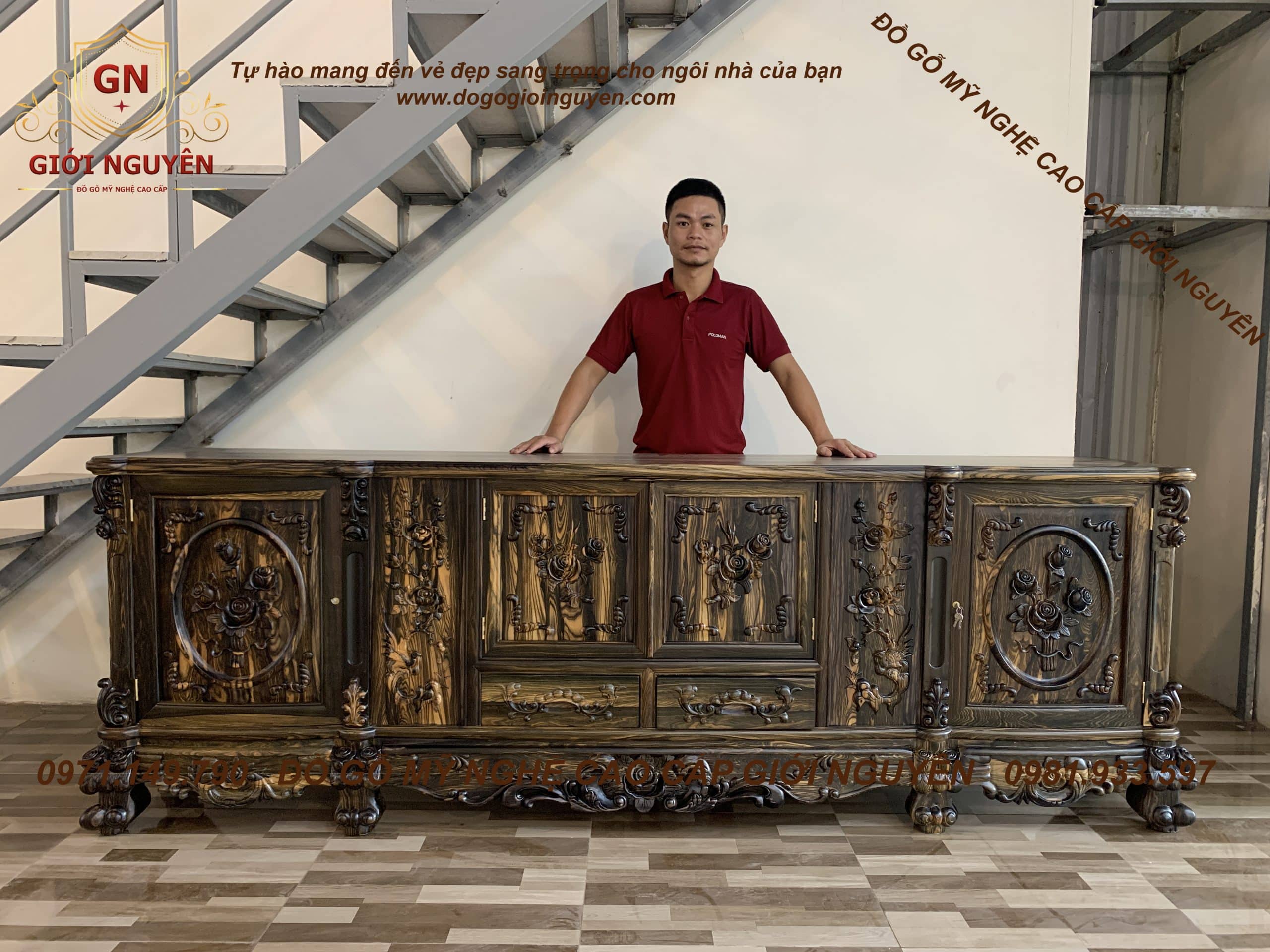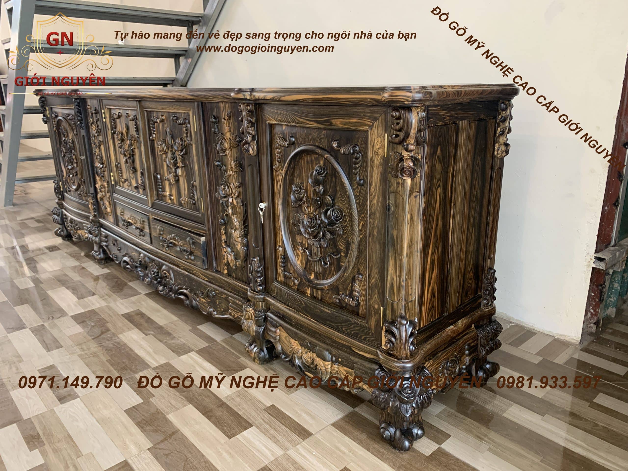 Kệ tivi Hoa Hồng gỗ Mun hoa mẫu mới nhất