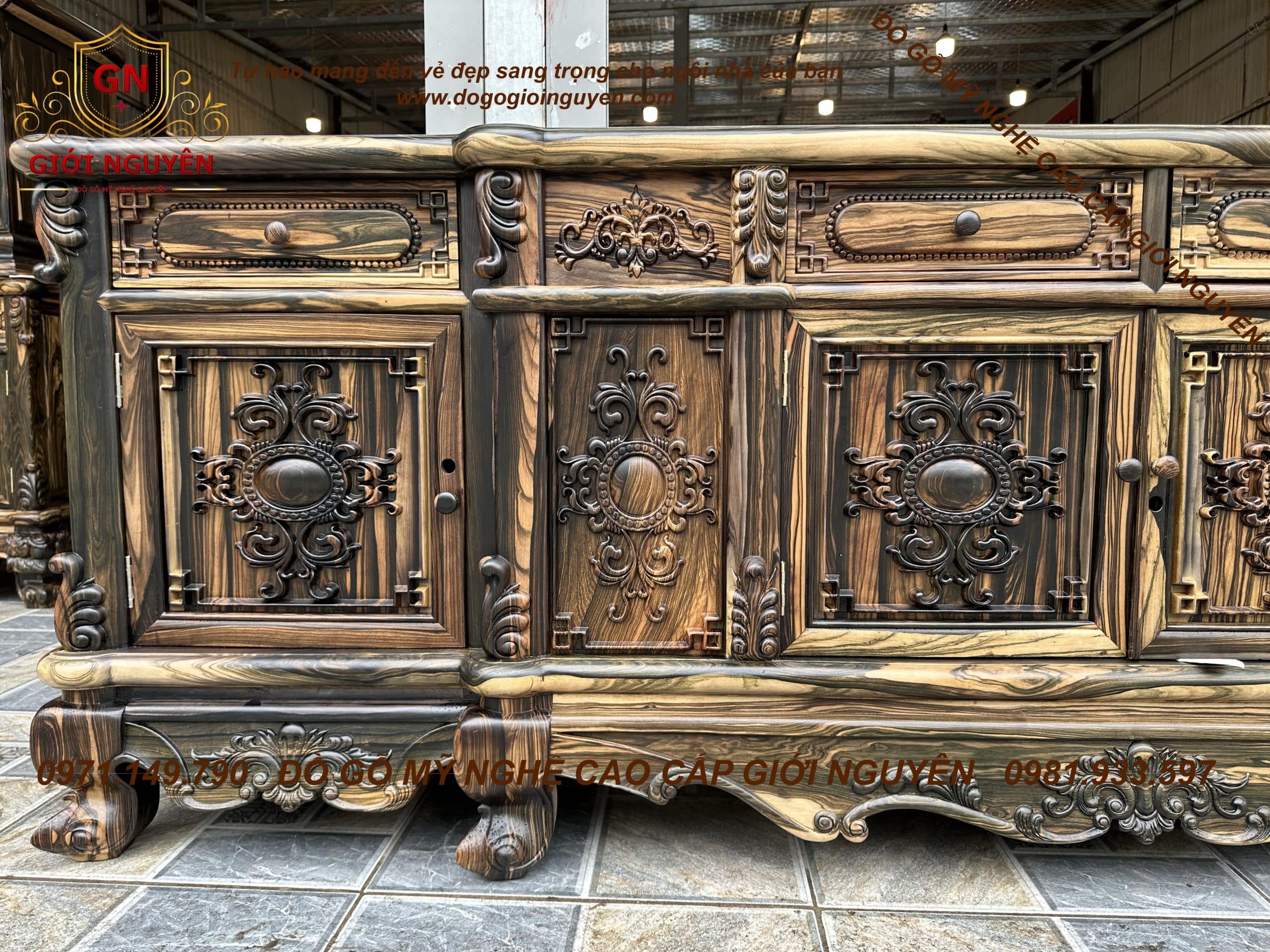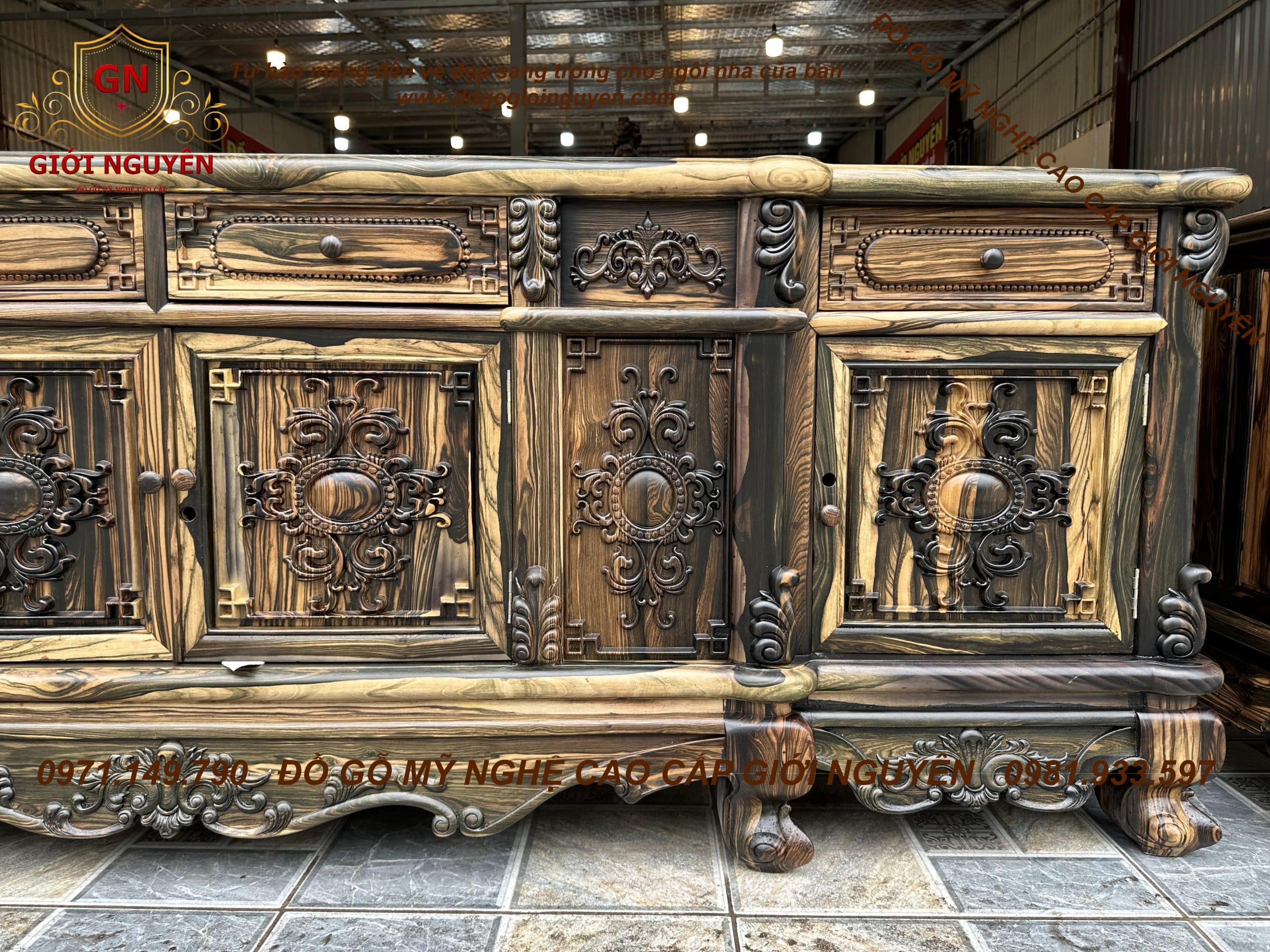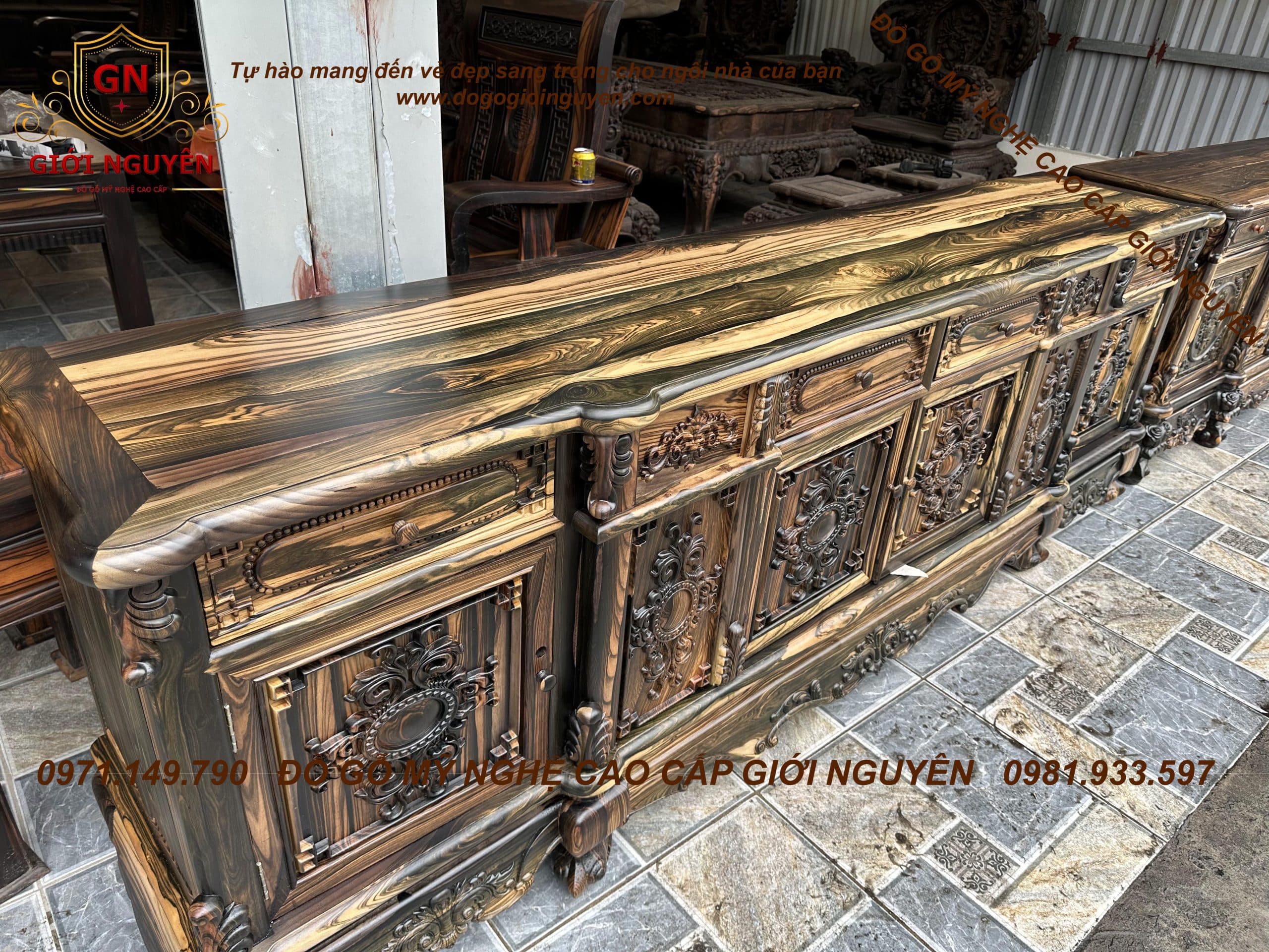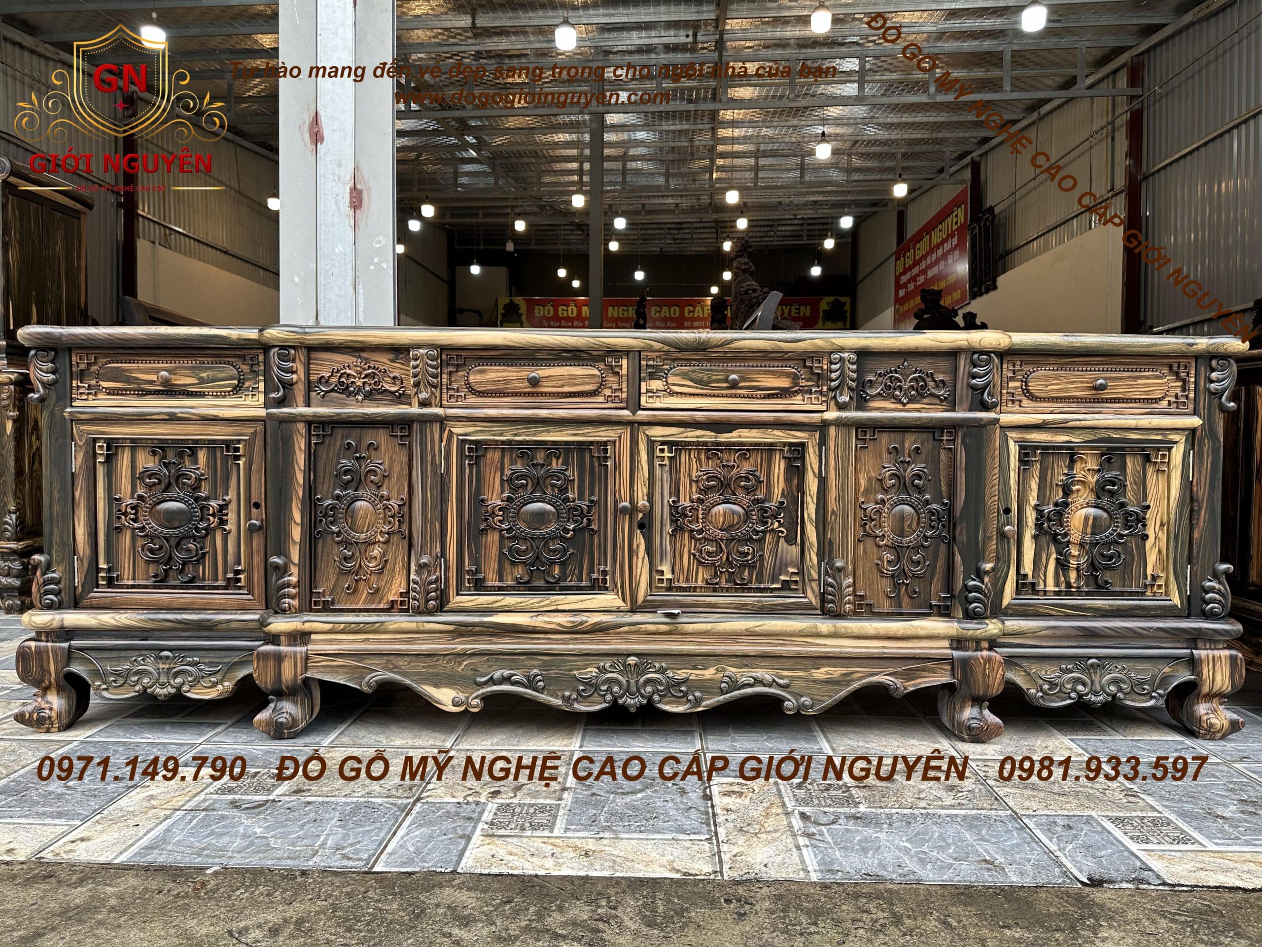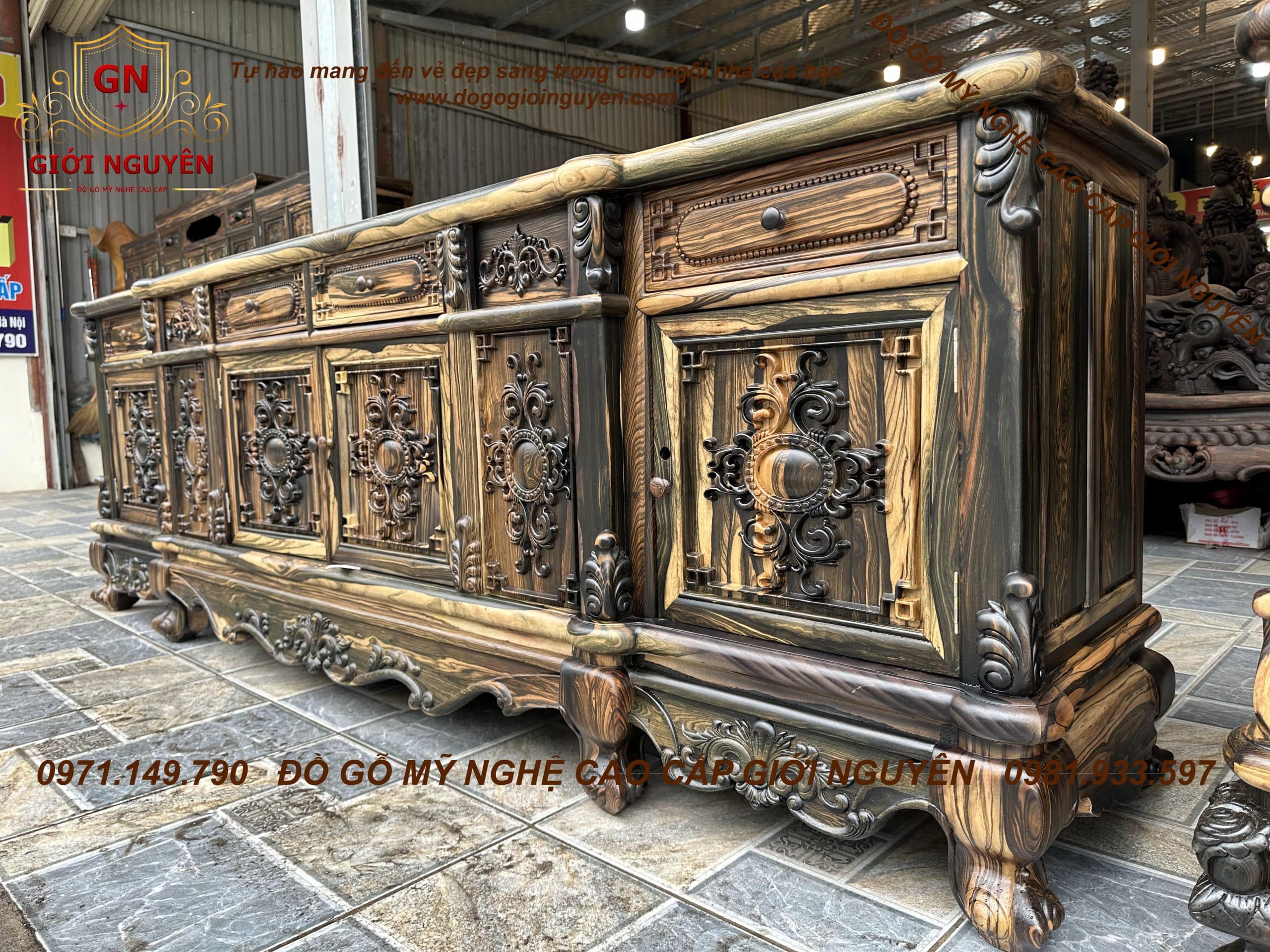 Kệ tivi hoa lá tây gỗ mun hoa 2m6