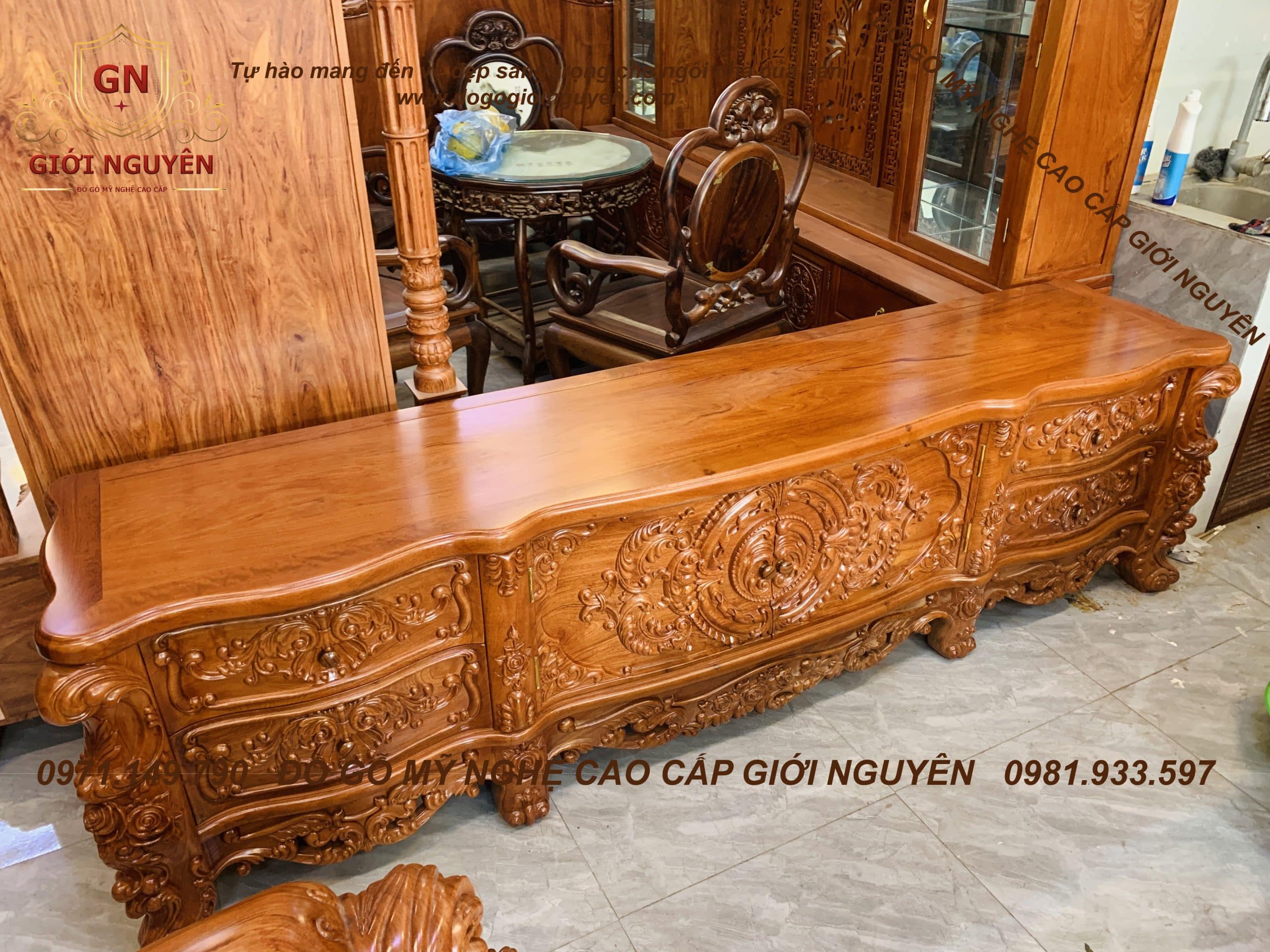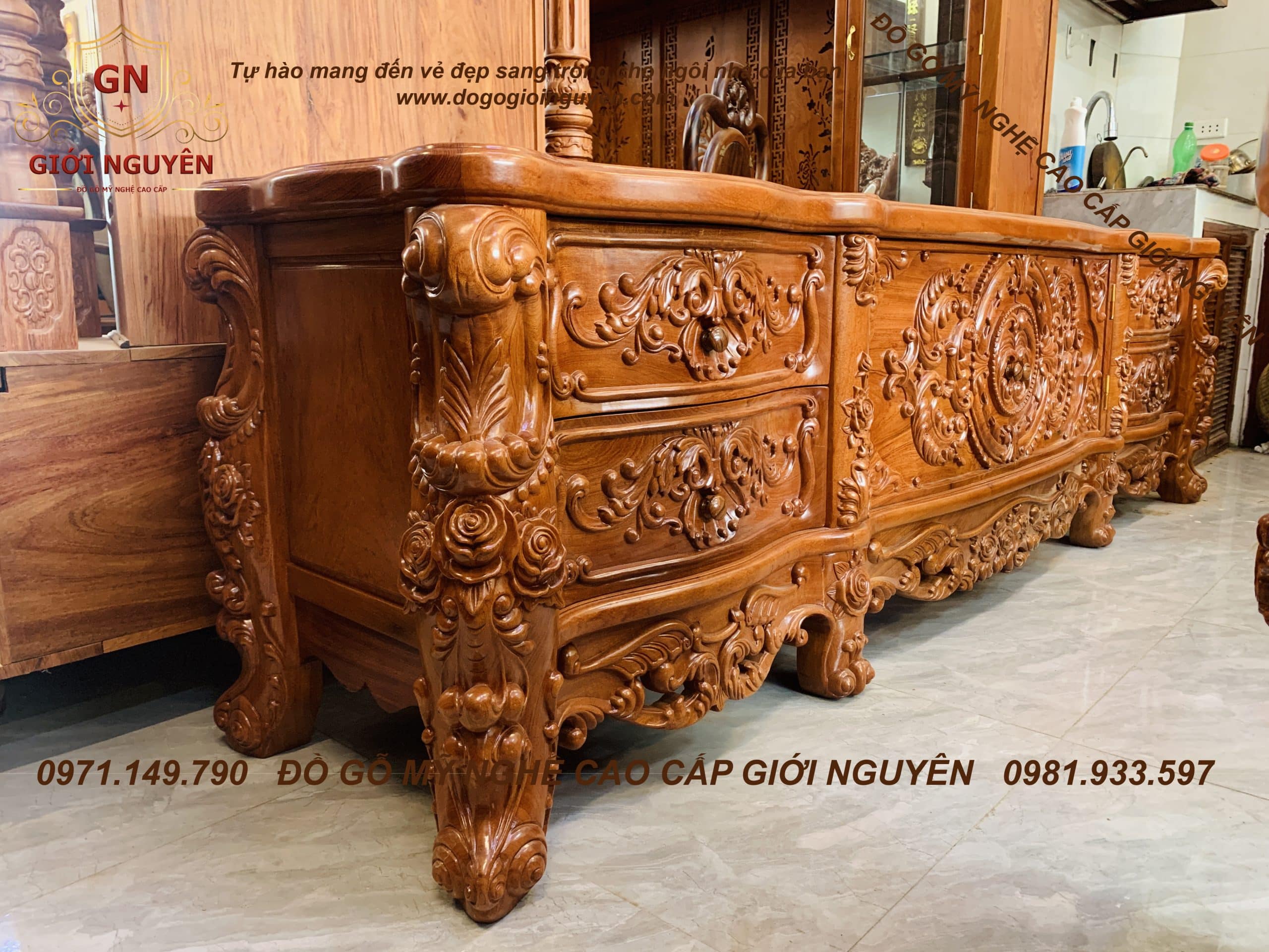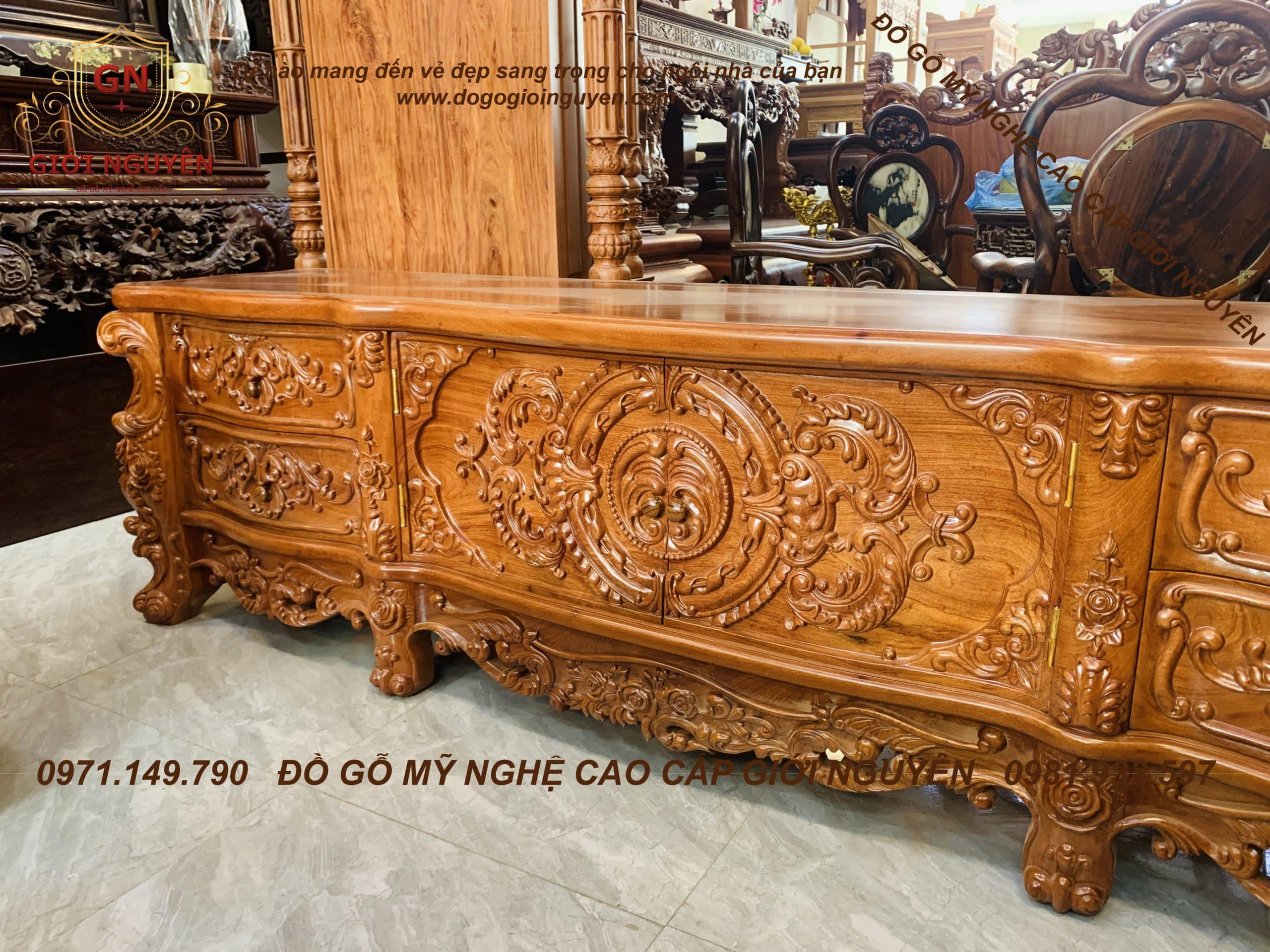 Kệ tivi Hoàng gia Louis – gỗ Hương đá