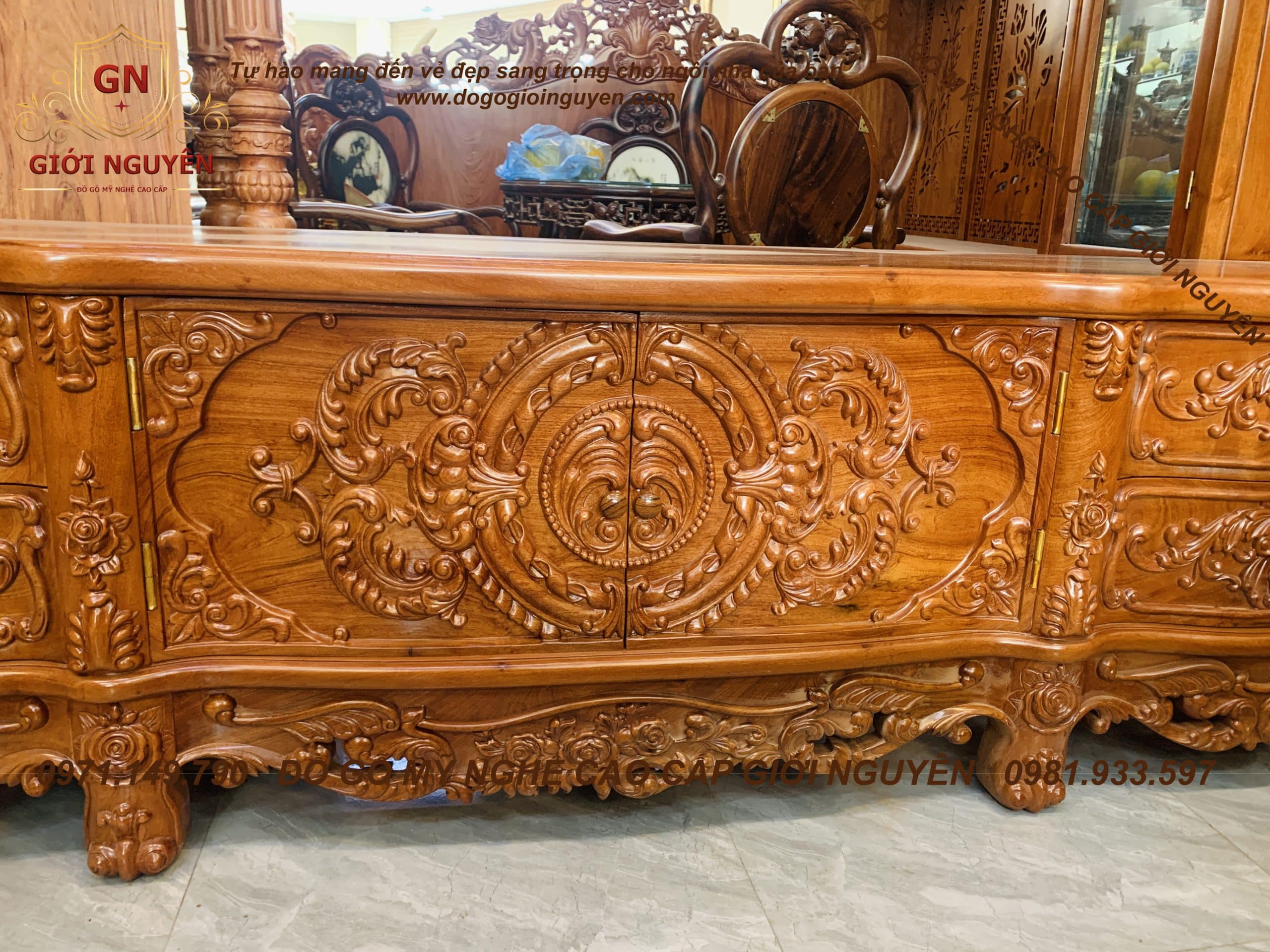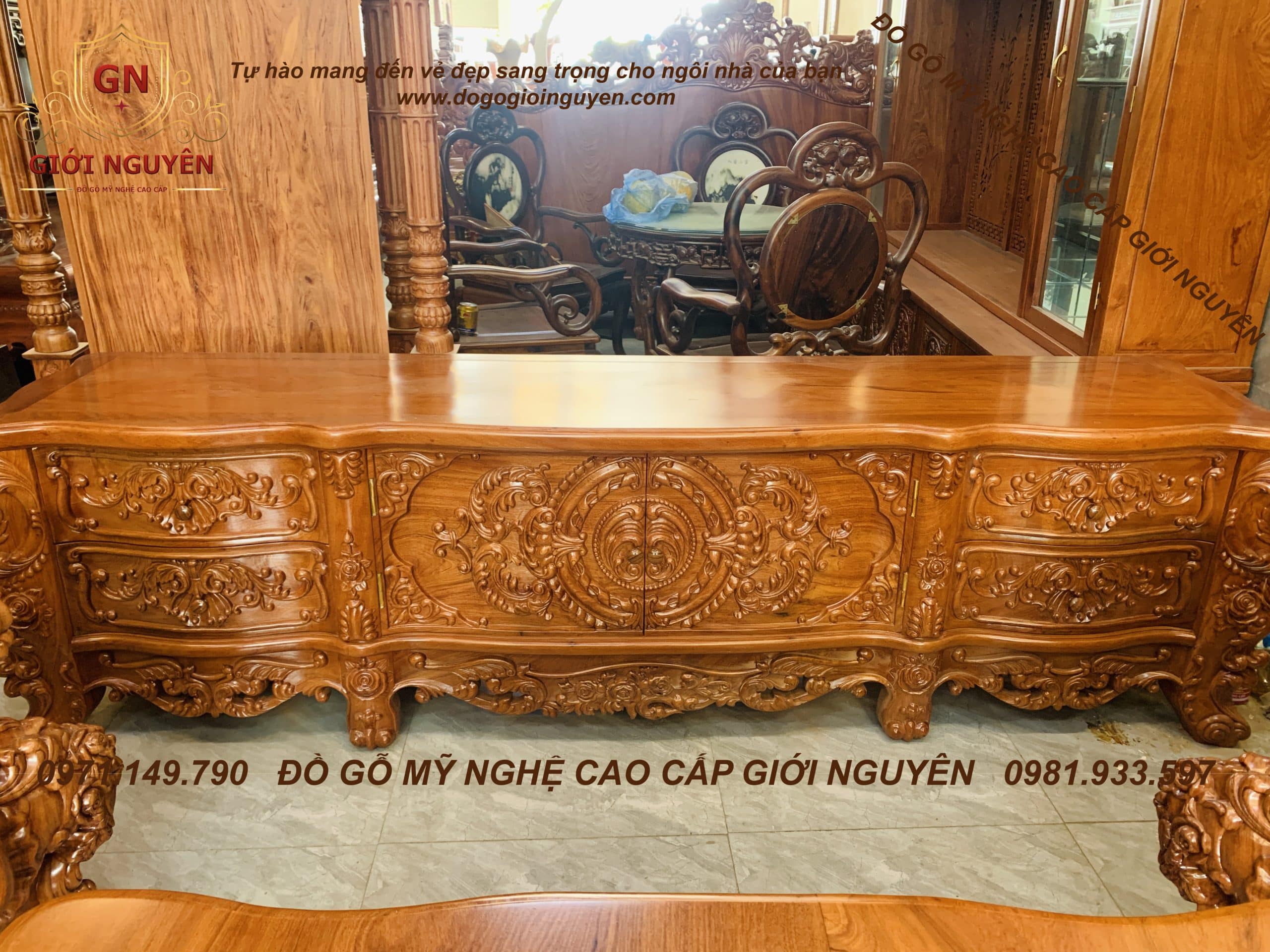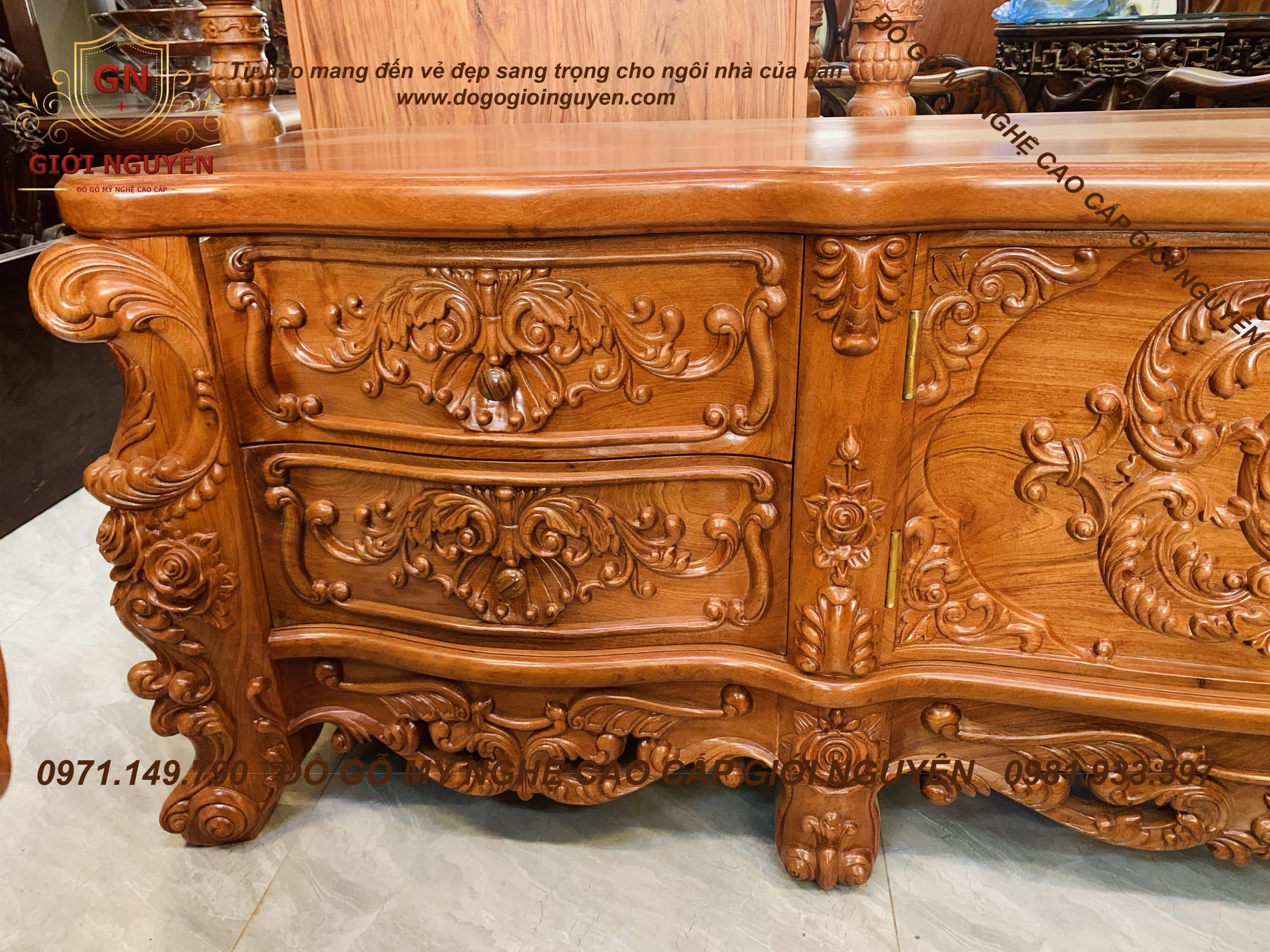 Kệ tivi Hoàng gia Louis – gỗ Hương đá