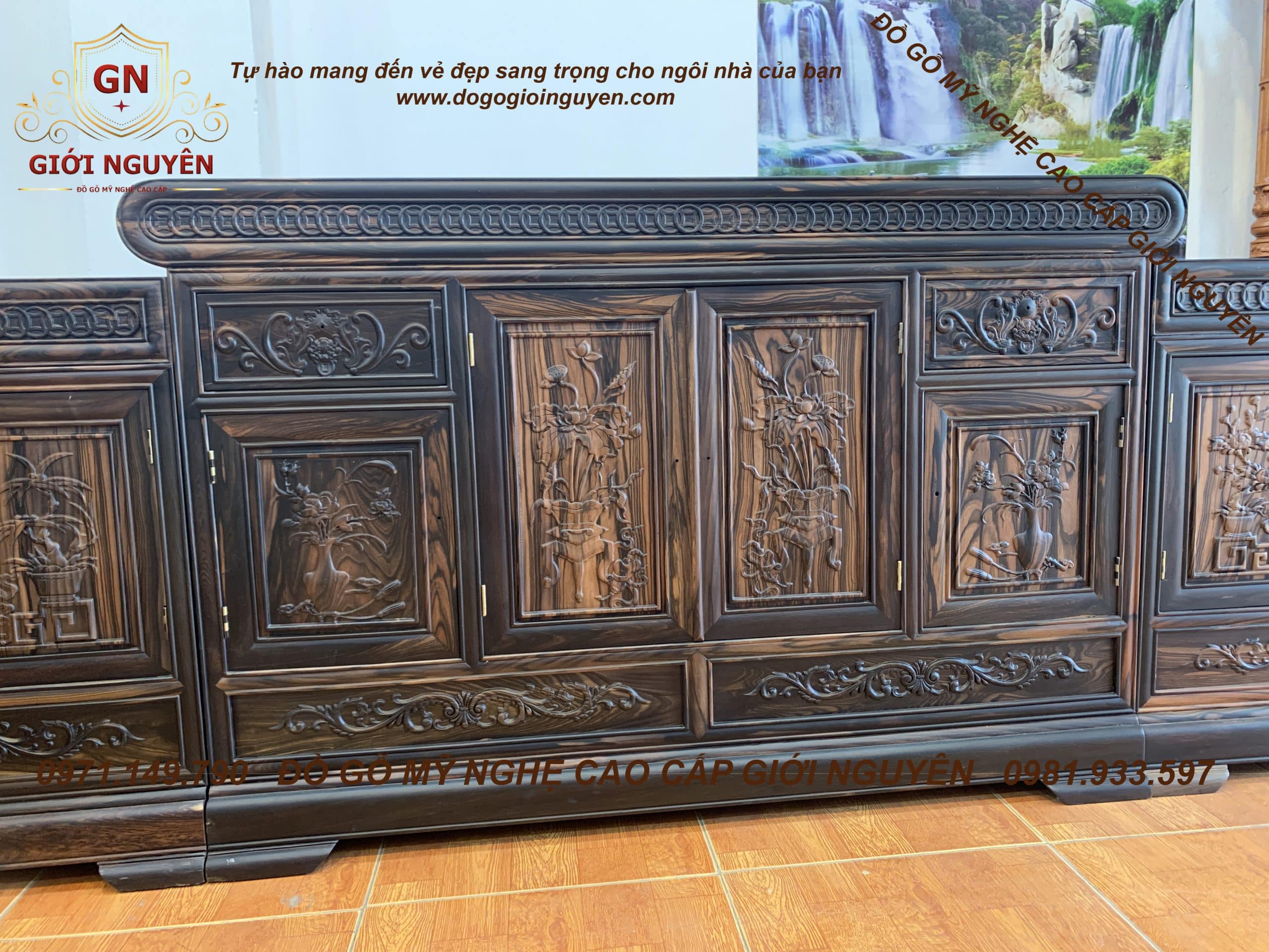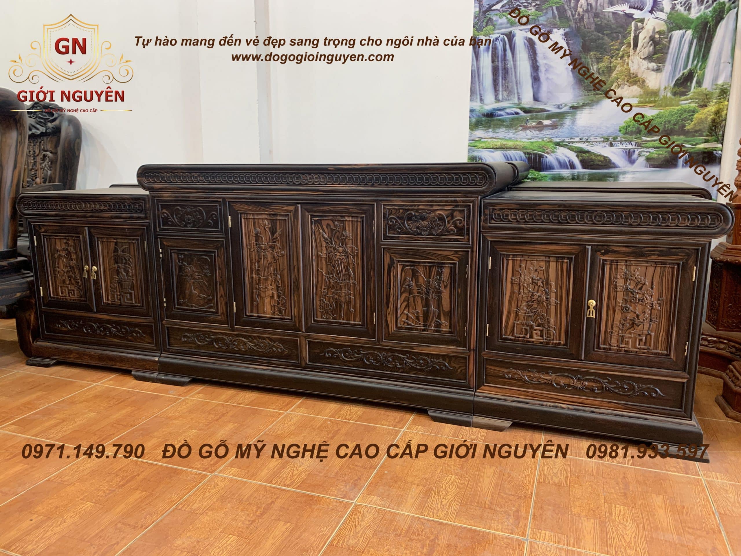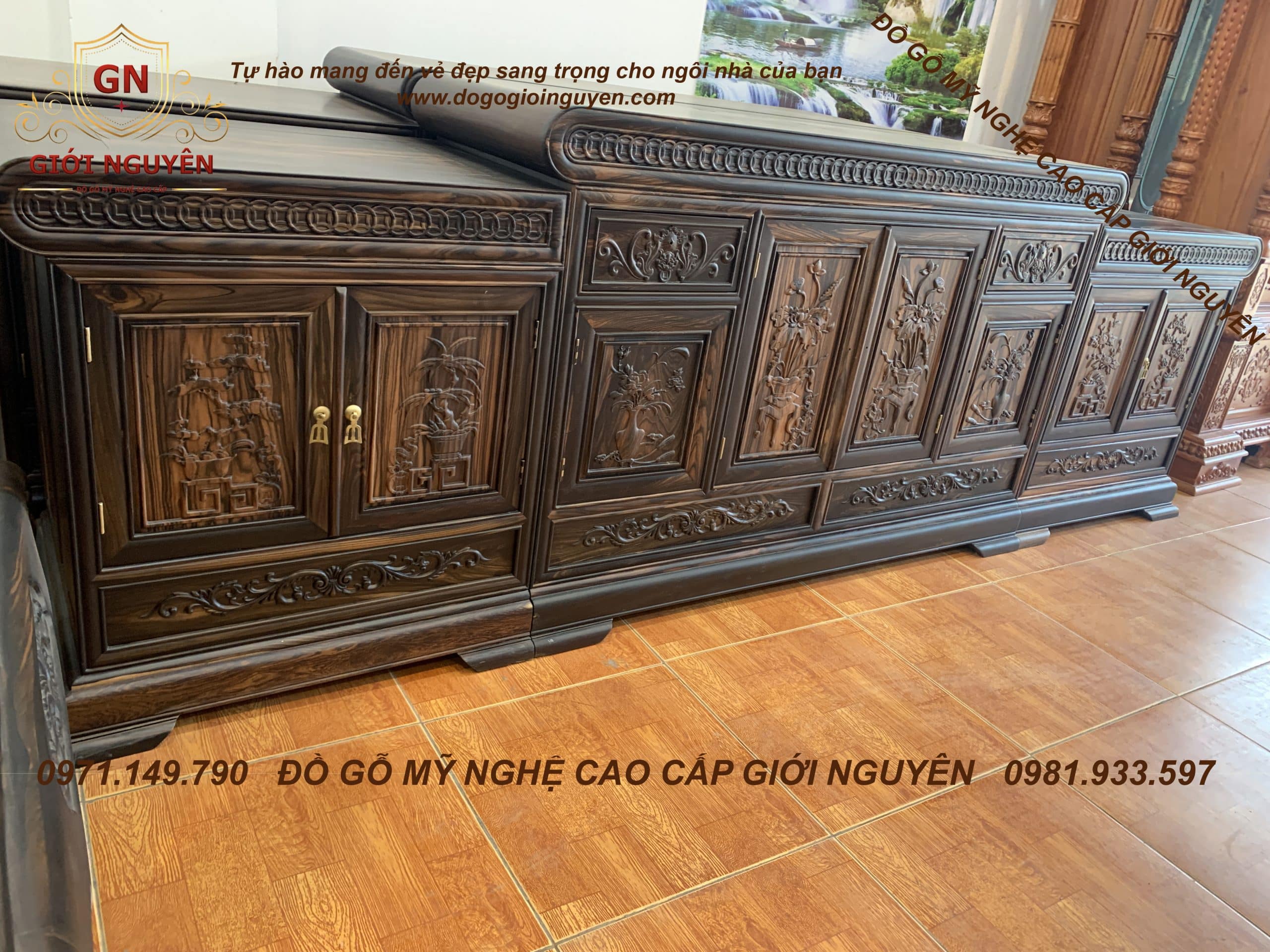 Kệ tivi mõ đồng tiền – gỗ mun hoa