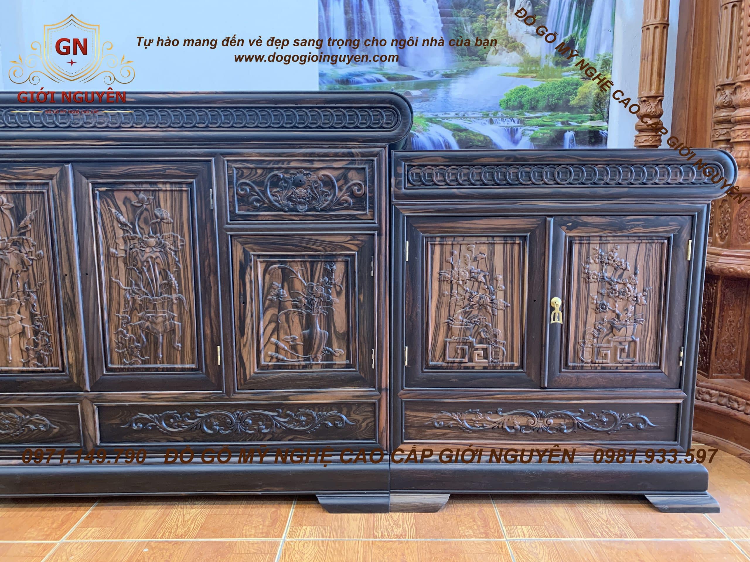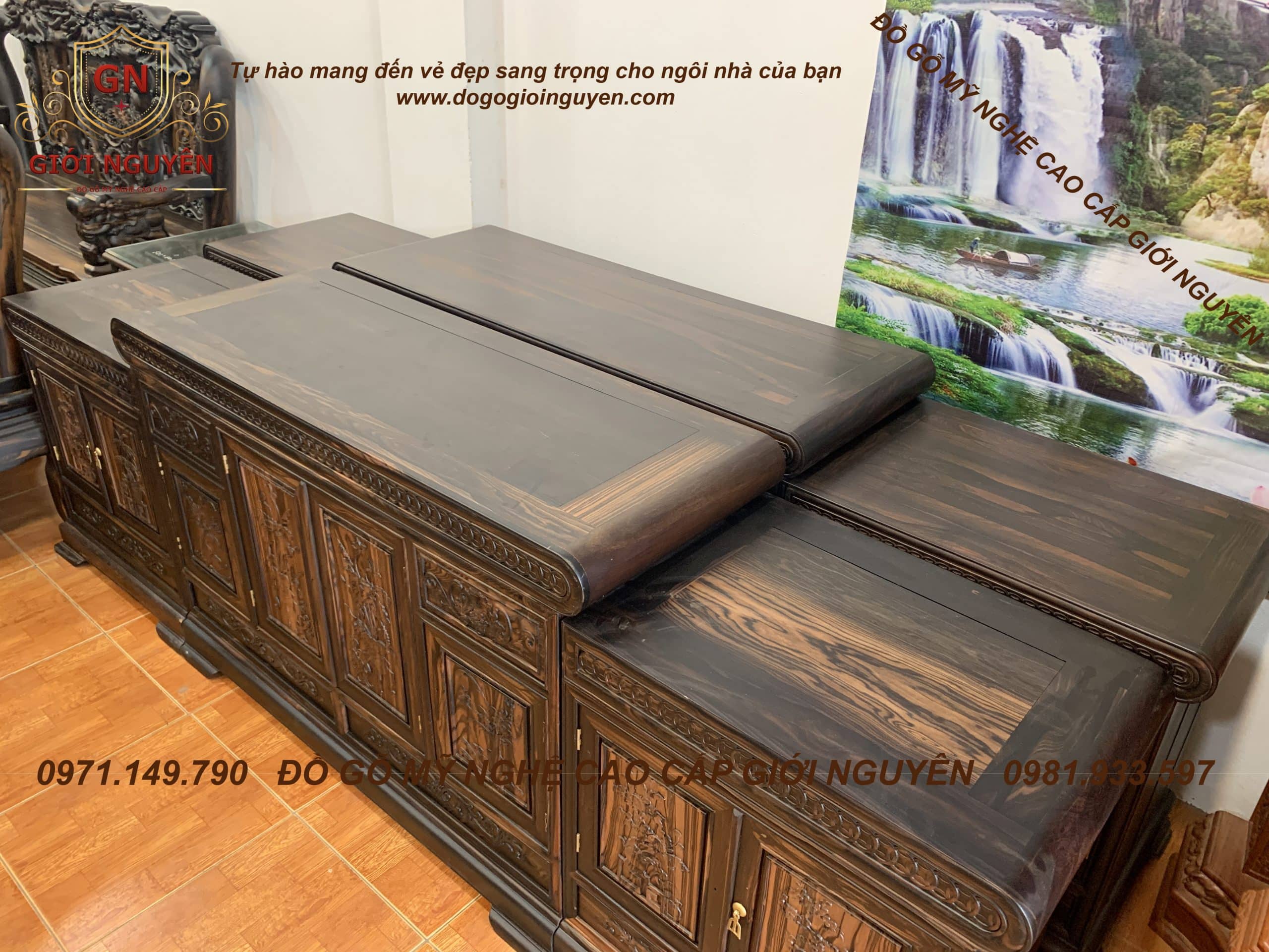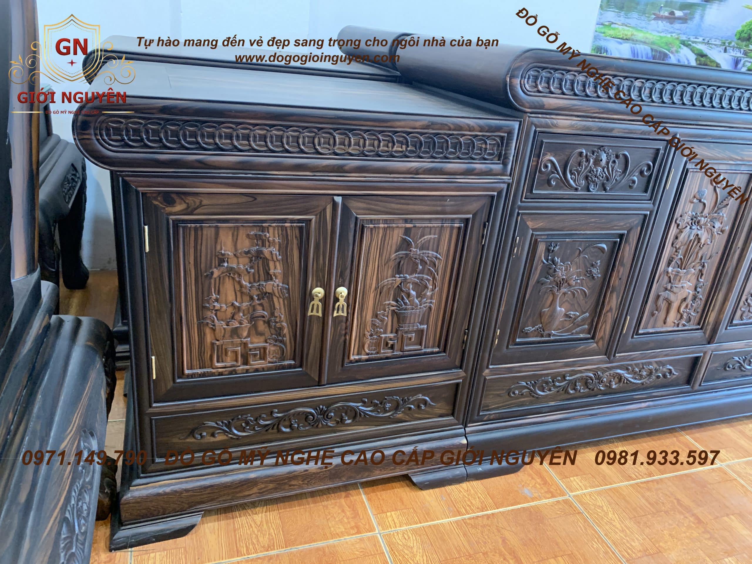 Kệ tivi mõ đồng tiền – gỗ mun hoa