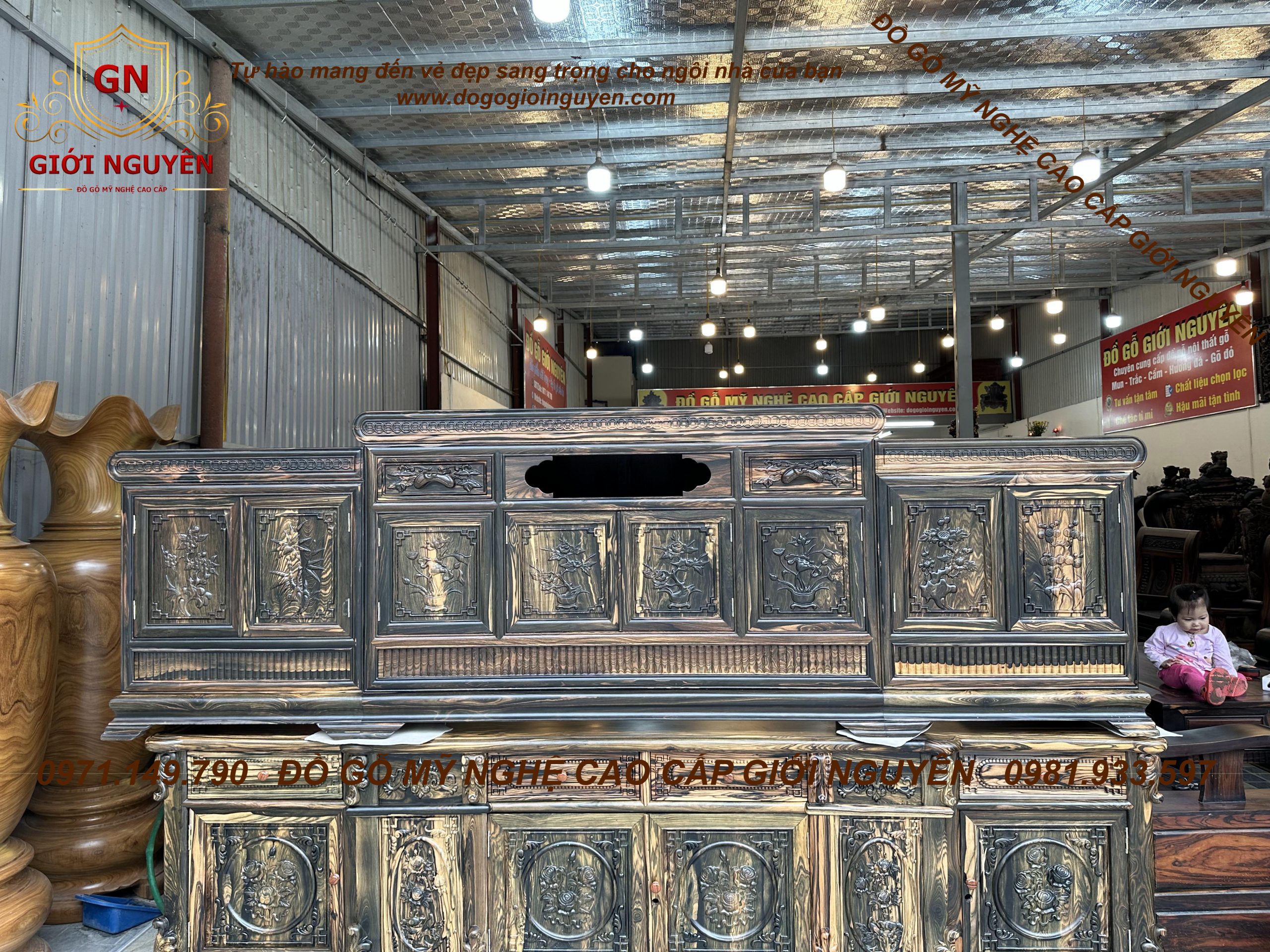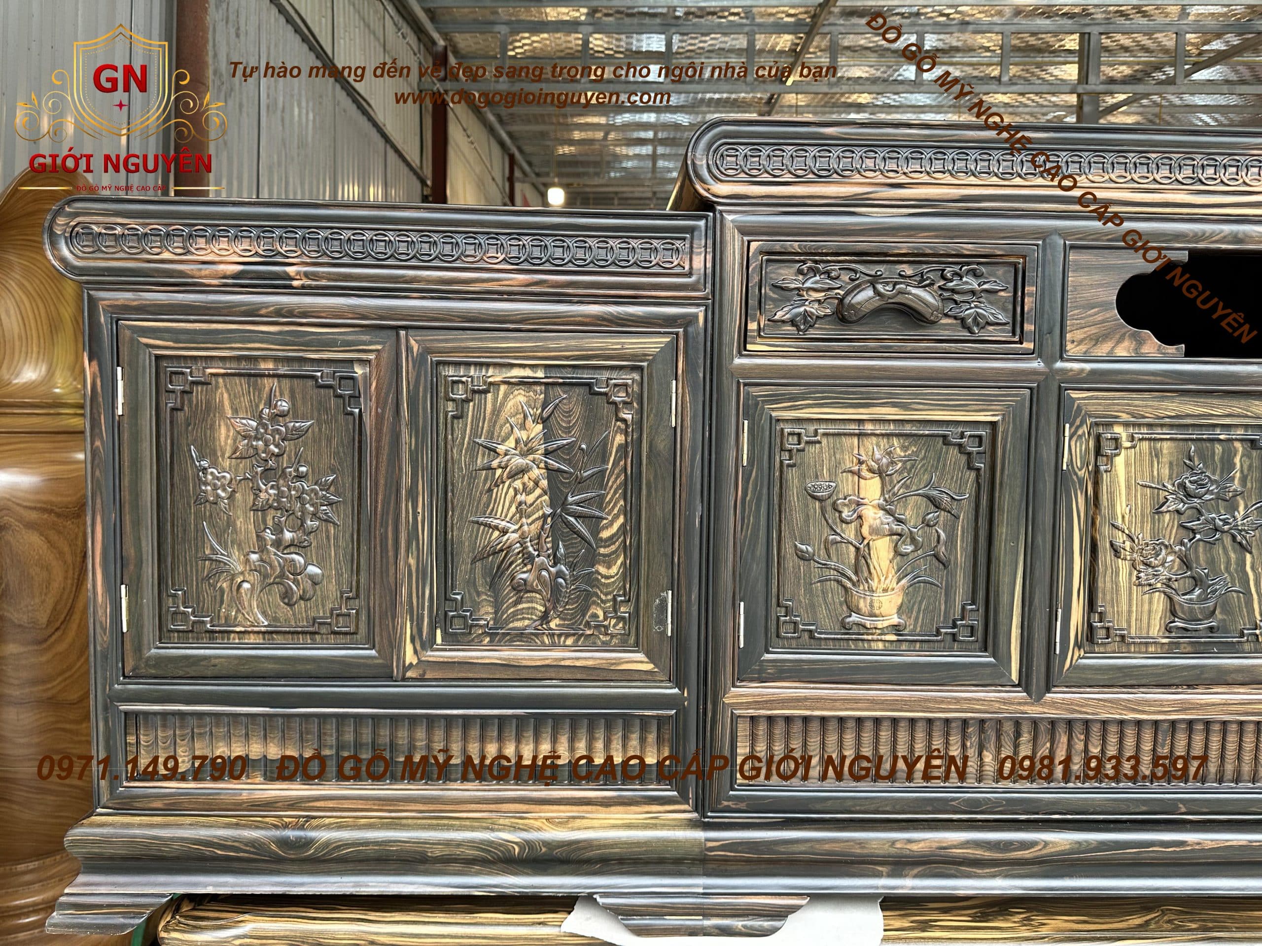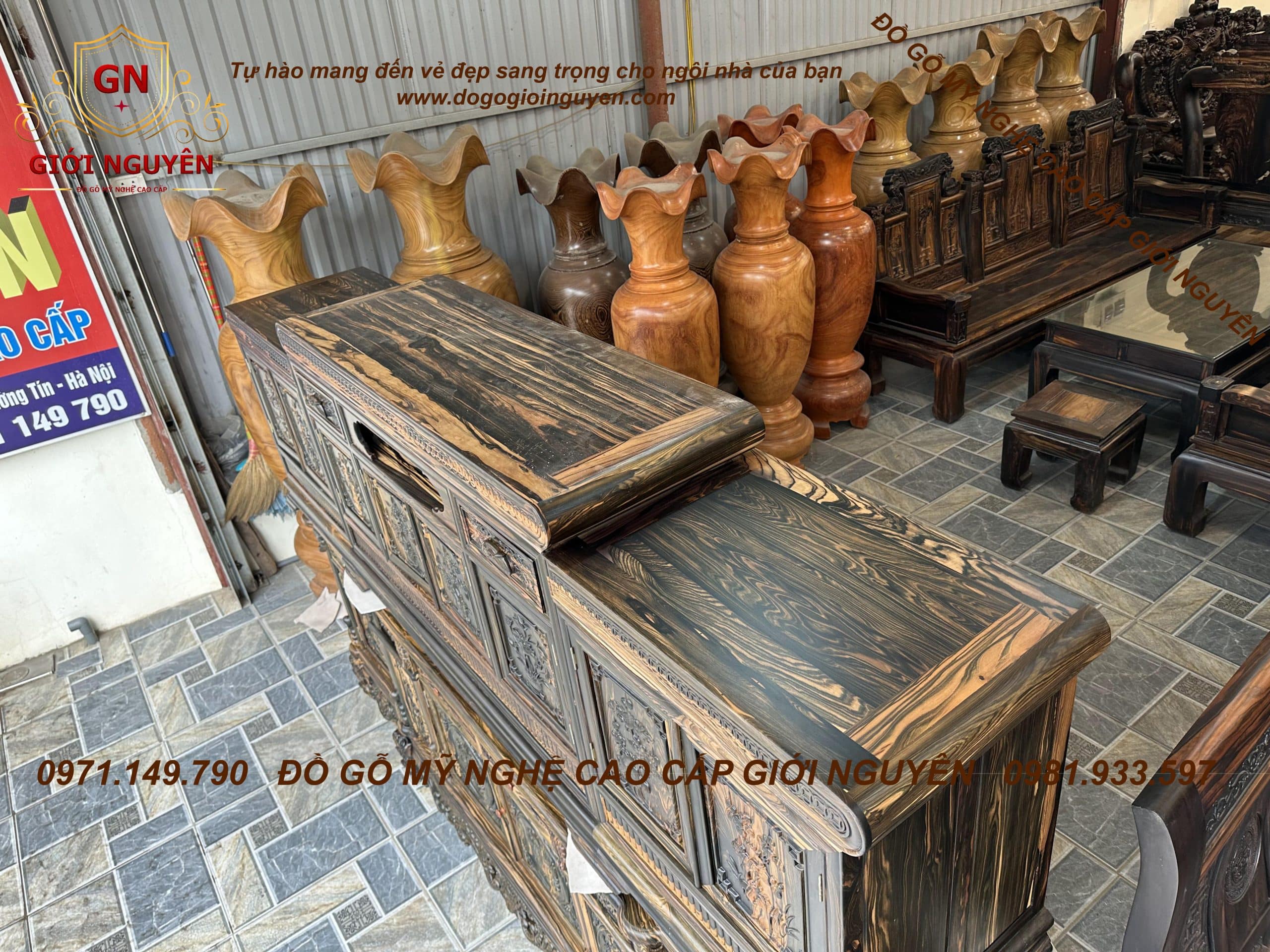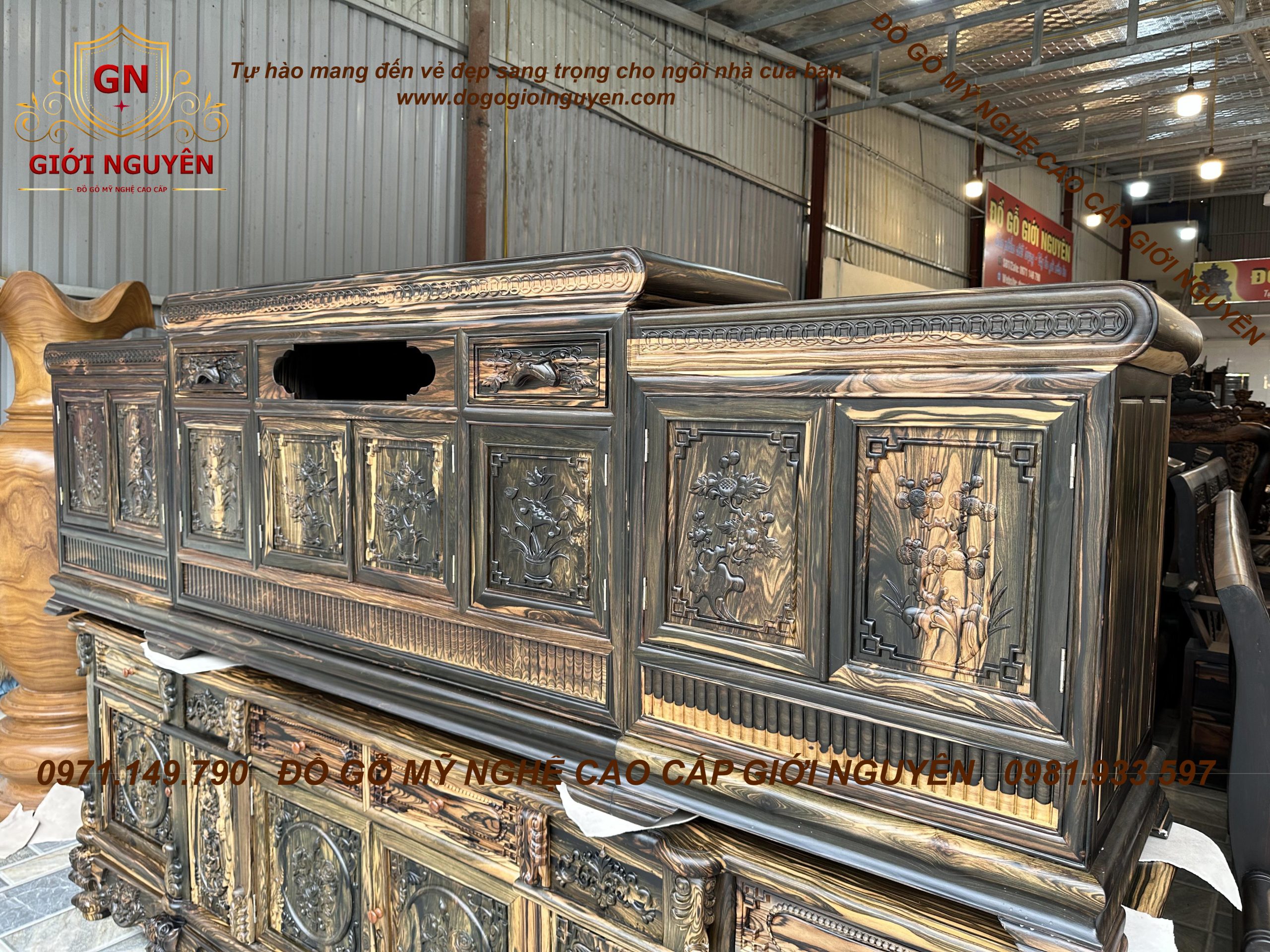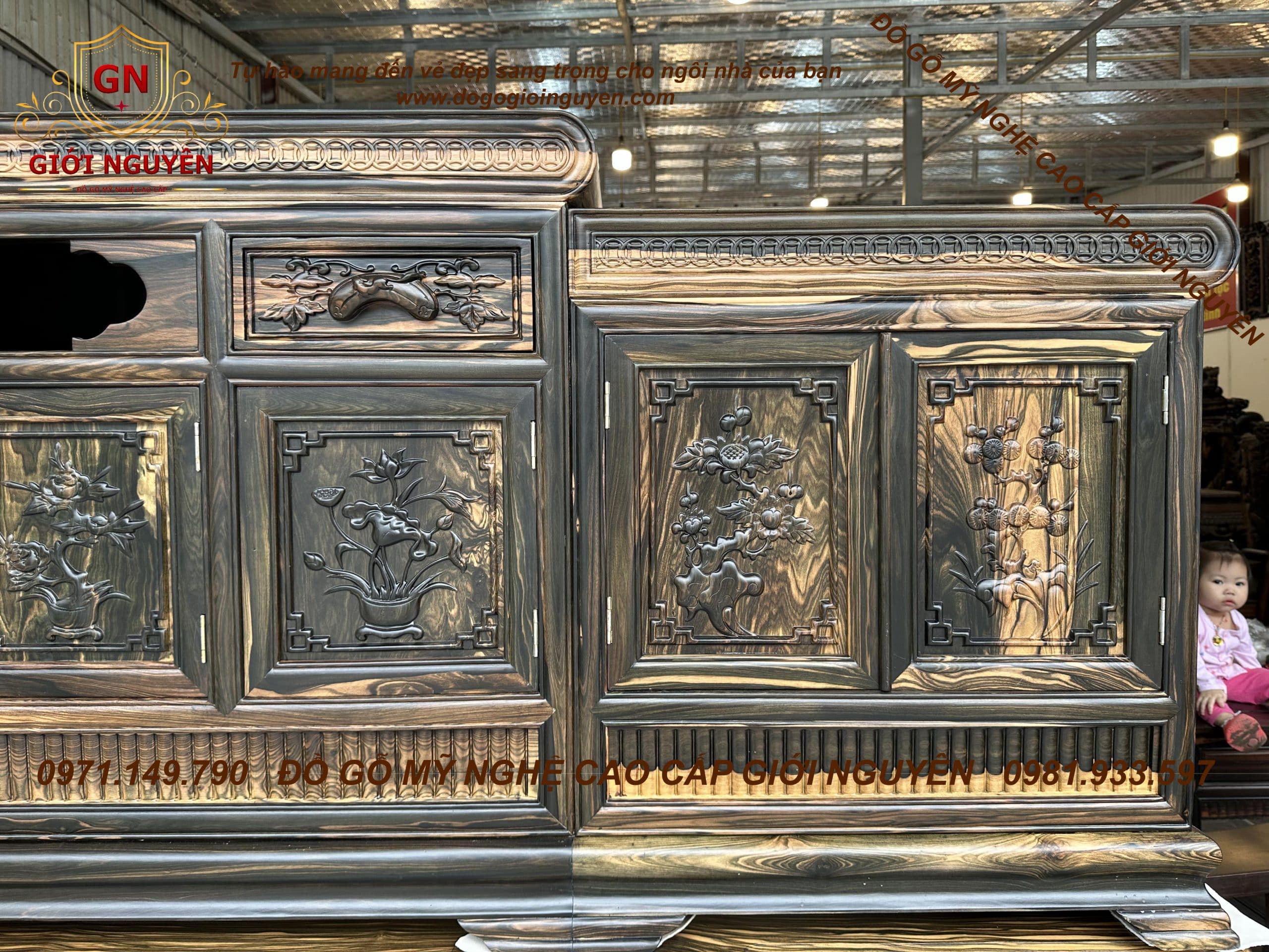 Kệ tivi mõ đồng tiền gỗ mun hoa 2m6