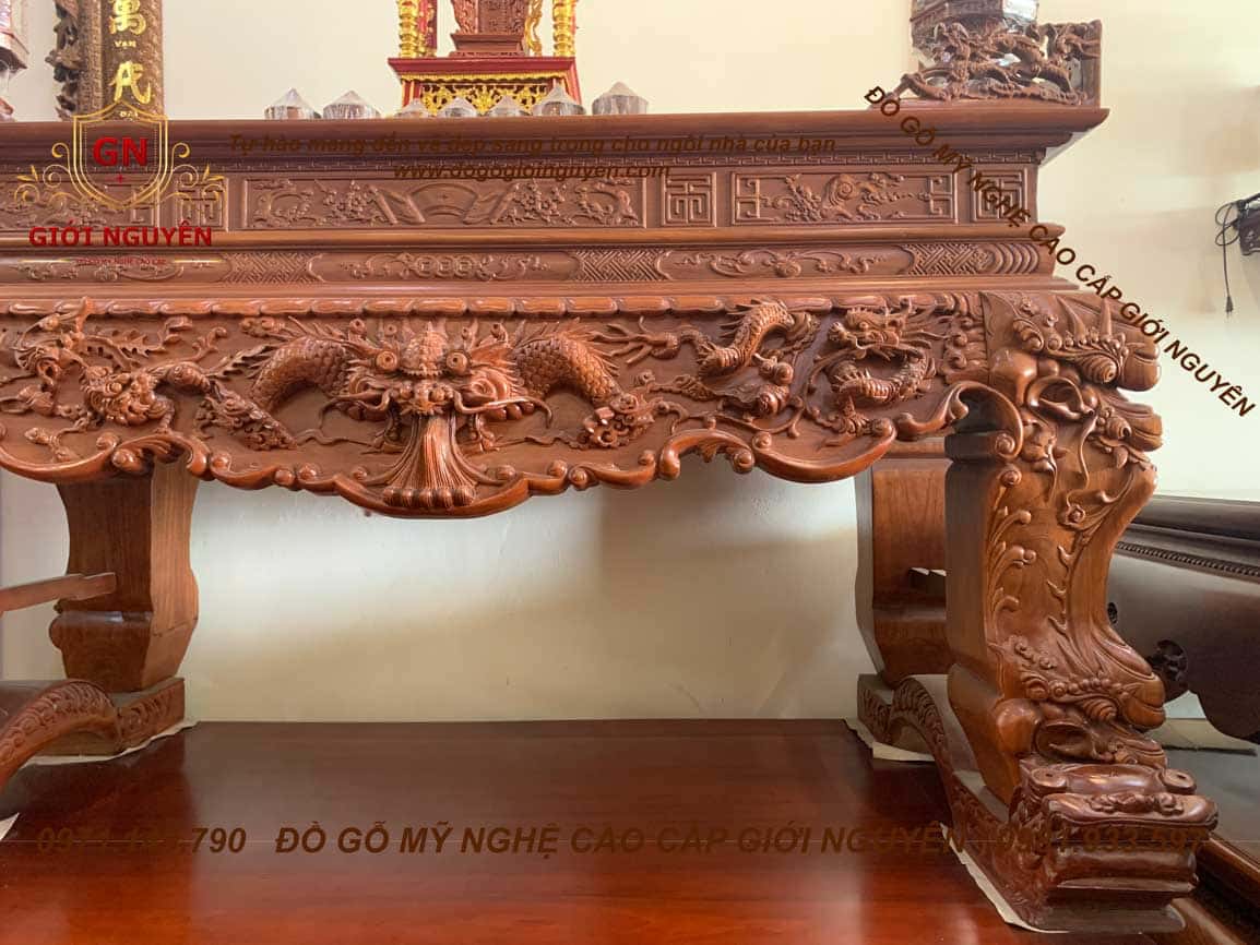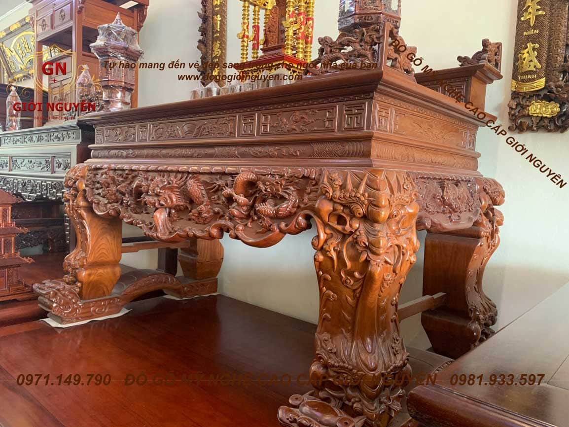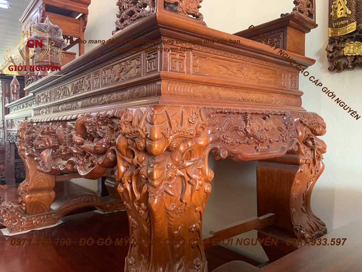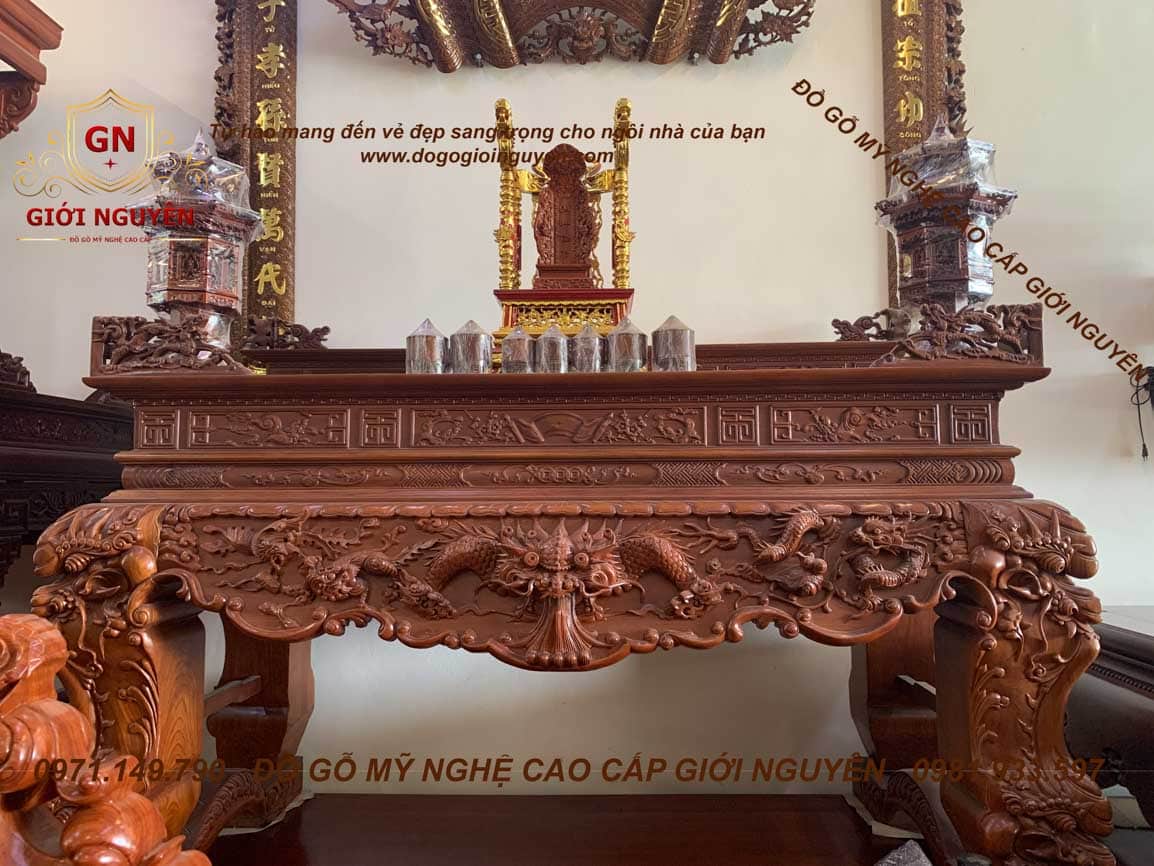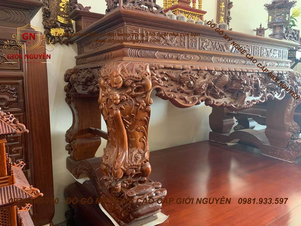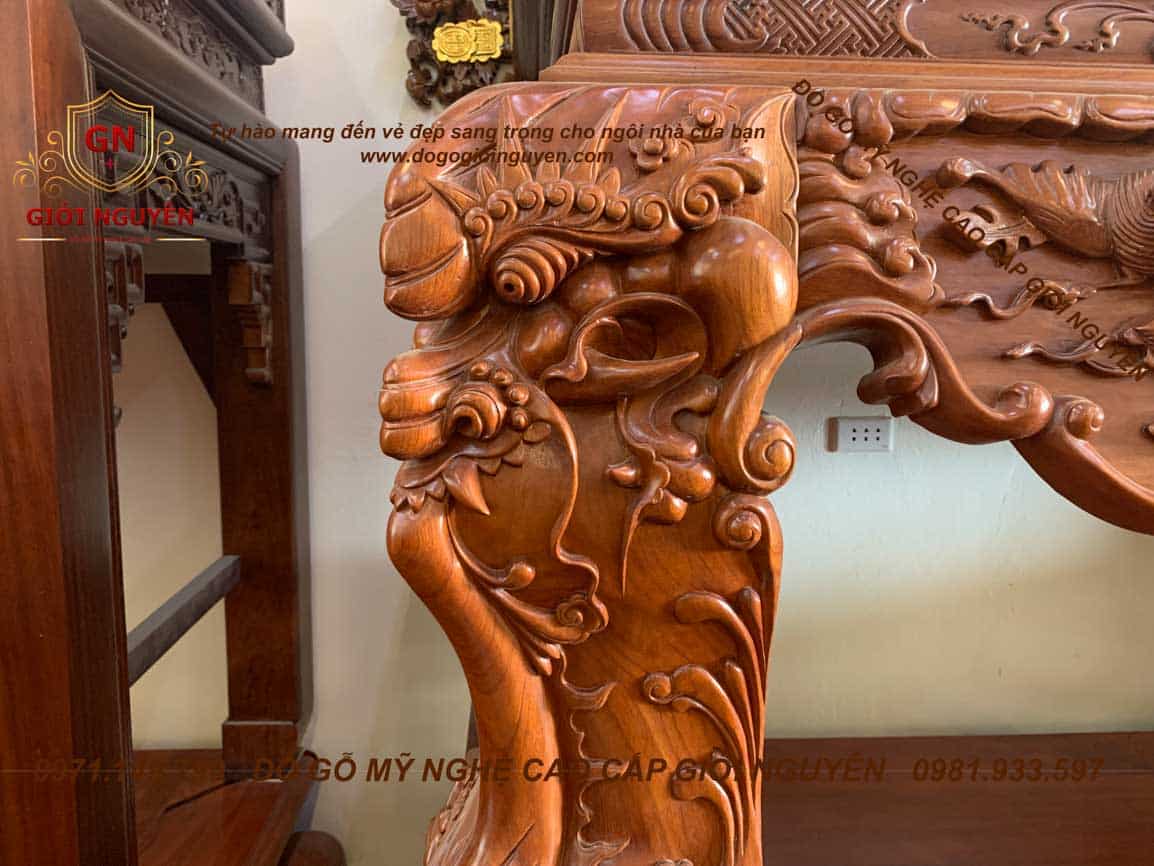 Sập thờ Tứ Linh gỗ Gõ chân 27 đục nghê