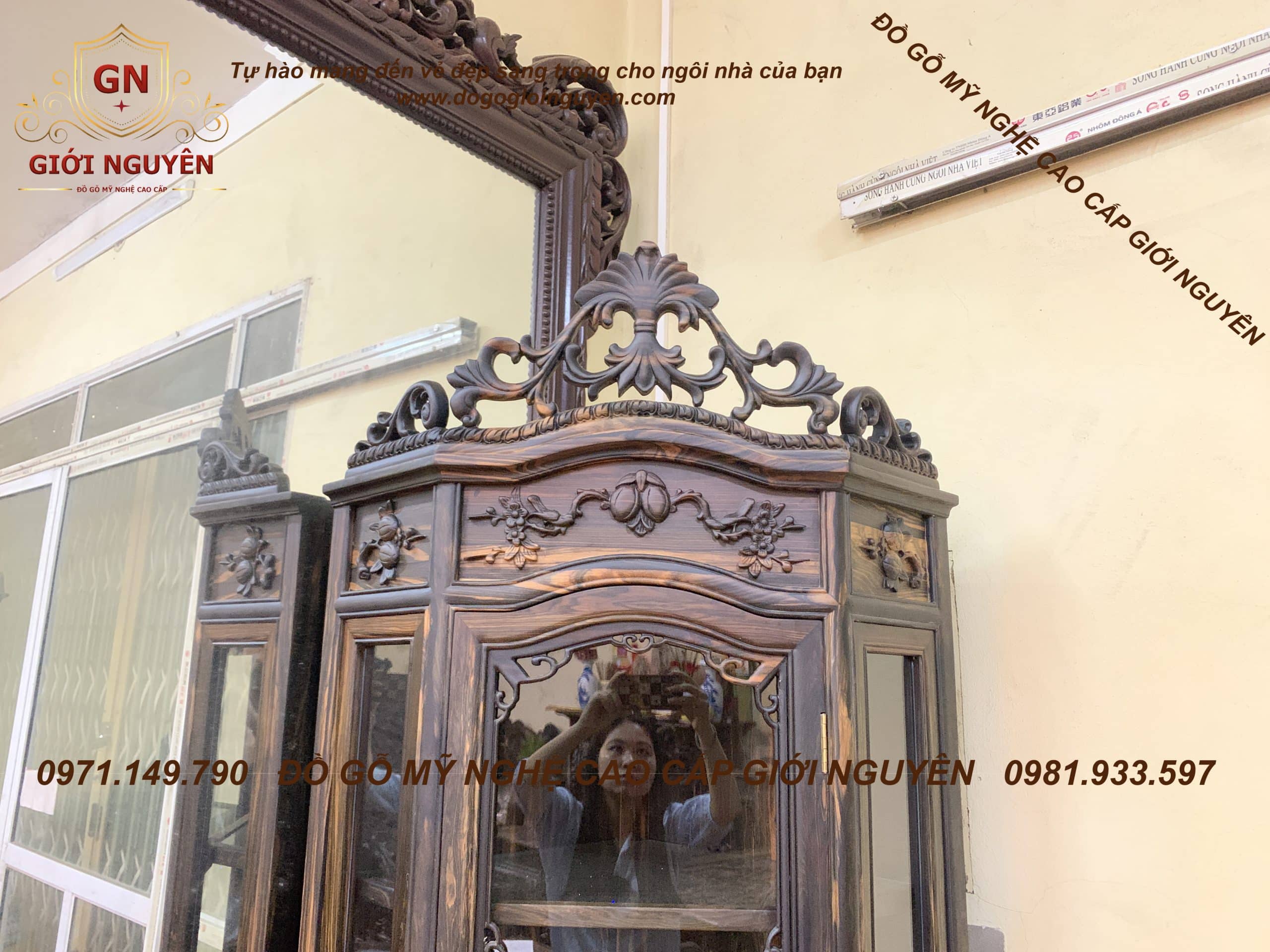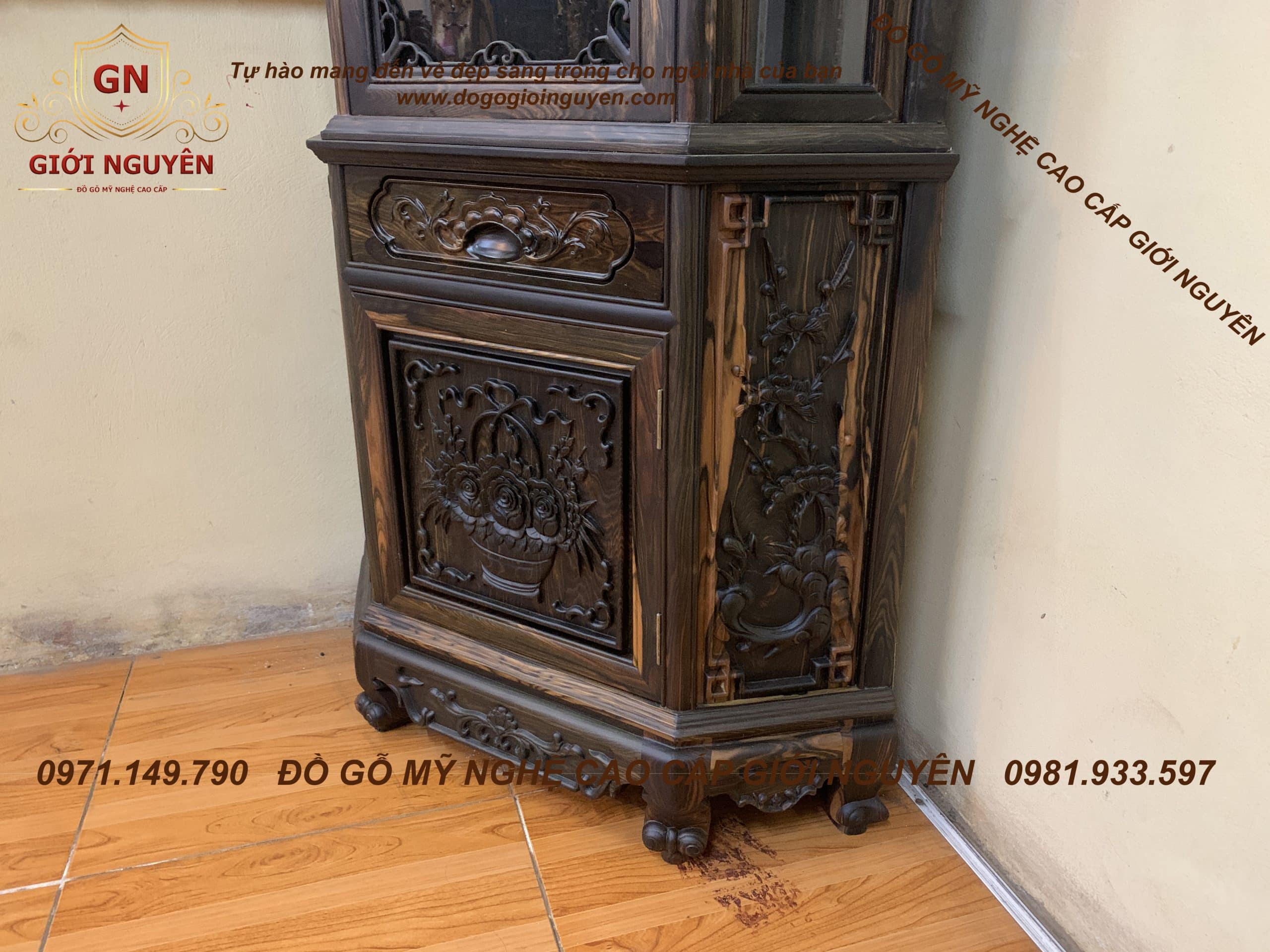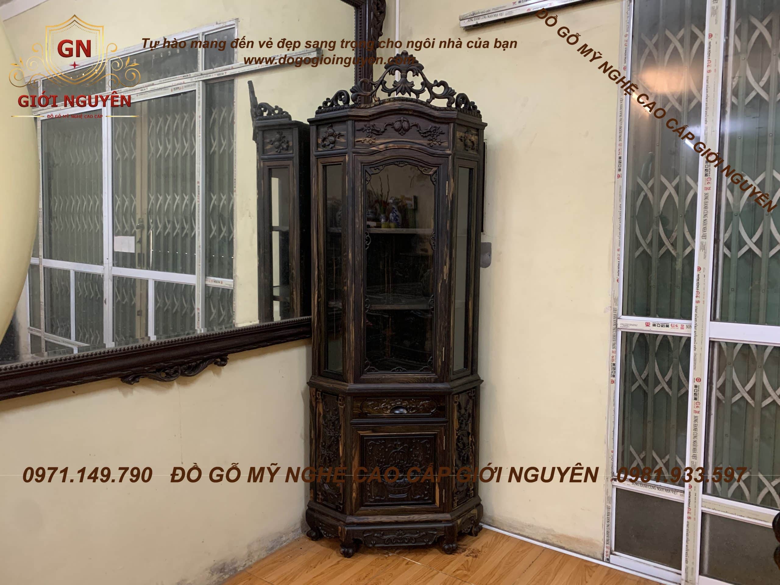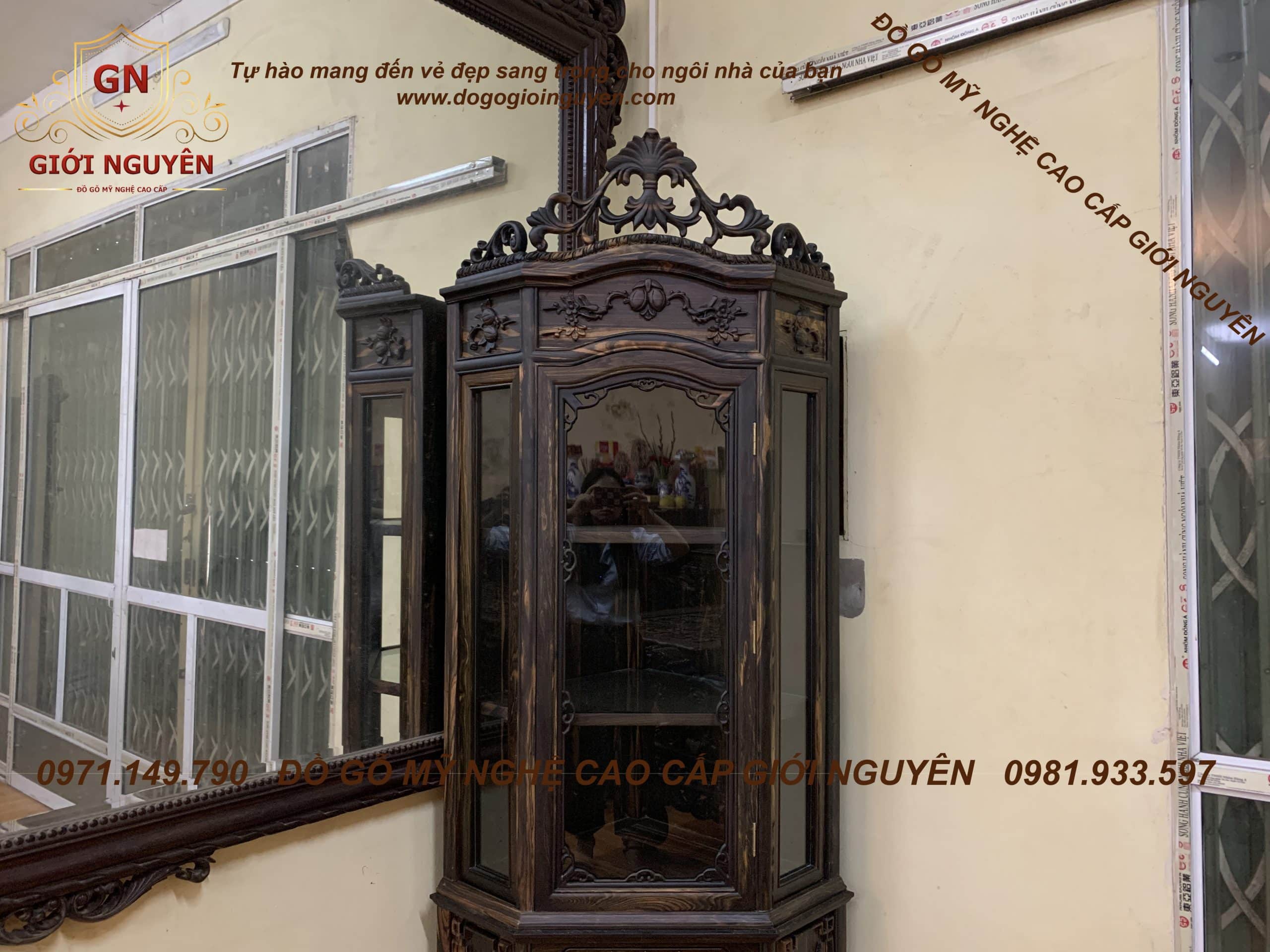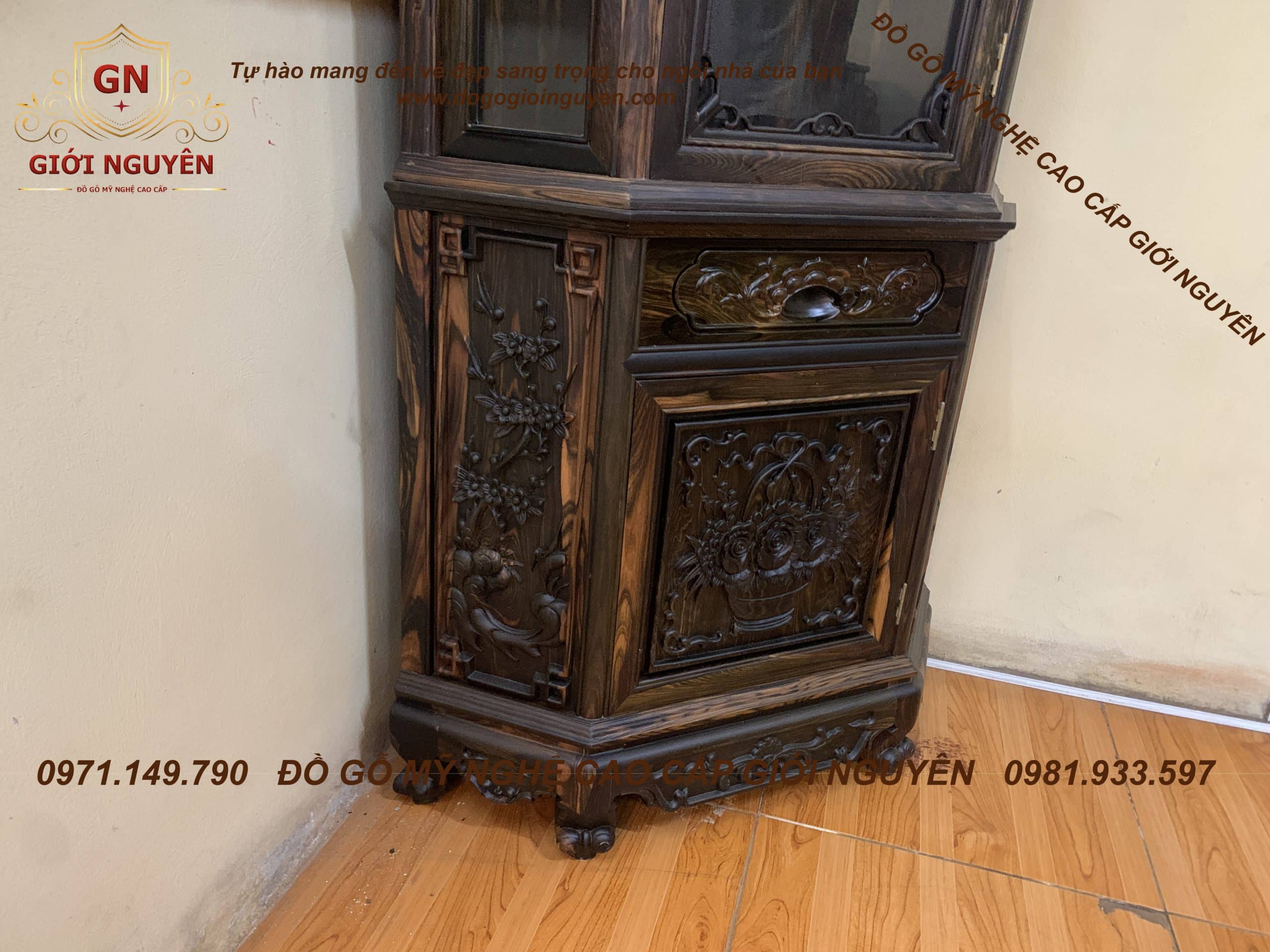 Tủ rượu góc gỗ mun hoa mẫu hoa hồng